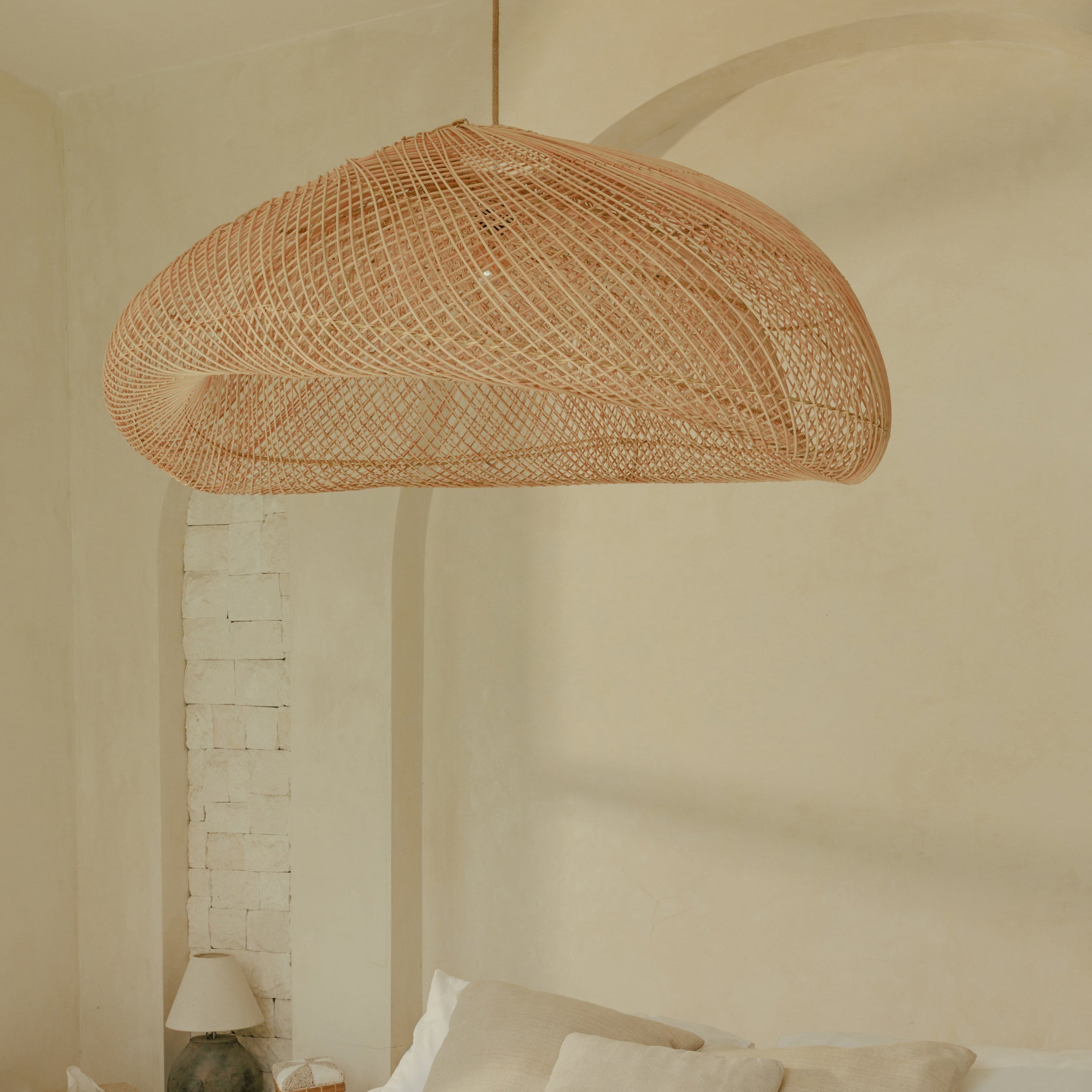 Née sur l’île de Bali, la Suspension Balik capture l’esprit du voyage, celui qu’on ressent, plus qu’on ne raconte. Tressée à la main en rotin naturel, elle évoque la lumière des fins d’après-midi tropicales, douce, dorée, presque liquide. Sa silhouette fluide et organique rappelle les lignes du vent au-dessus de la mer. Suspendue seule ou en composition, elle transforme l’espace en un lieu de calme et d’évasion maîtrisée. Chaque pièce est façonnée par des artisans balinais selon des savoir-faire transmis de génération en génération. Aucun détail n’est laissé au hasard, tout repose sur l’équilibre des formes, la tension du tressage et la légèreté du vide.