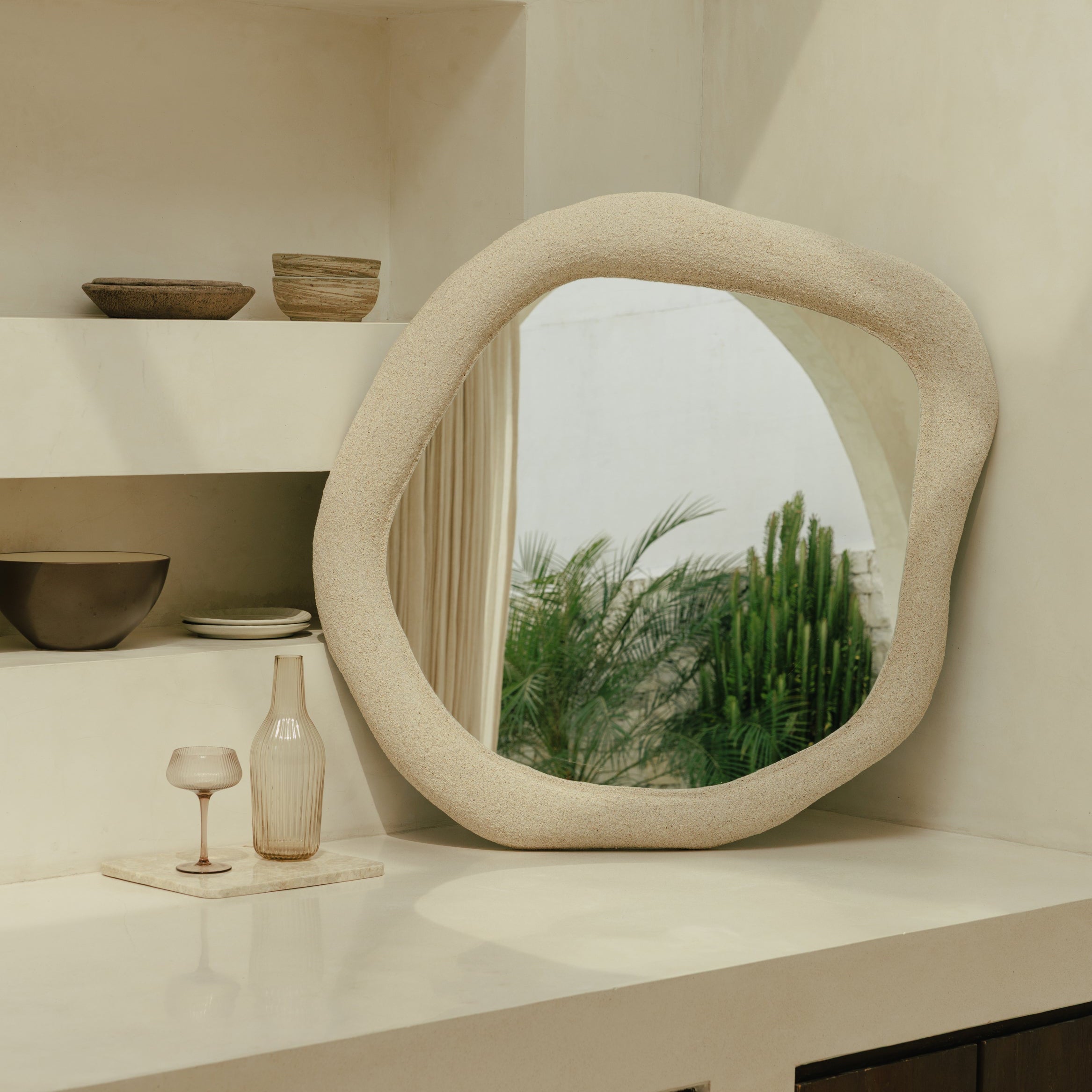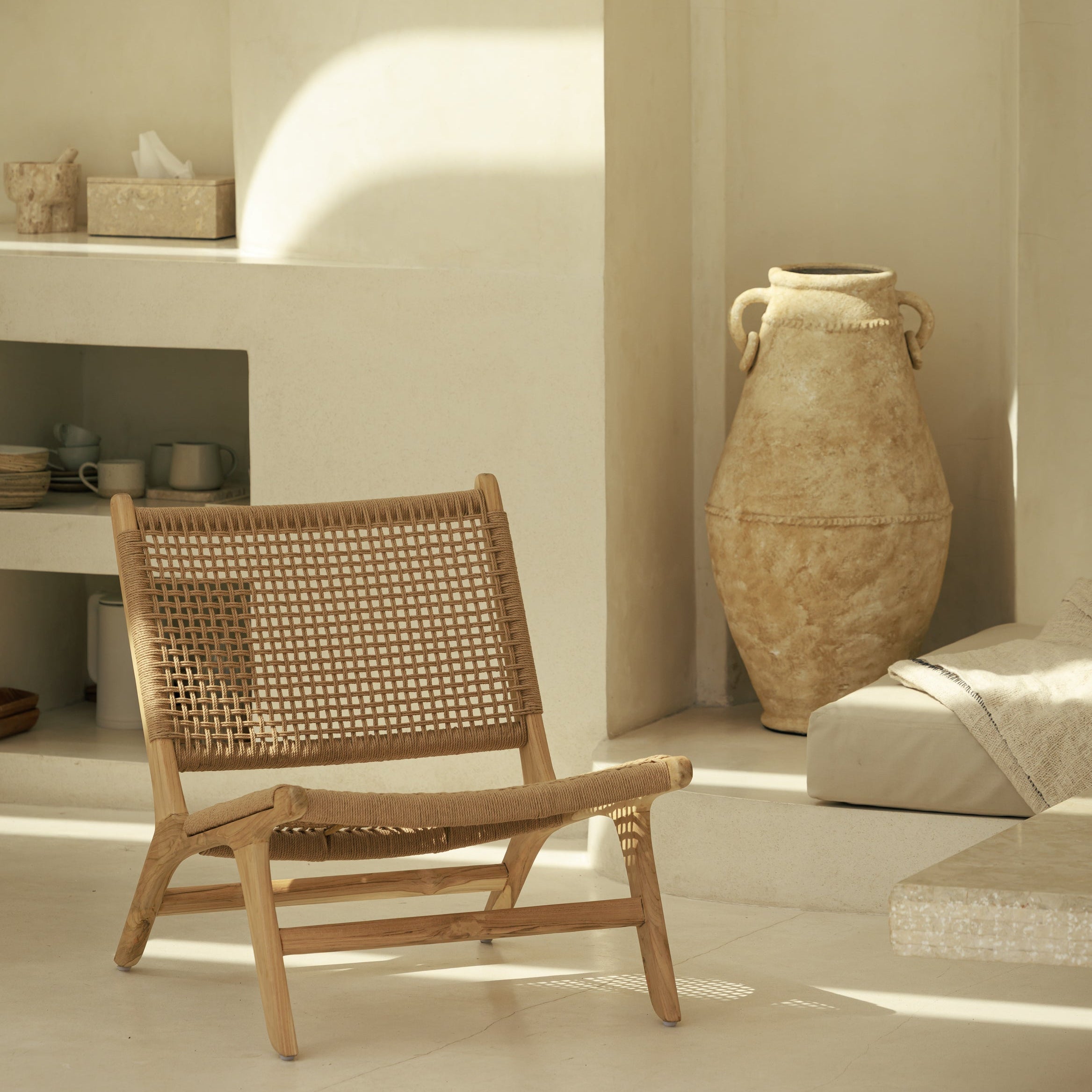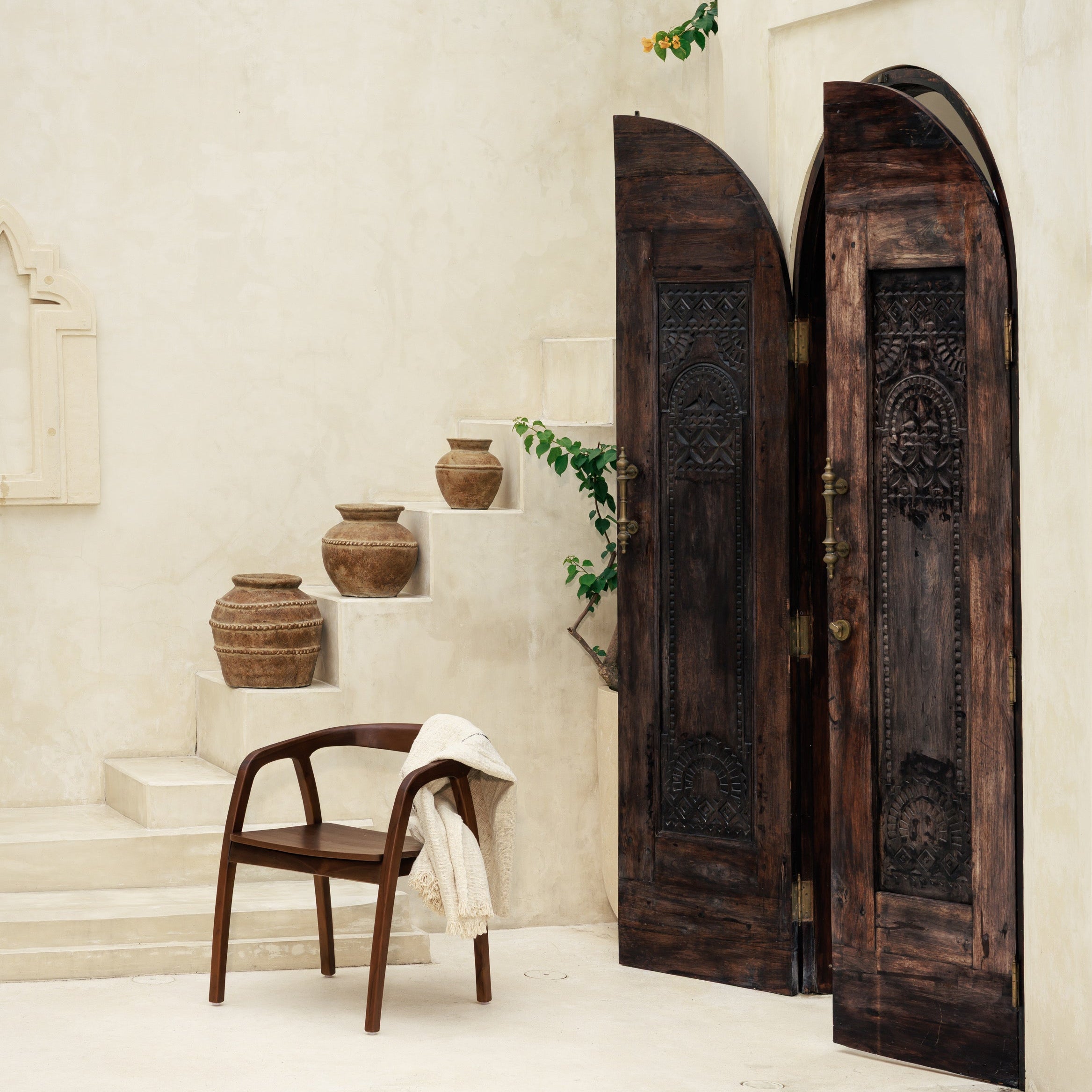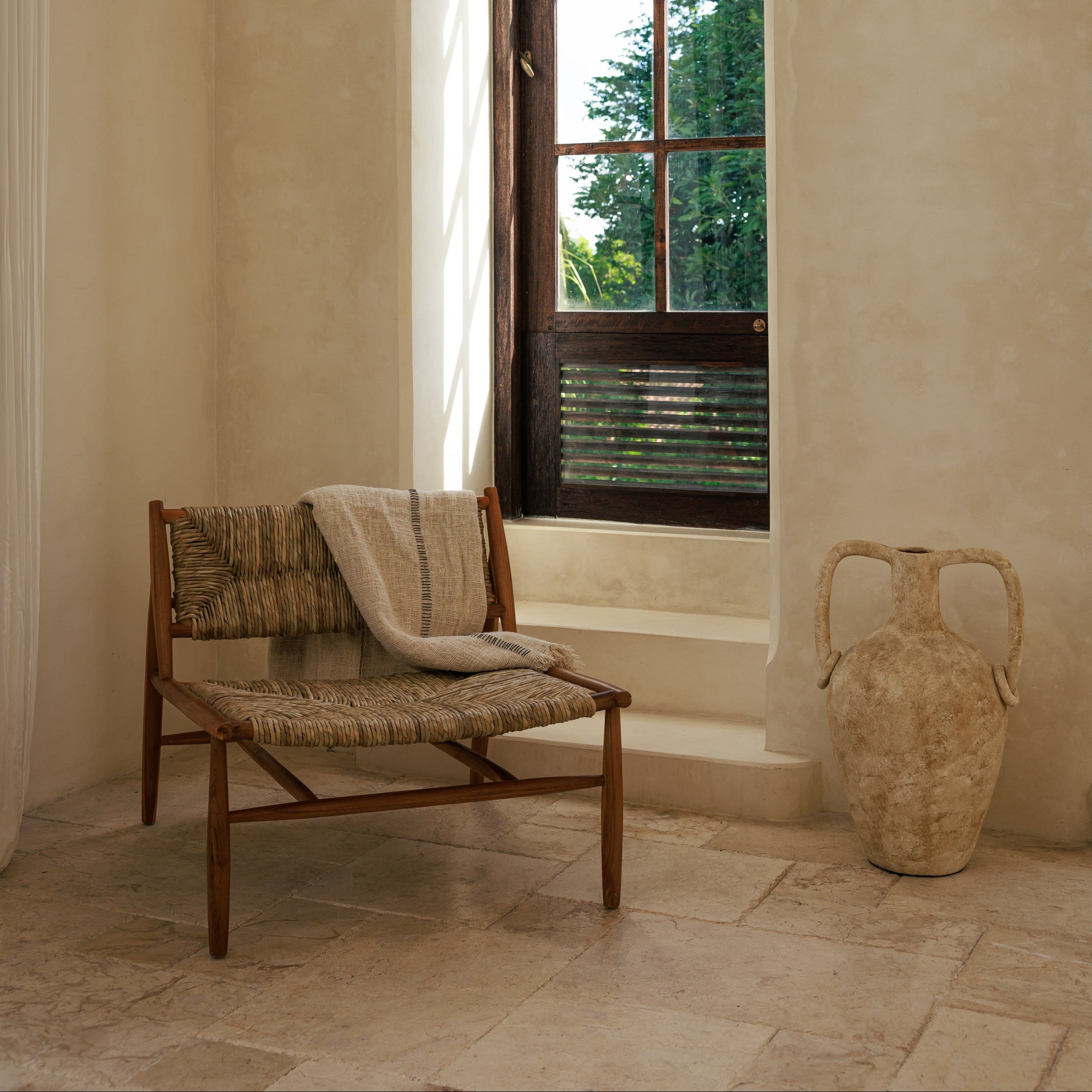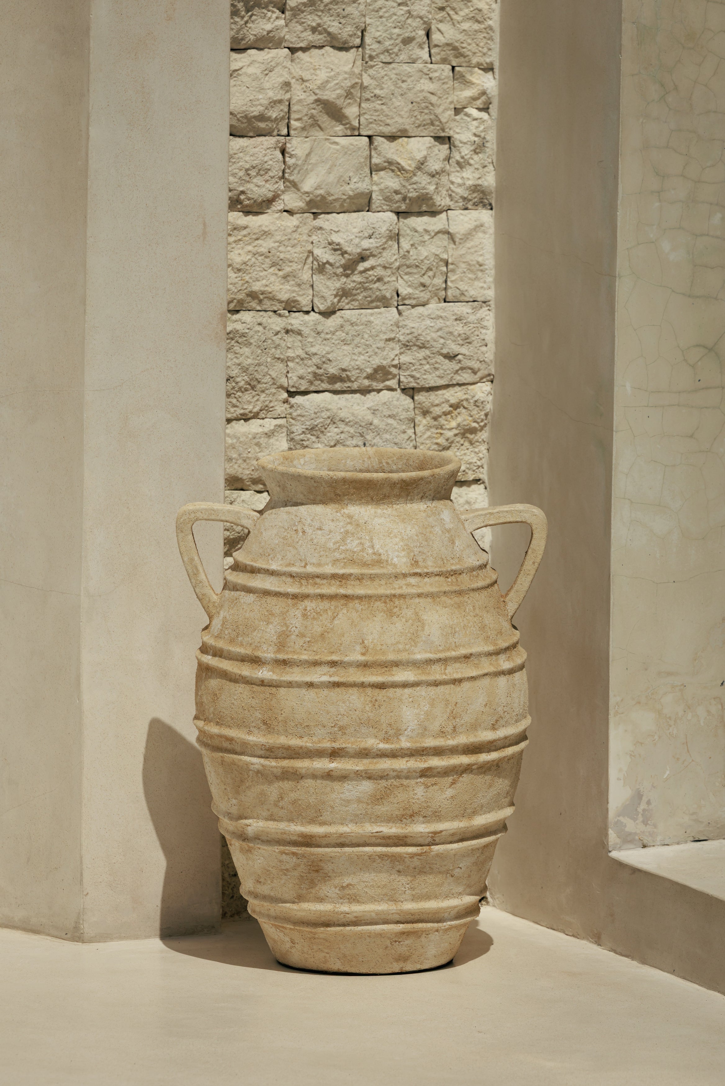 Le pot Noah en terracotta trouve naturellement sa place dans les intérieurs qui aiment les pièces fortes sans ostentation. Posé au sol, il installe une présence chaleureuse grâce à sa finition antique et à ses nuances minérales qui rappellent les terres patinées par le temps. Sa silhouette généreuse apporte du rythme à l’espace, que ce soit dans une entrée, un salon ou près d’une baie vitrée, là où la lumière vient révéler la matière. Pensé comme un objet décoratif à part entière, il accueille aussi bien quelques branches sèches que de grandes tiges naturelles, devenant un véritable point d’ancrage visuel entre esprit brut et élégance intemporelle.