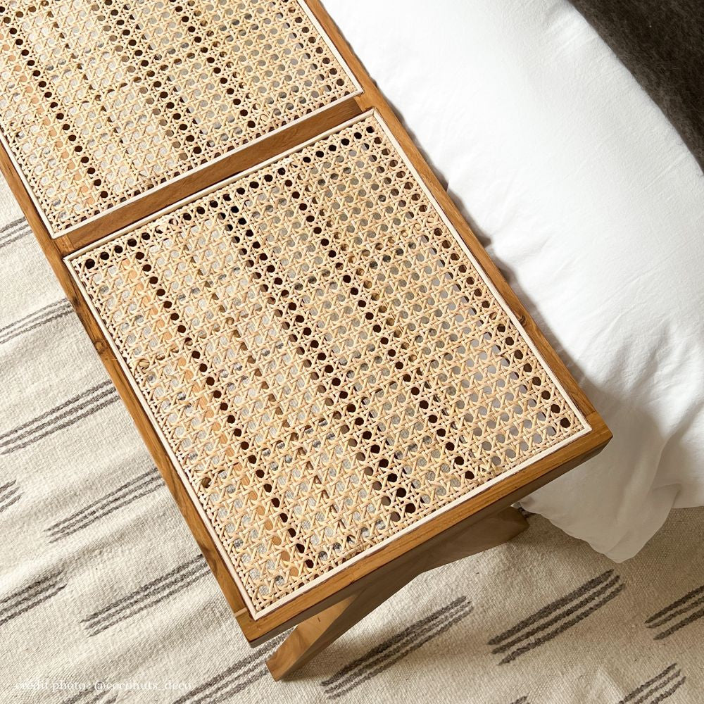 L'assise en cannage donne une touche légère et aérée à ce banc, tout en assurant un confort d'assise. Ce matériau naturel a été utilisé pendant des siècles en Indonésie pour la création de meubles de qualité, et il apporte une touche de charme authentique à ce banc.