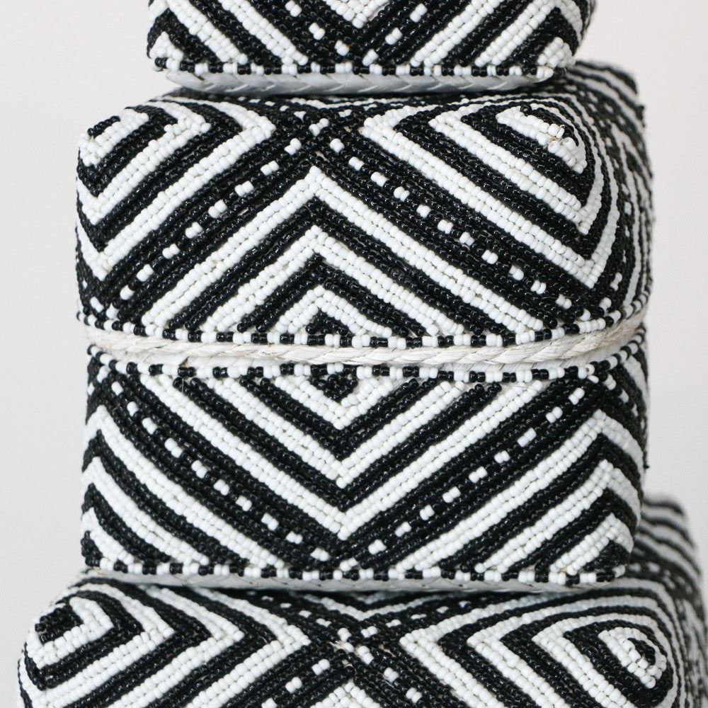 Ce set de cinq boîtes à offrandes est une ode à la simplicité moderne. Chaque boîte est soigneusement décorée de petites lignes noires et blanches, créant un motif délicat qui attire l'œil sans surcharger.