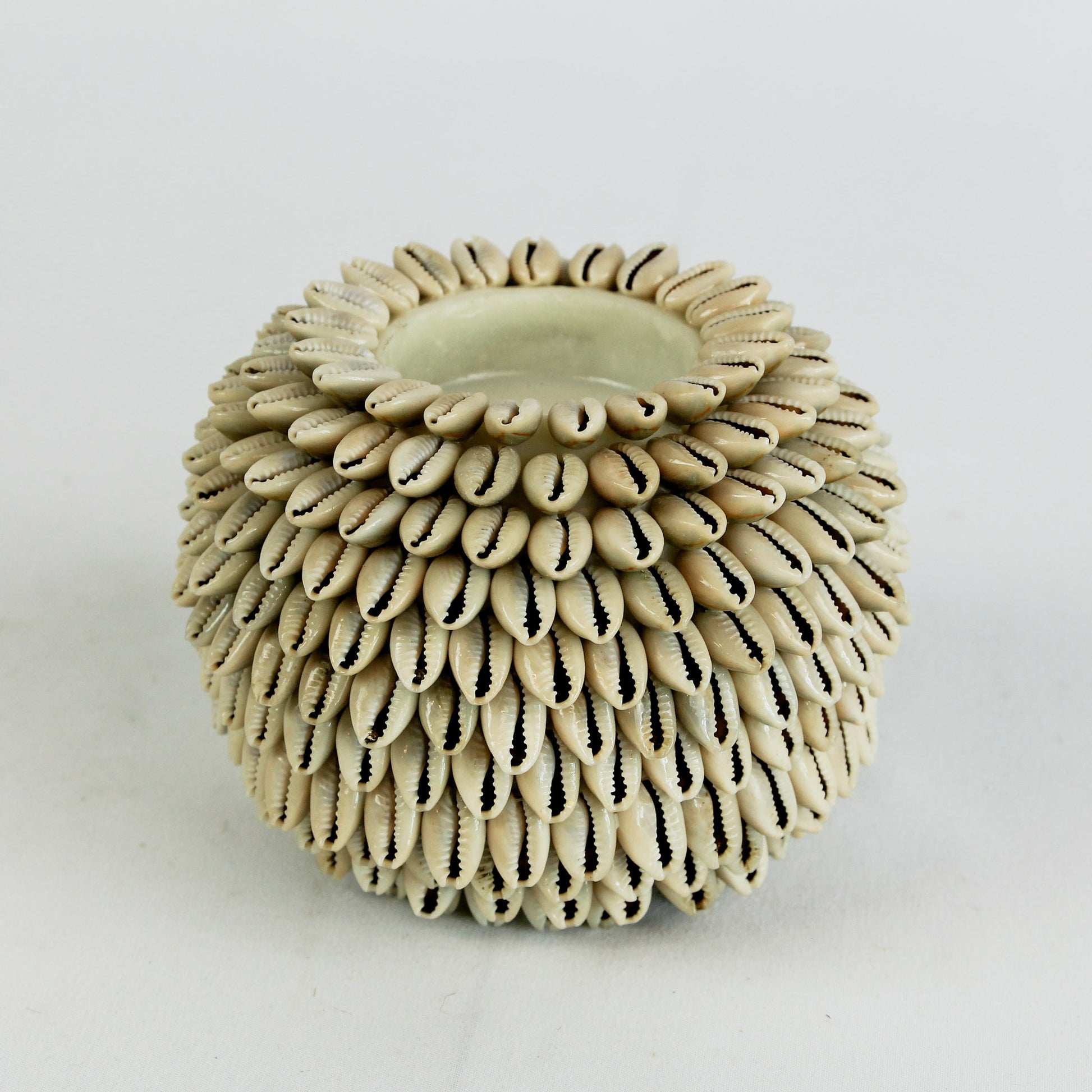 Illuminez votre espace avec notre bougeoir artisanal en coquillages. Une pièce distinctive qui ajoute une touche océanique à toute décoration d'intérieur.