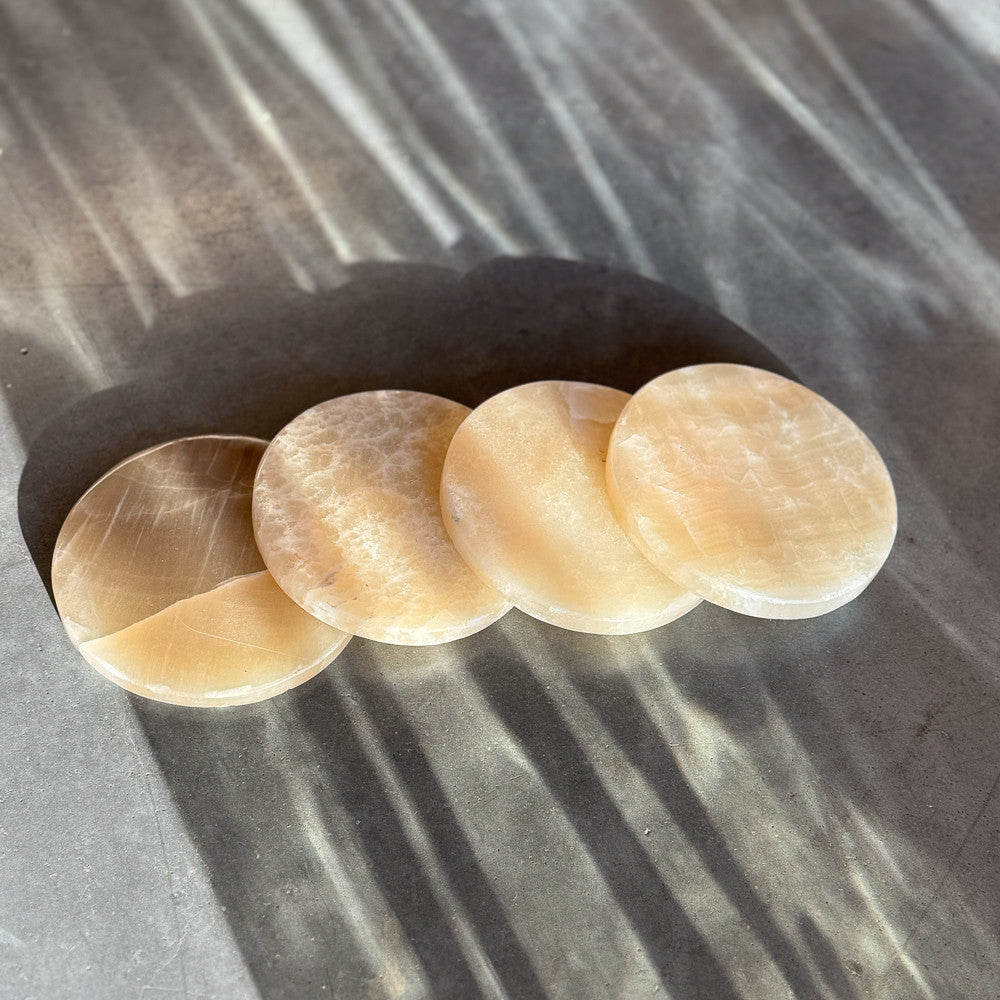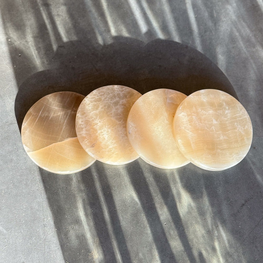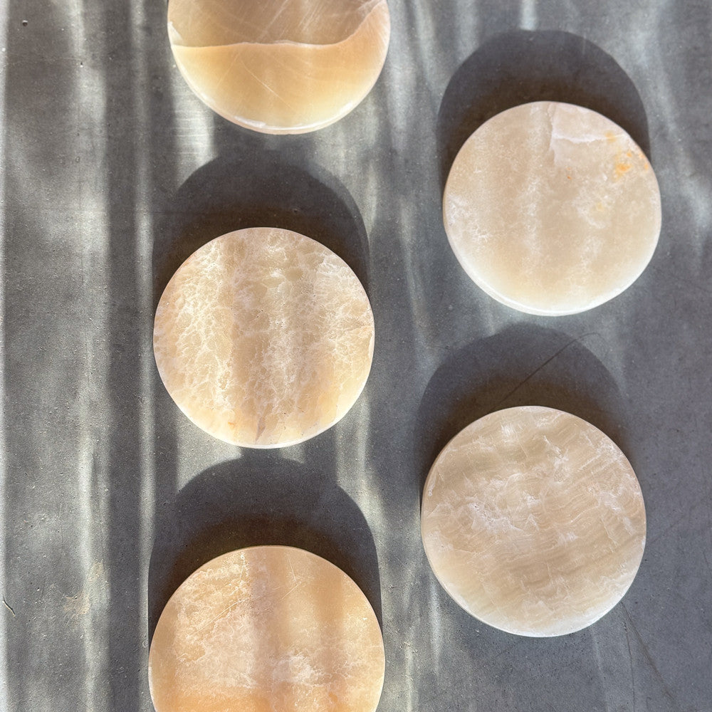 Ces dessous de verre en onyx allient fonctionnalité et esthétique. Taillés directement dans la pierre, ils mettent en valeur les motifs veinés et les variations naturelles de l’onyx, une pierre prisée pour sa beauté intemporelle. Chaque dessous de verre est poli pour une finition lisse et brillante, tout en conservant les caractéristiques authentiques de la matière brute.