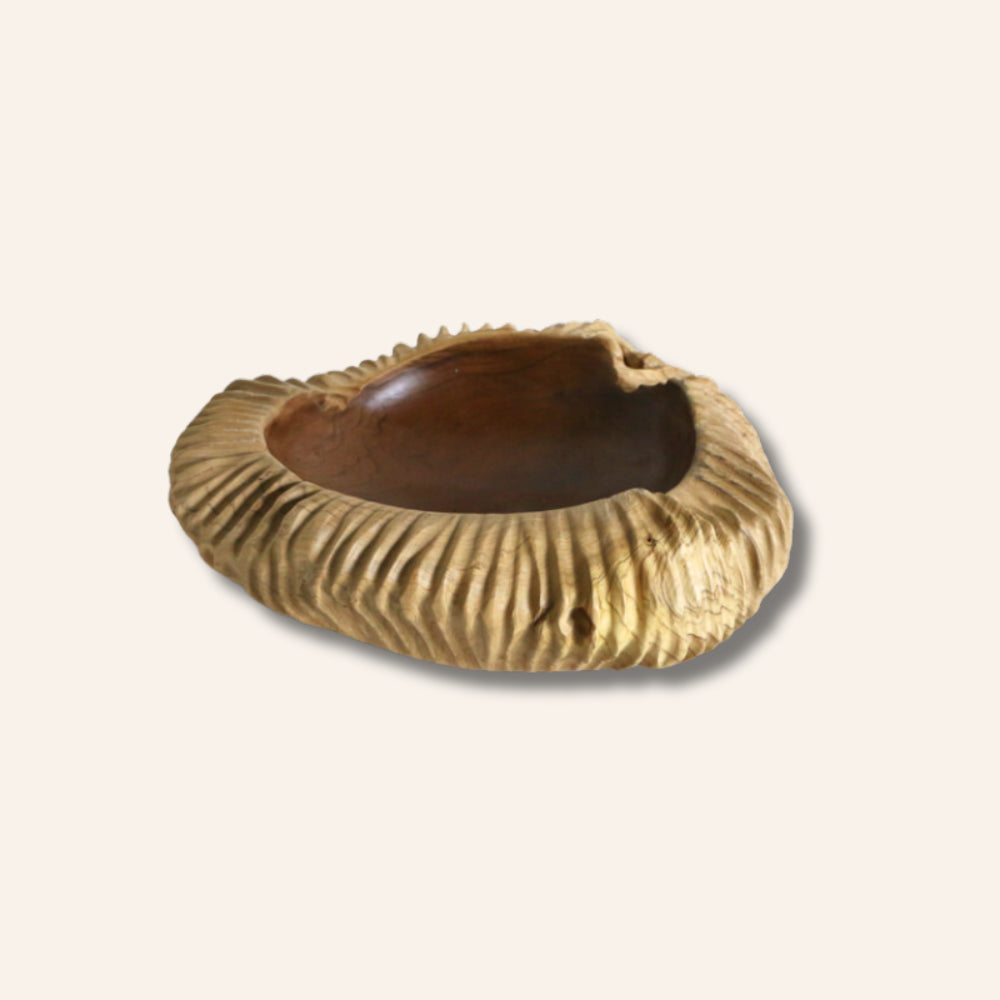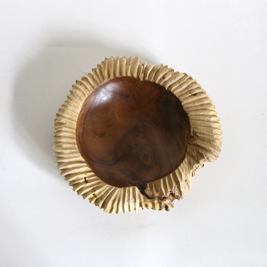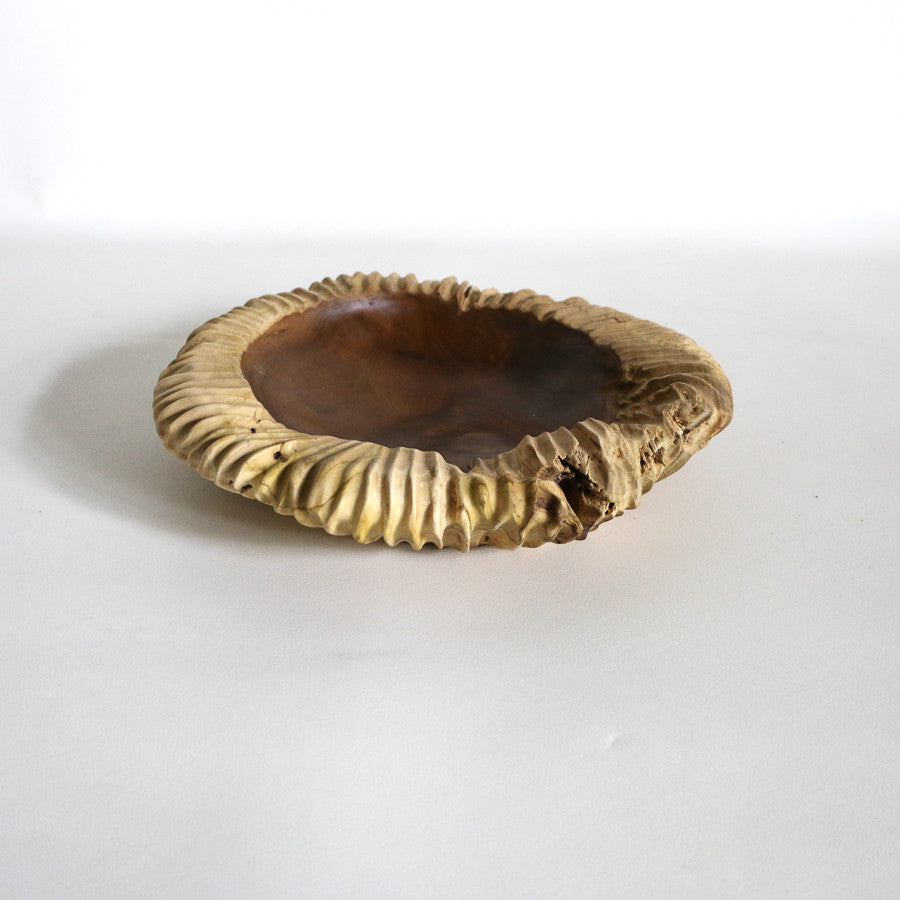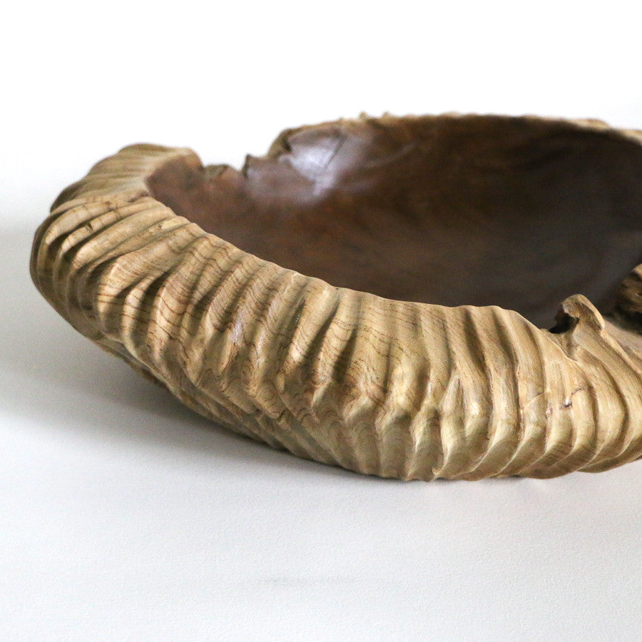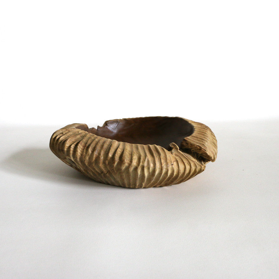 Grand bol / vide-poches strié en teck - 40 cm