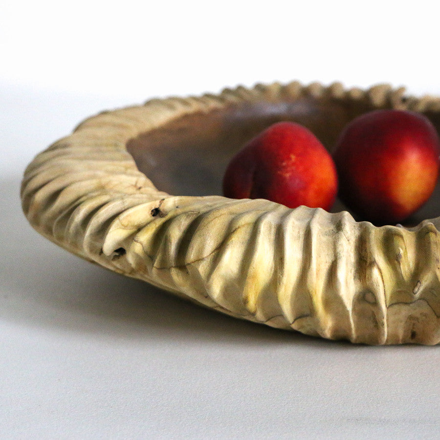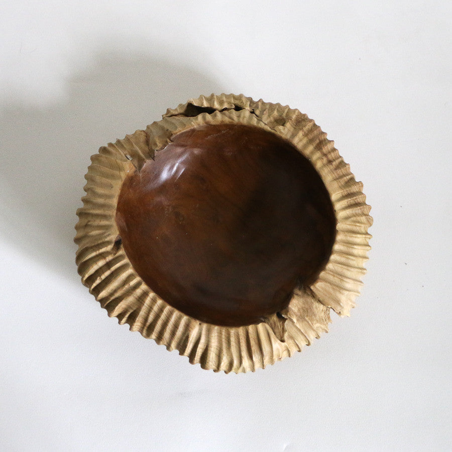 Grand bol saladier strié en bois de teck artisanal.
