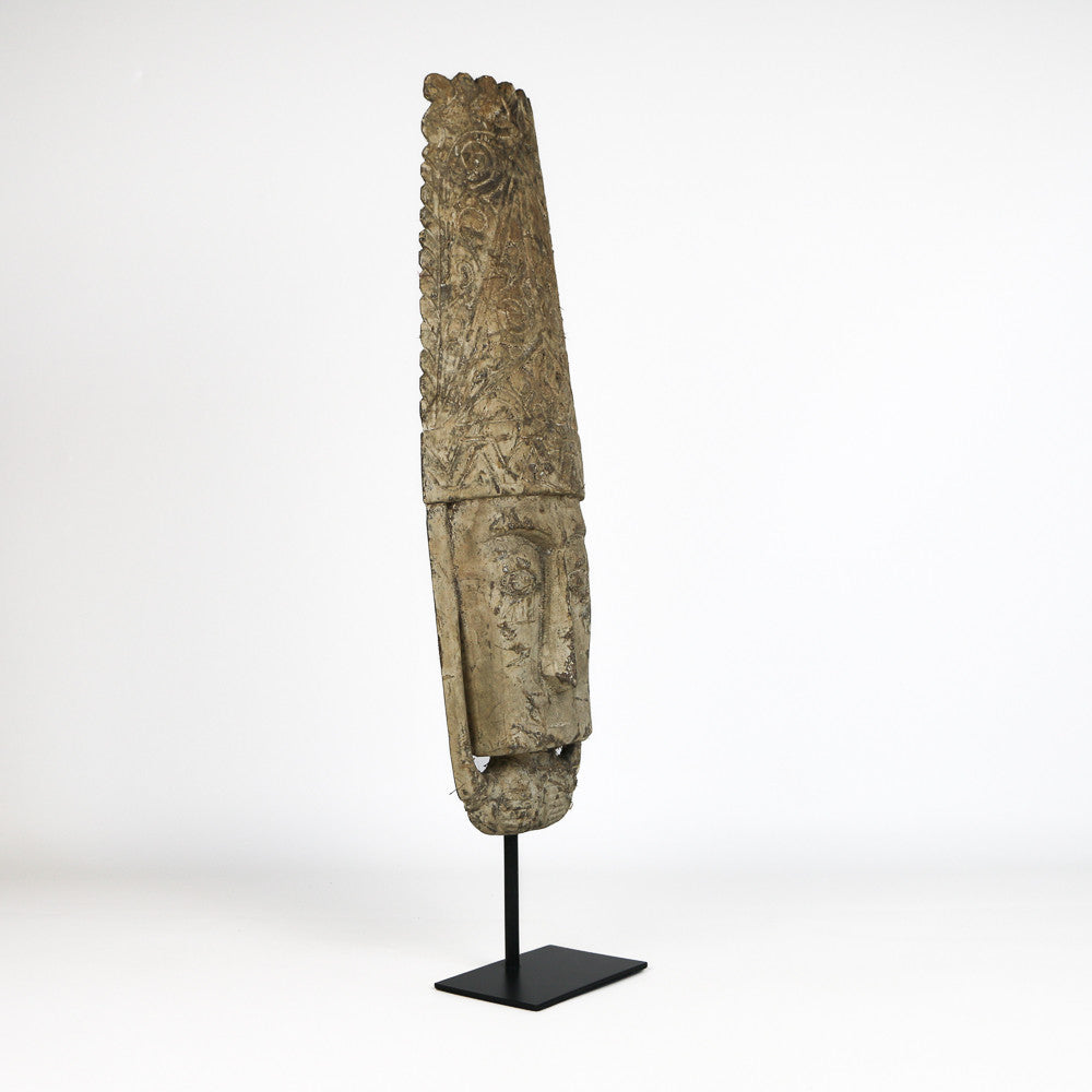 Avec ses 73 cm de hauteur, il peut être exposé seul sur un mur ou intégré à une composition murale pour un effet artistique. Sa finition brute et ses détails sculptés ajoutent du caractère à une décoration de style bohème, ethnique ou contemporain.