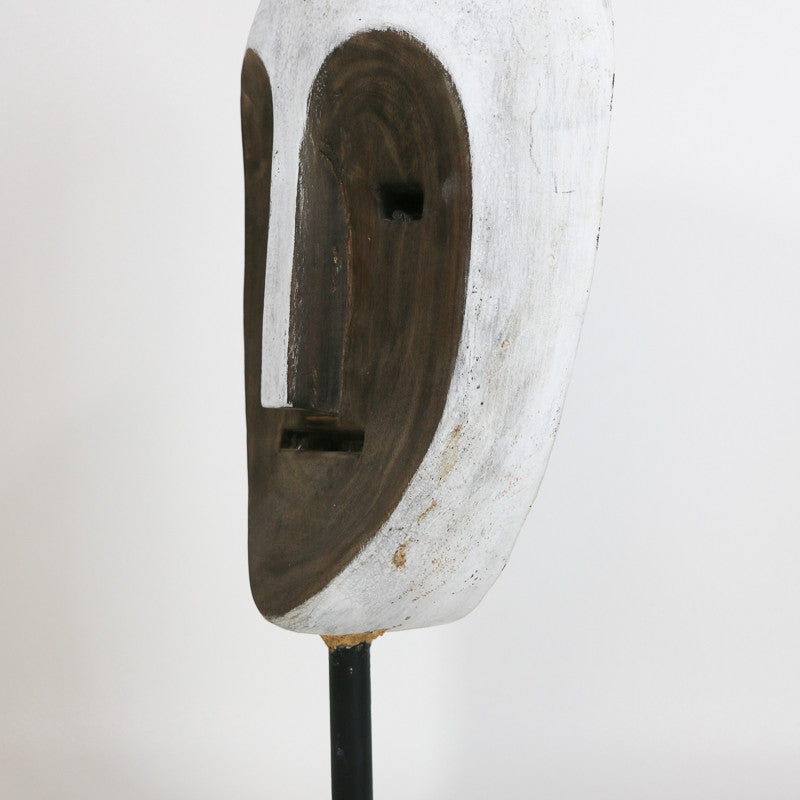 Sublimez votre intérieur avec un masque du Timor en bois, minutieusement sculpté et présenté sur un élégant socle