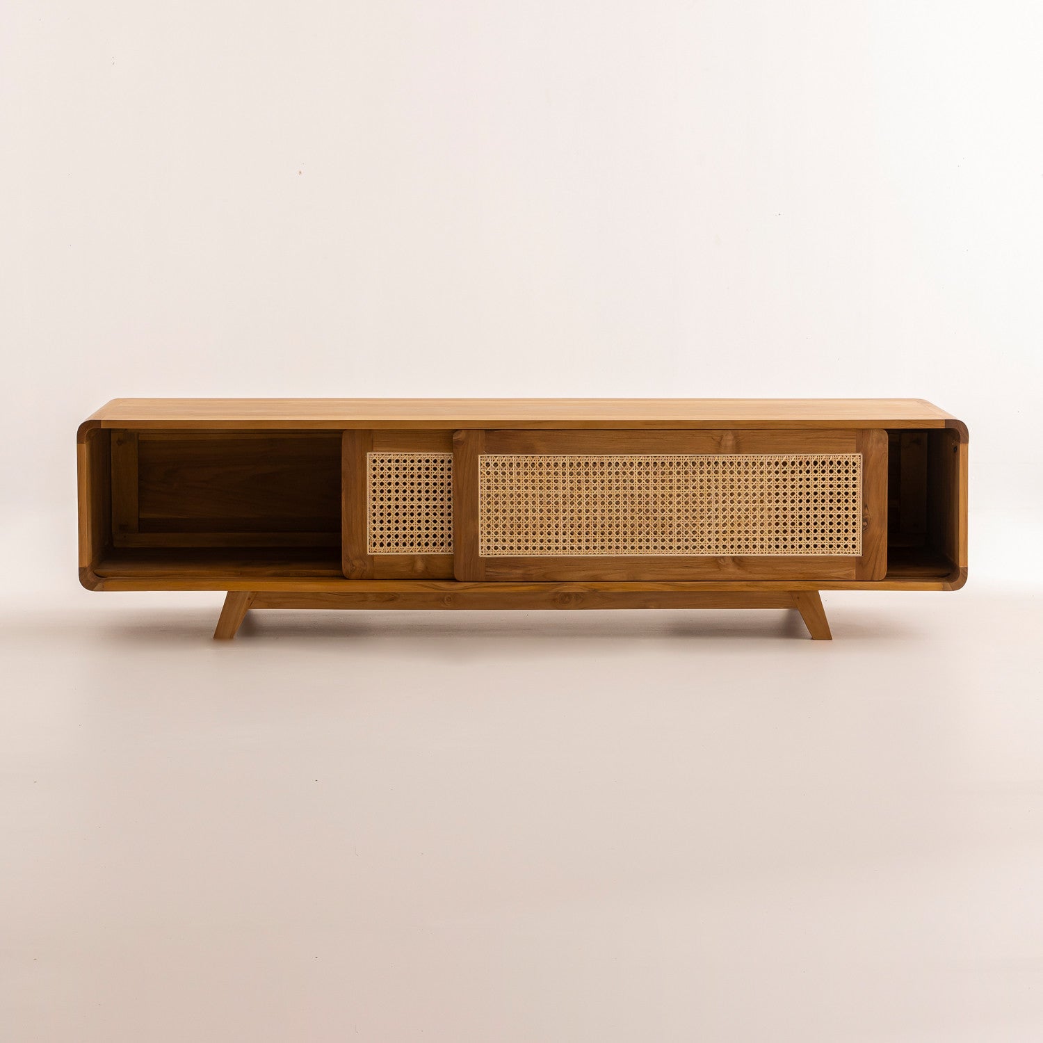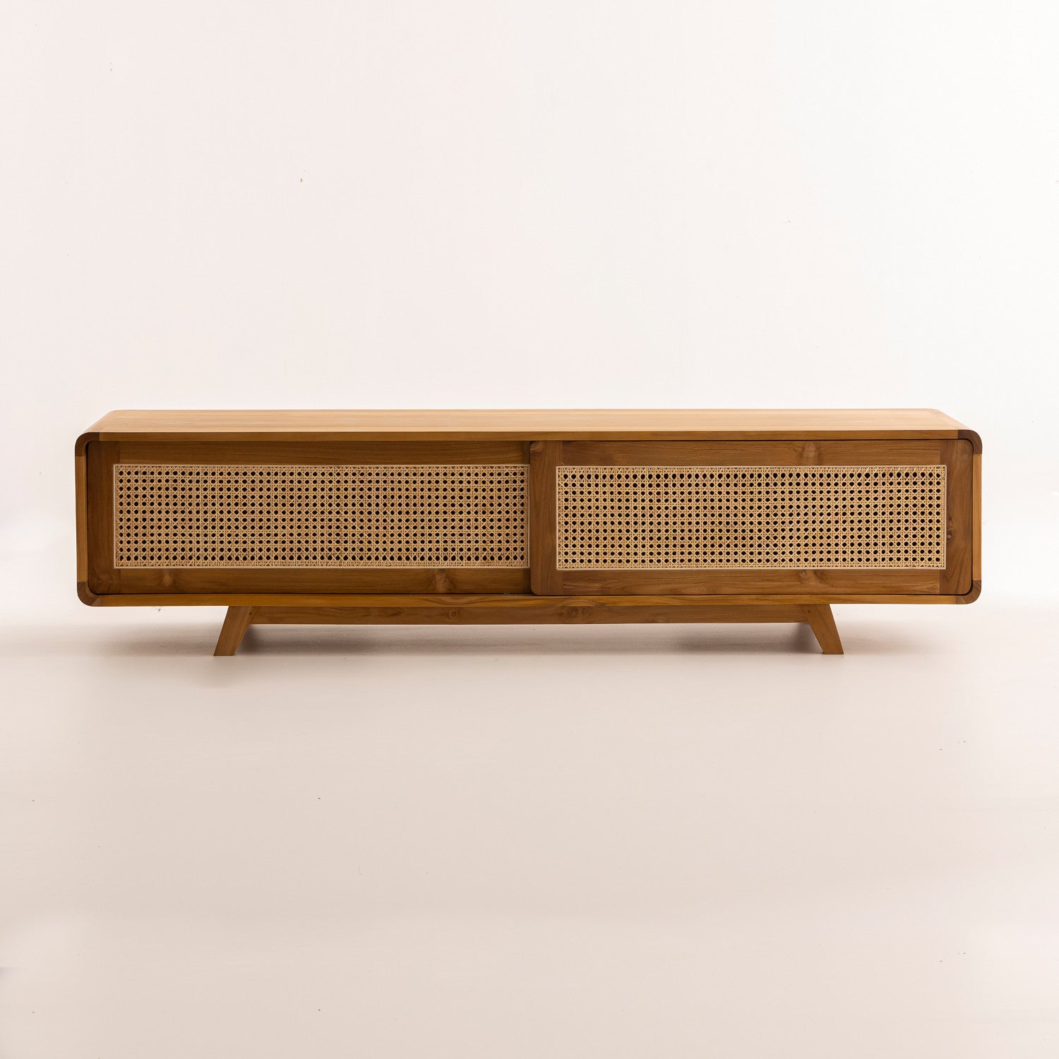 Meuble TV en Bois de Teck et Cannage - 180x40x45 cm