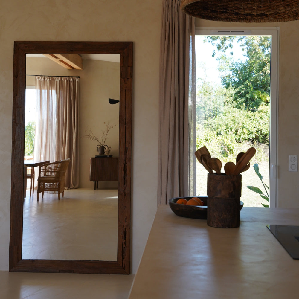 Découvrez le charme authentique du Miroir Rustique Cadre en Bois Recyclé, fabriqué à la main avec soin à Bali, en Indonésie. Ce miroir unique apporte une touche de caractère et de chaleur à votre intérieur grâce à son cadre en bois recyclé.