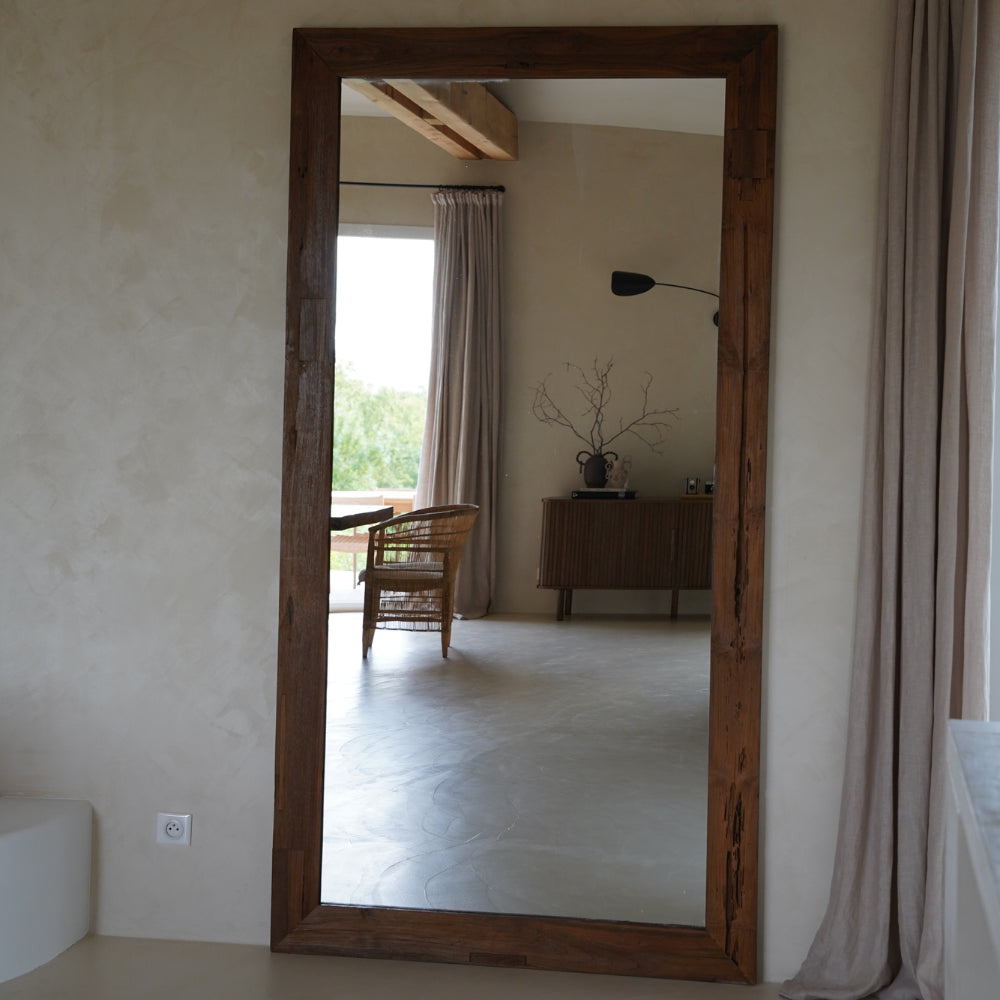 Avec ses dimensions 180 cm x 80 cm ou 200 cm x 100 cm, ce miroir en bois rustique peut être utilisé comme pièce maîtresse décorative dans votre salon, votre chambre à coucher ou votre entrée. Il peut également être ajouté dans un couloir pour ajouter de la profondeur et de l'intérêt visuel.