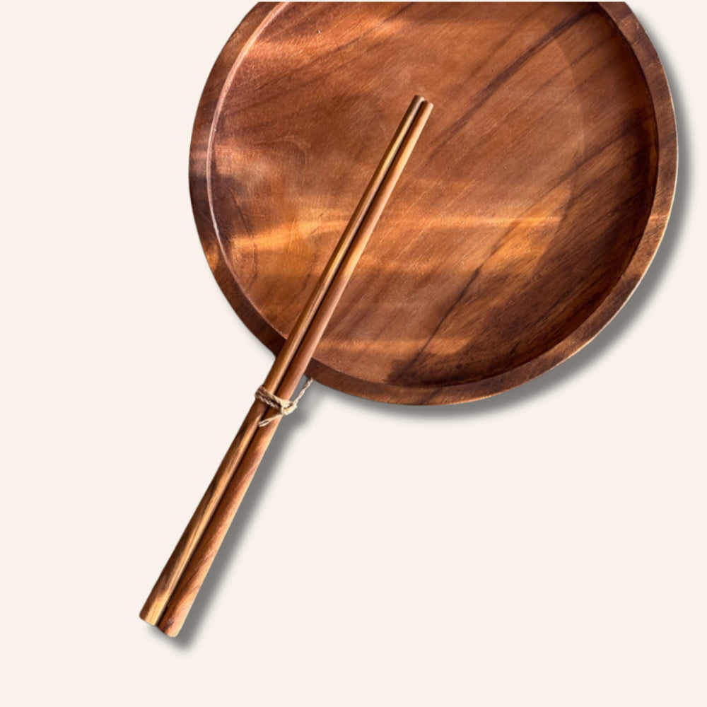 Baguettes en bois de teck, fabriquées à la main. Élégantes et durables, elles offrent une expérience culinaire authentique.