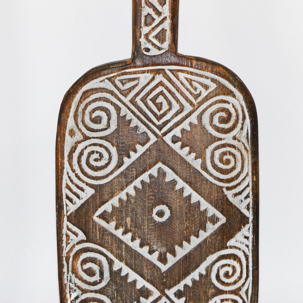 Confectionnée en bois finement sculpté, cette pièce d'art mural apporte une touche d'élégance naturelle à votre espace de vie.