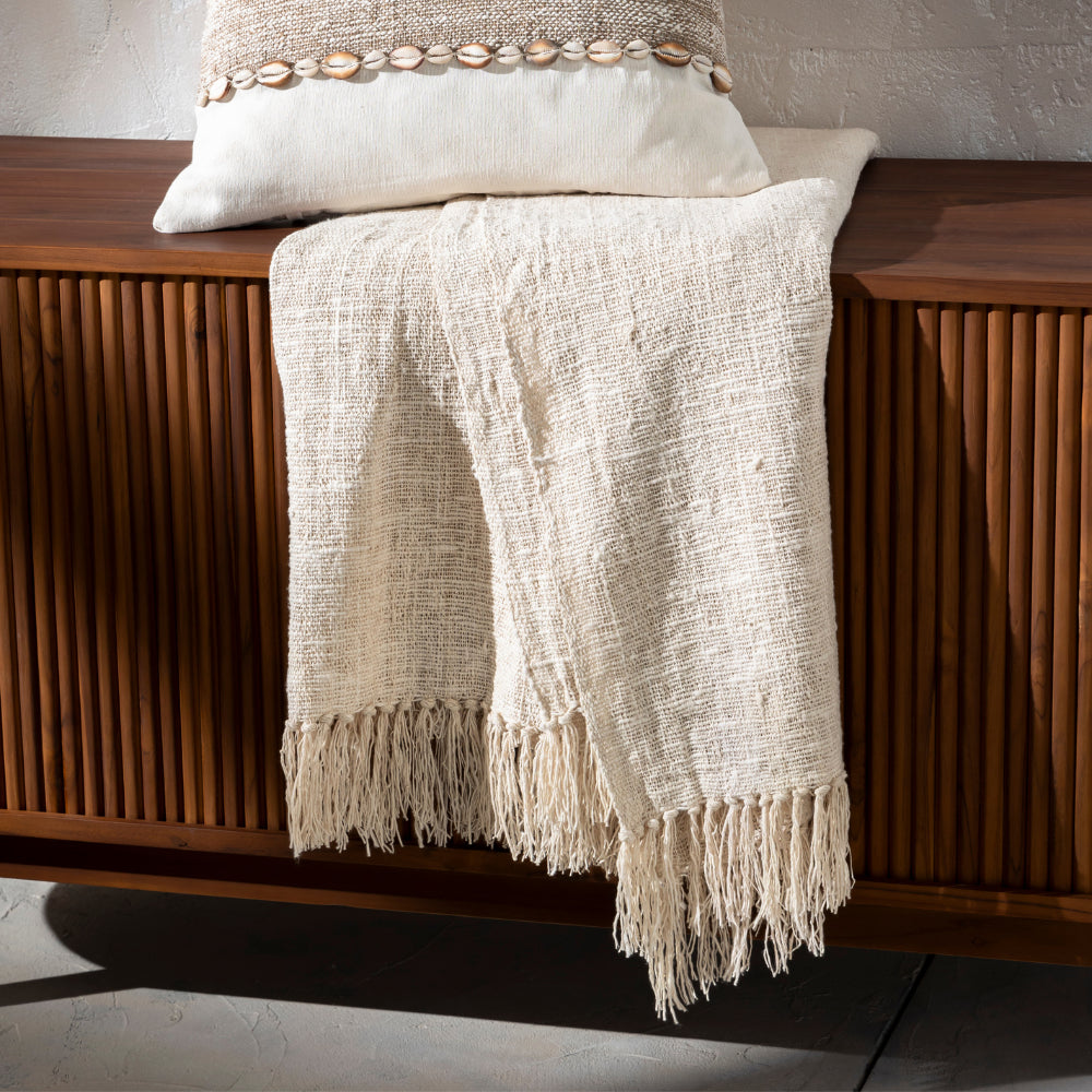 Nos plaids cozy et intemporels faits à la main sur l'île de Bali, apportent de la douceur et un côté bohème à vos intérieurs.