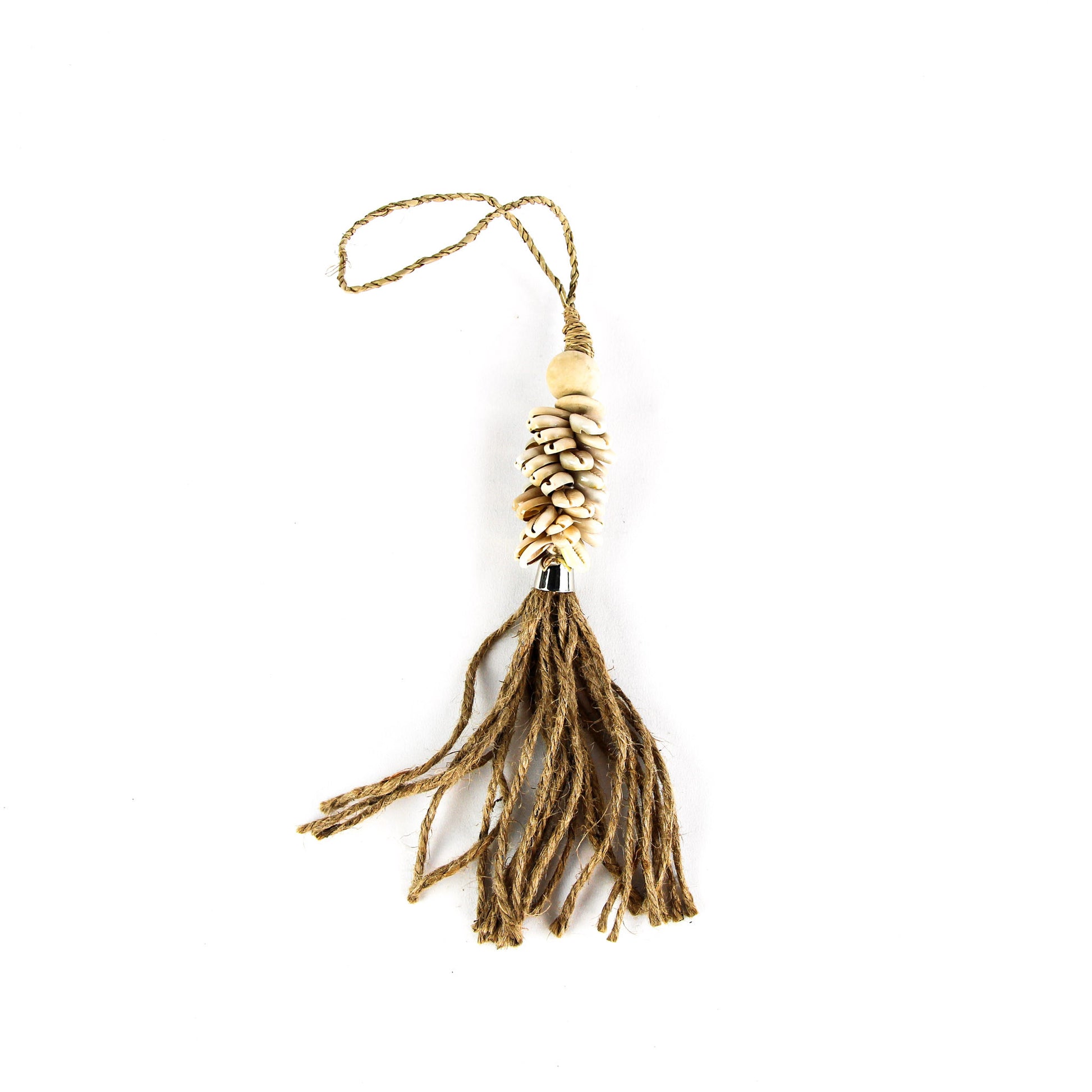 Apportez une atmosphère bohème et marine à votre espace avec nos pompons côtiers artisanaux. Ces joyaux, réalisés à la main par des artisans balinais, mêlent habilement le raphia naturel et de délicats coquillages pour créer une harmonie exotique. Que vous choisissiez de les accrocher aux portes, rideaux ou murs, ou de les poser avec élégance sur une commode, ces pompons sauront insuffler une touche côtière unique, tout en complétant votre décoration d'intérieur avec un raffinement naturel. Plongez dans une ambiance à la fois élégante et décontractée, et laissez-vous séduire par le charme exotique de Bali à chaque regard porté sur ces trésors artisanaux.