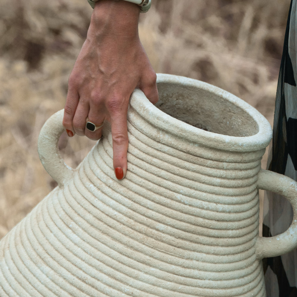 - Artisanal : chaque modèle est dessiné par nos soins puis modelé sur l'île de Lambok en Indonésie, réputée pour son artisanat de poterie et de techniques traditionnelles.
