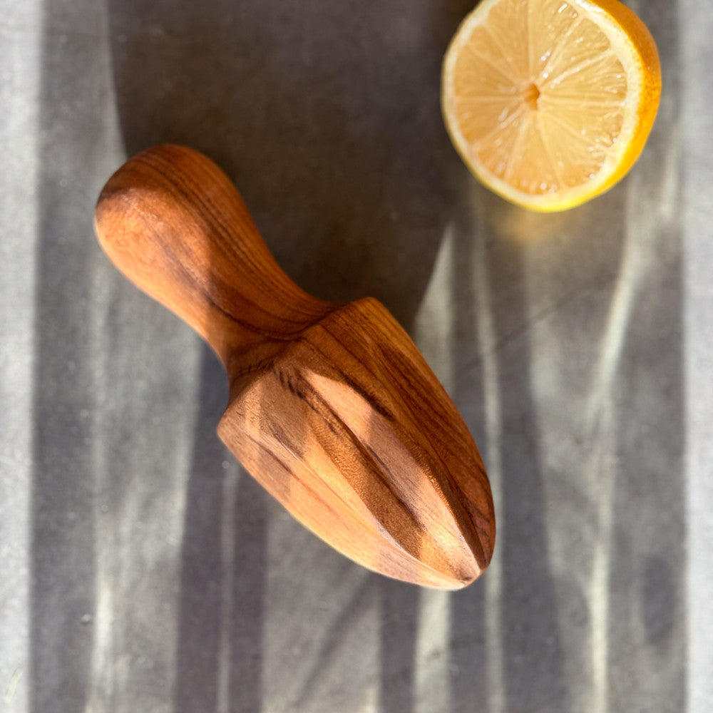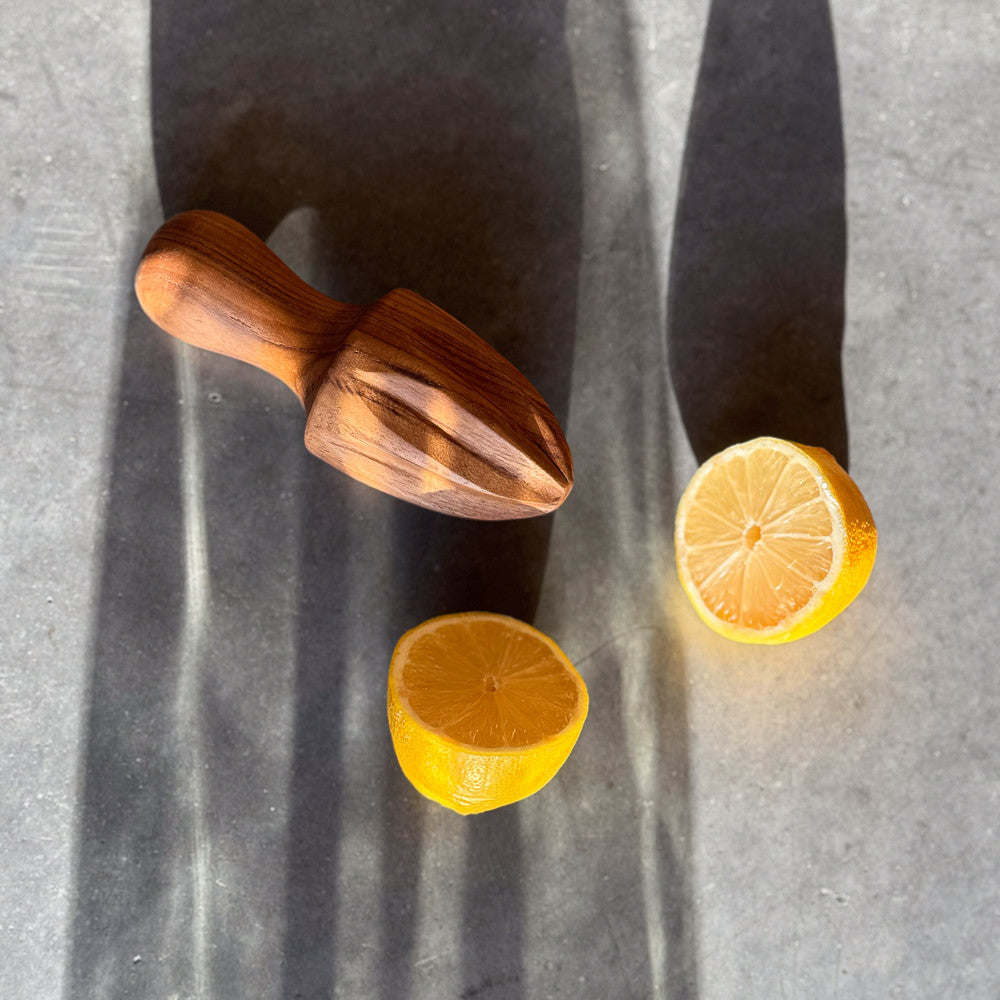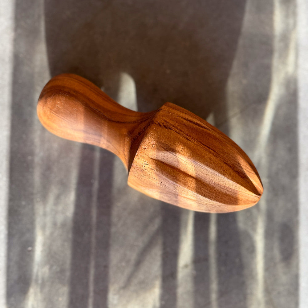 Presse-agrumes en bois de teck, fabriqué à la main. Pratique et esthétique, il allie robustesse et élégance naturelle pour extraire facilement le jus de vos agrumes.
