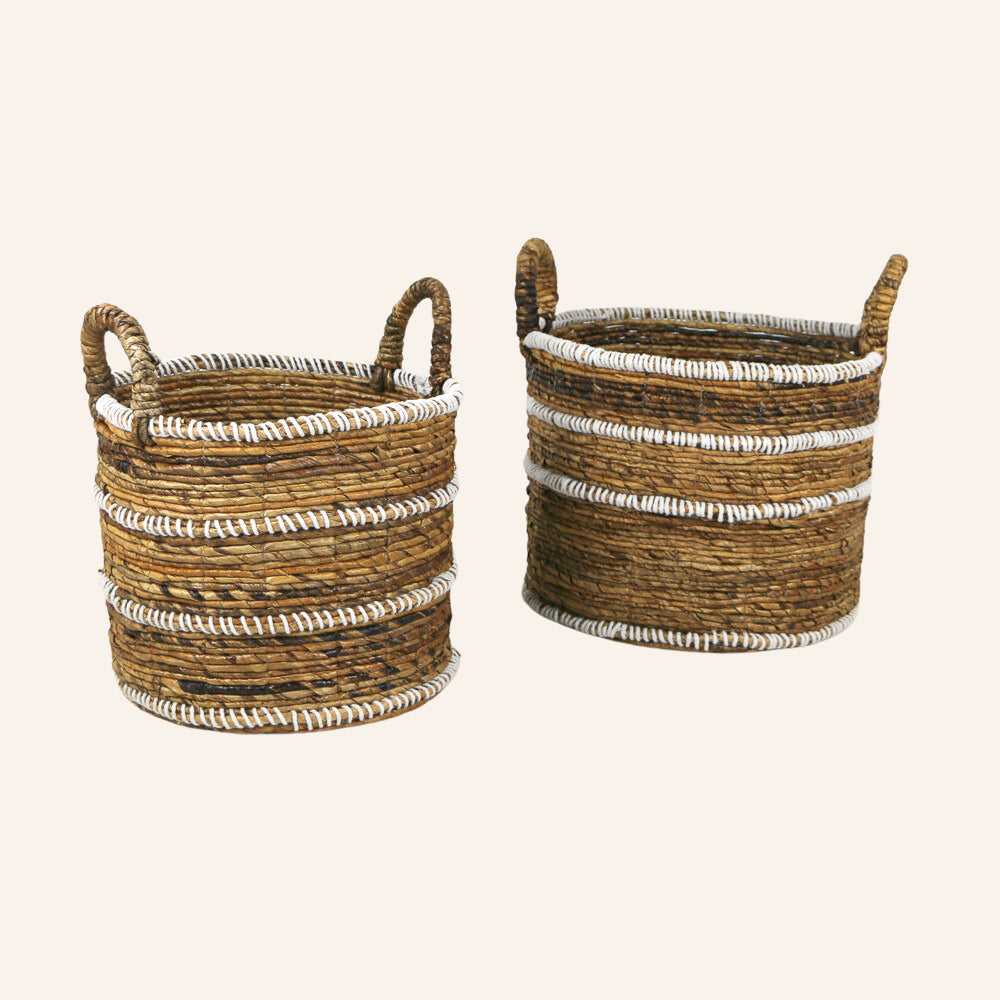 Découvrez ce set de 2 paniers en fibre de banane, une solution parfaite pour ceux qui recherchent à la fois fonctionnalité et décoration d'intérieur naturelle.
