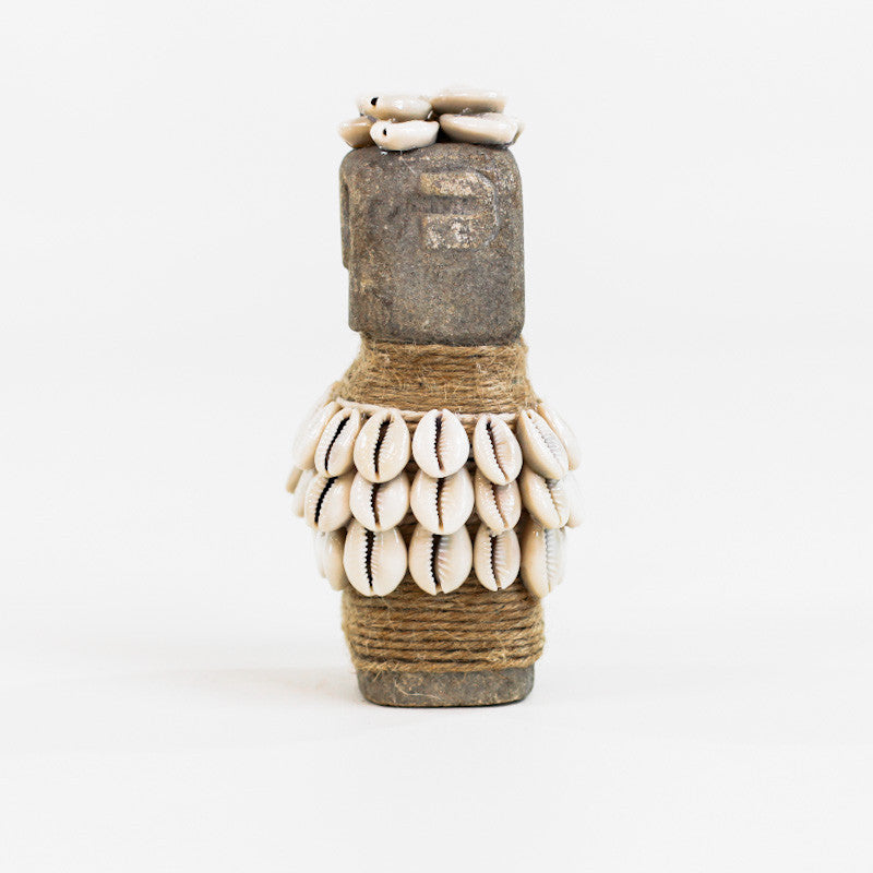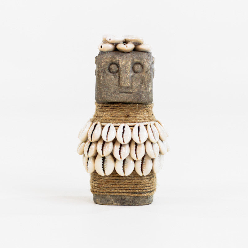 Statuette en pierre et coquillage, esprit Sumba, pièce d'art unique.