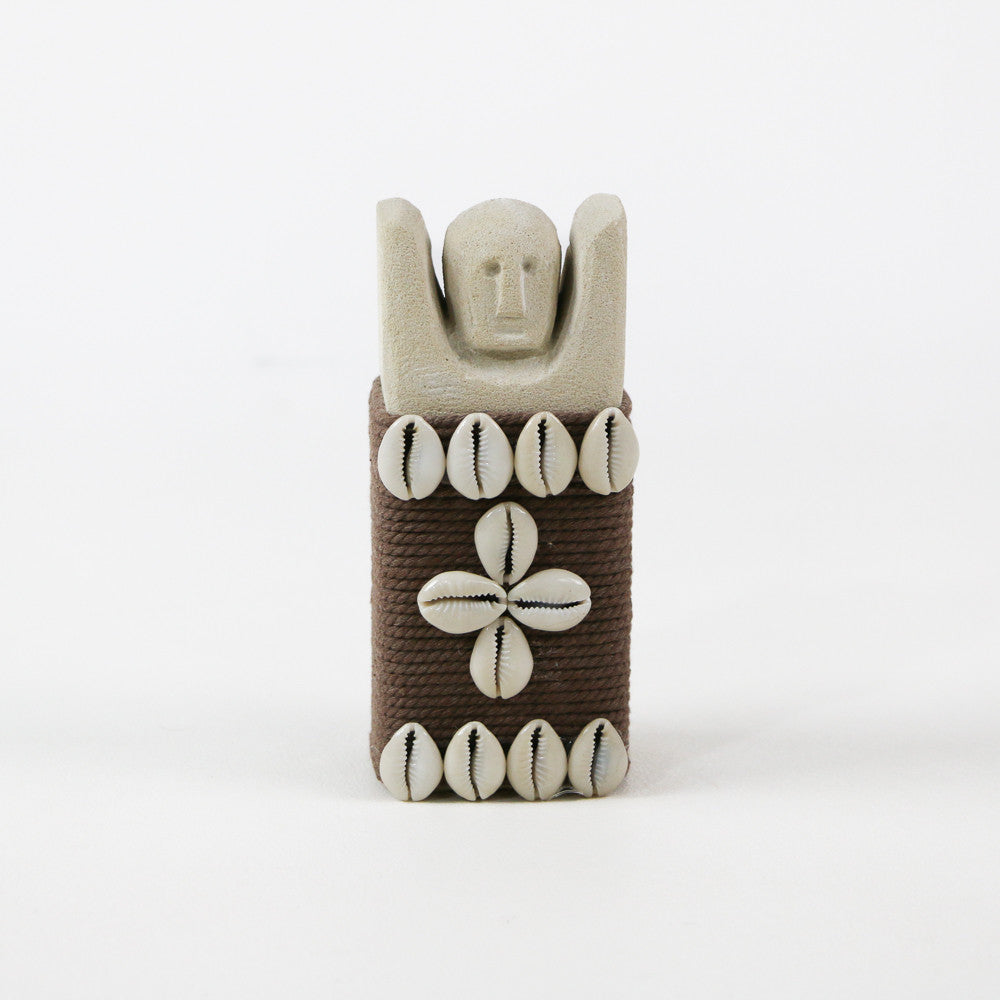 Ajoutez une touche spirituelle avec la Statuette Sumba. Cette pièce artisanale en pierre et coquillages incarne chance, bonheur et éloigne les mauvais esprits.