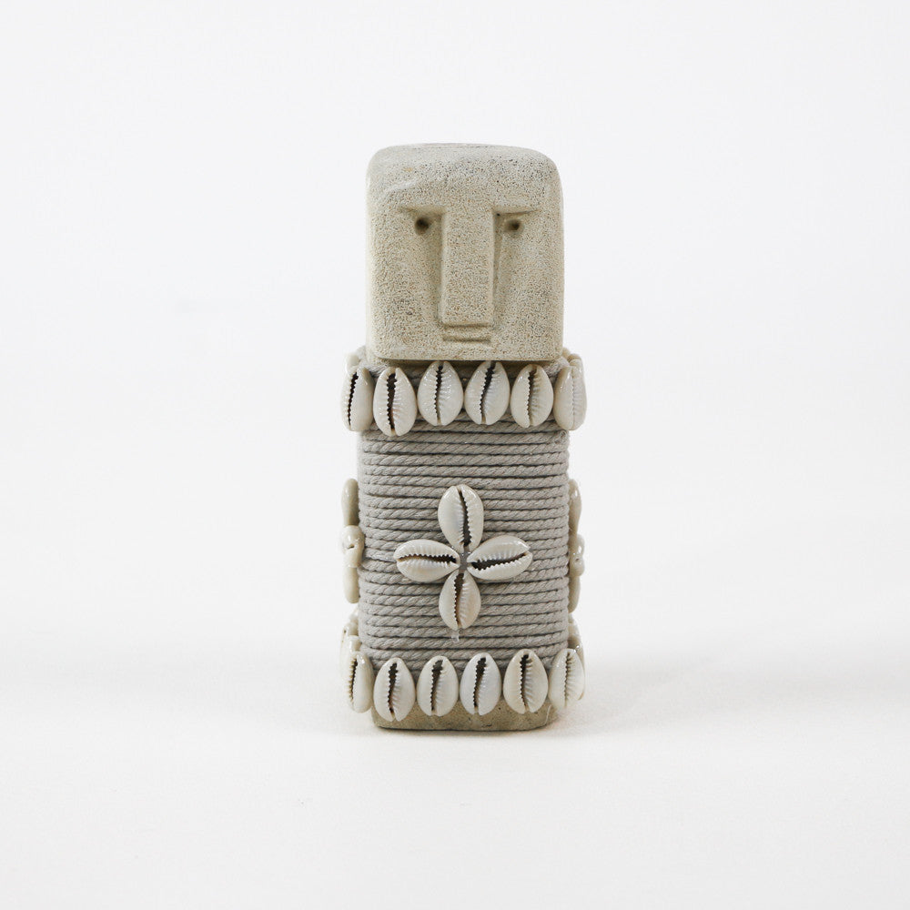 Ajoutez une touche spirituelle avec la Statuette Sumba. Cette pièce artisanale en pierre et coquillages incarne chance, bonheur et éloigne les mauvais esprits.