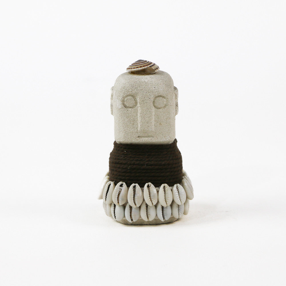 La Statuette Sumba, réalisée artisanalement en pierre et agrémentée de coquillages, est un bel objet décoratif qui symbolise chance et protection, éloignant les énergies négatives.