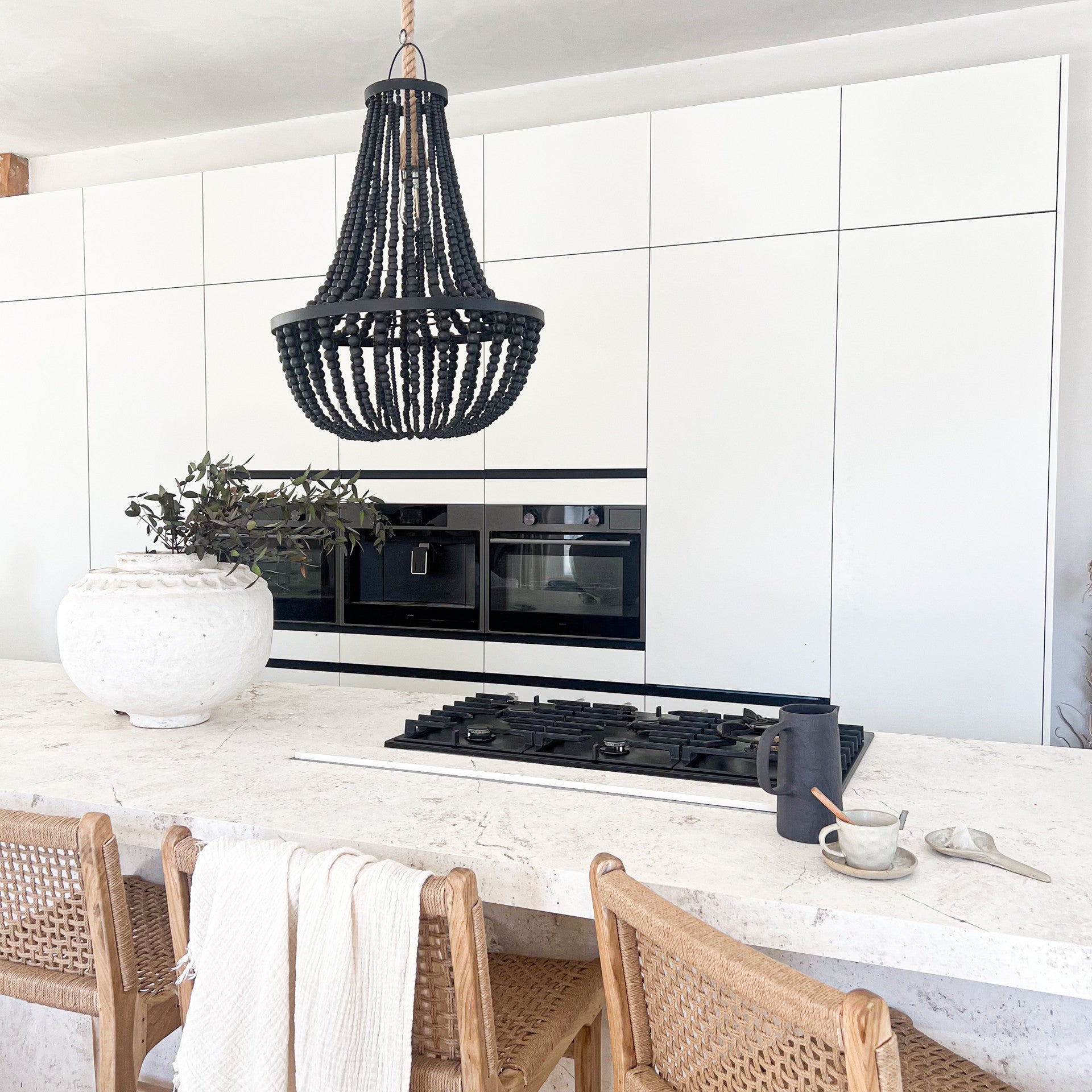 Ce luminaire suspendu en perles de caféier noir et socle assorti s'intègre harmonieusement à divers styles de décoration d'intérieur, qu'il s'agisse d'un espace moderne et minimaliste ou d'un intérieur plus éclectique.