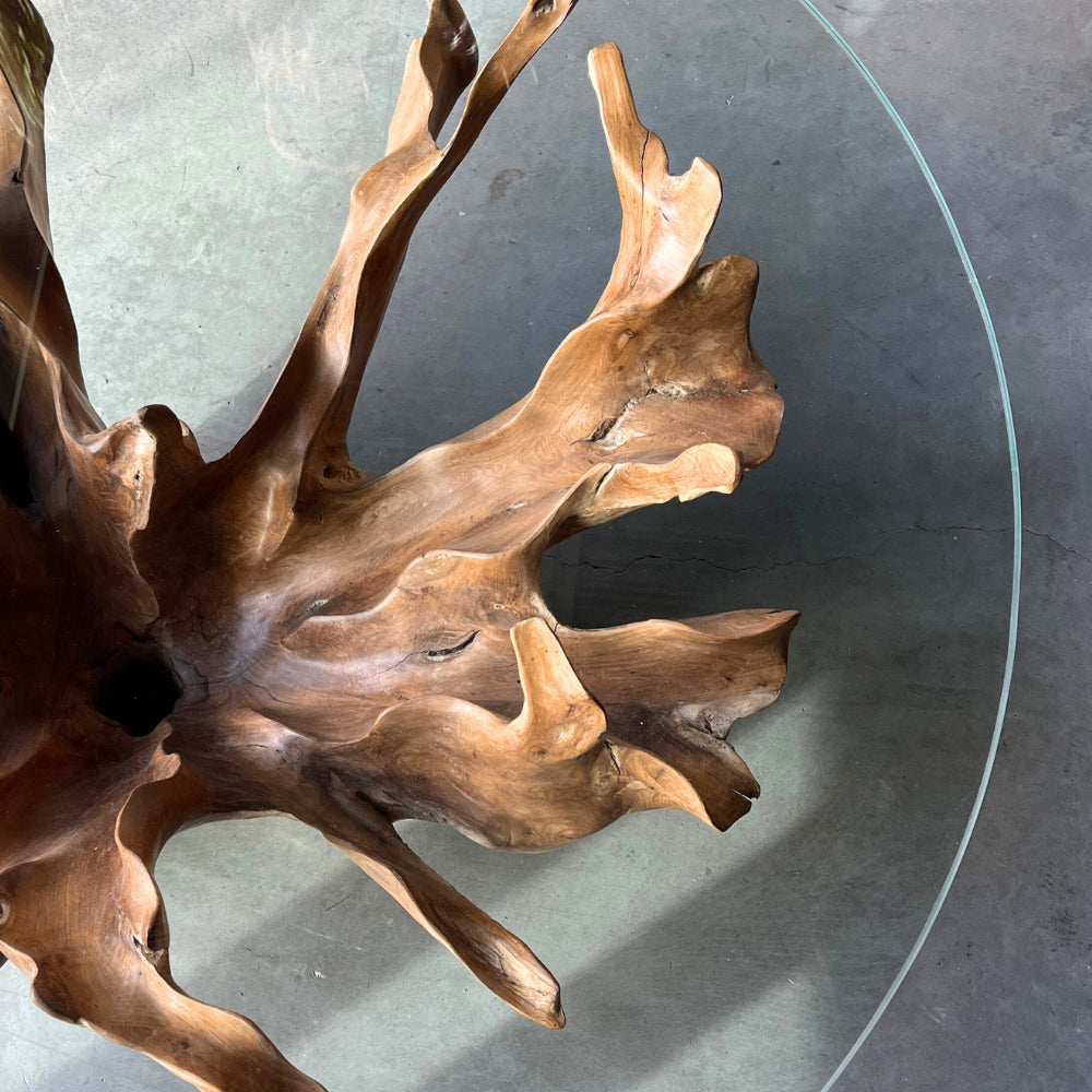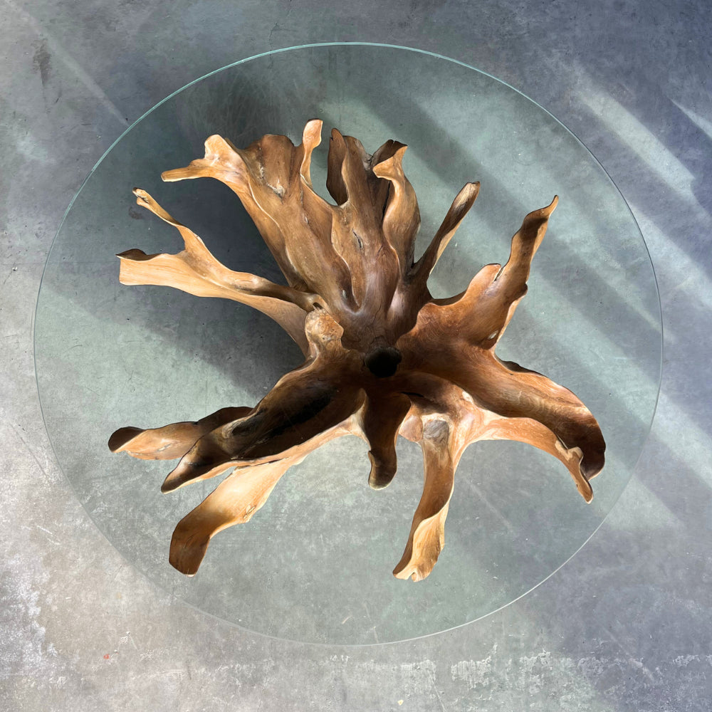 Table basse en racines de teck flower et plateau en verre - ref 1161