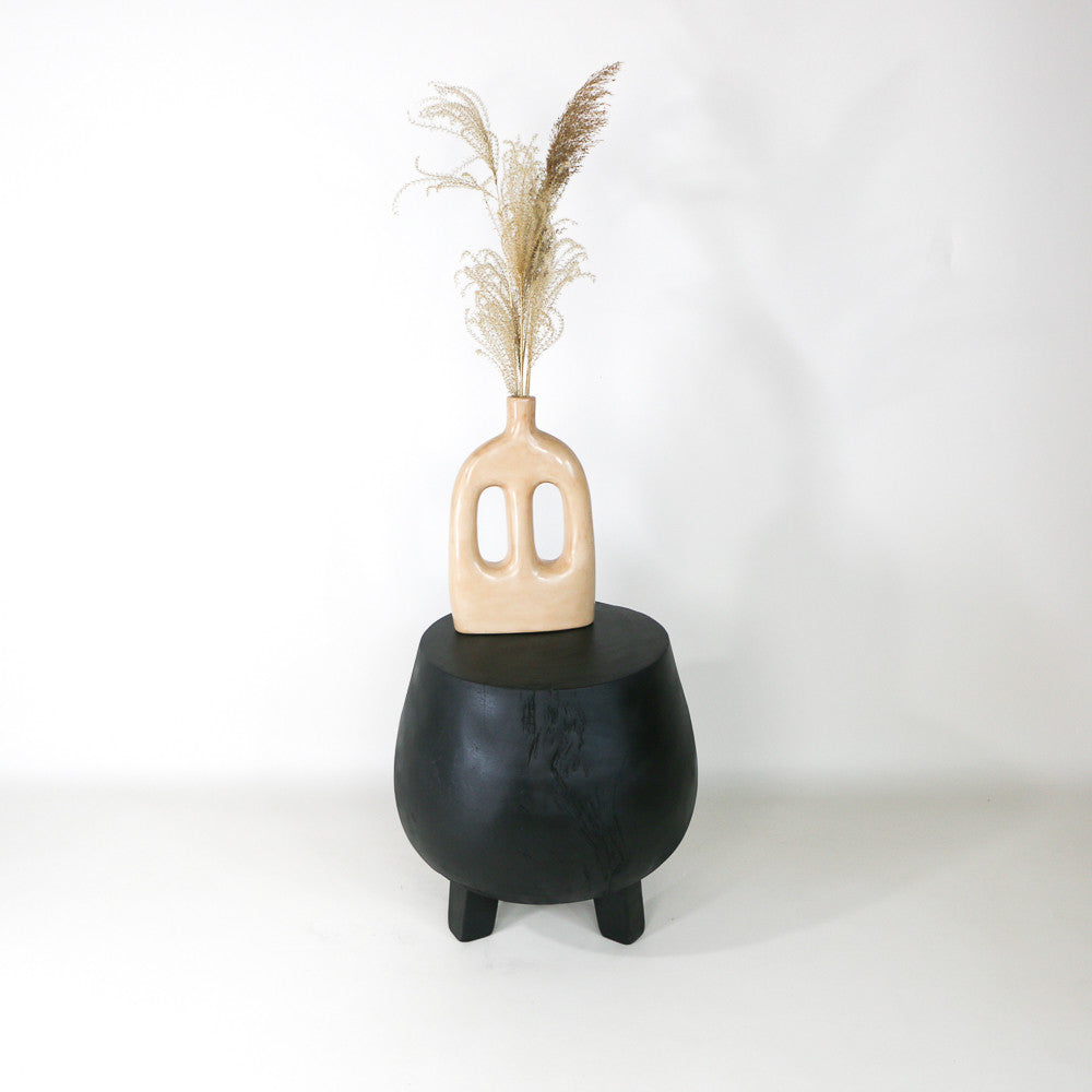 Découvrez notre table d'appoint en bois de teck brûlé.