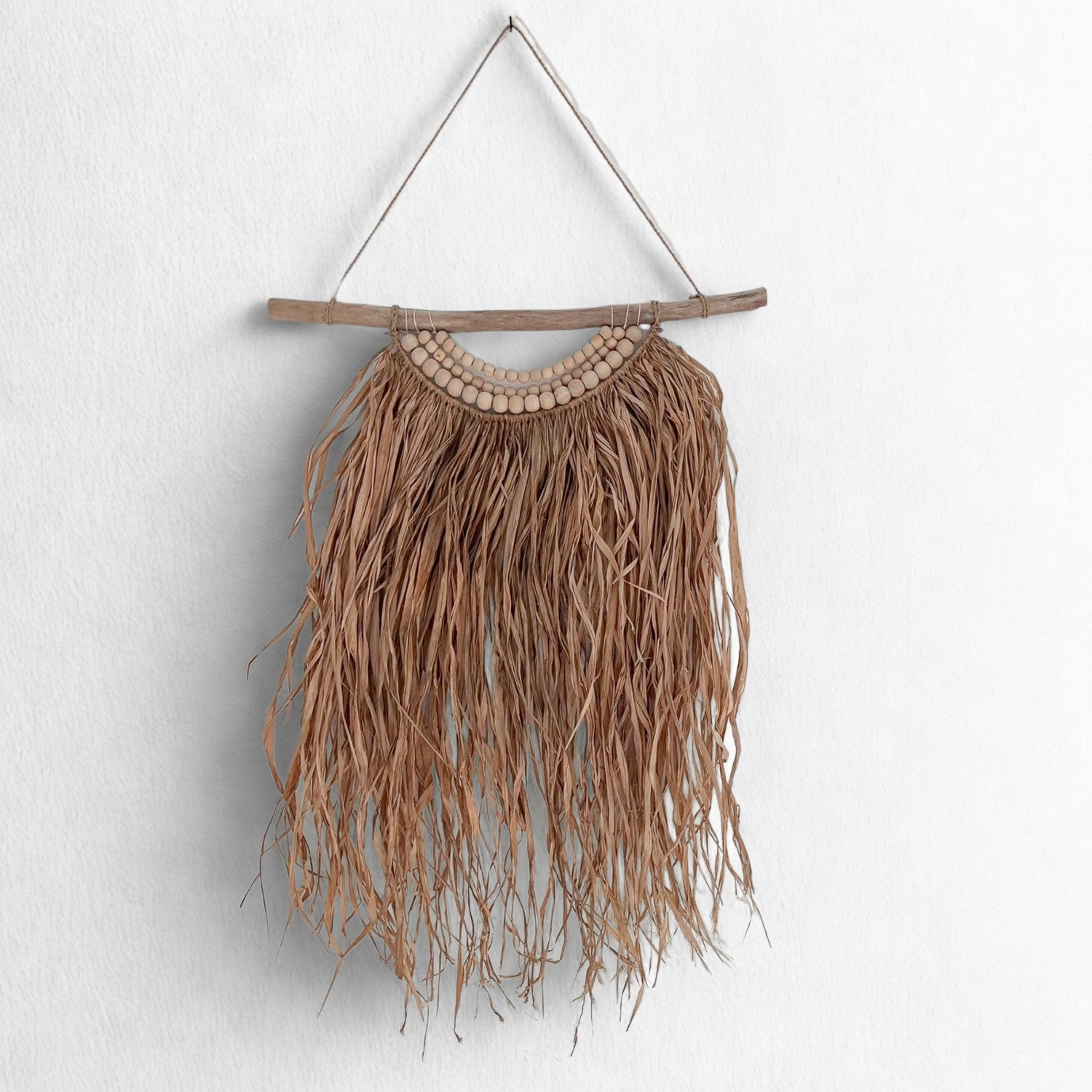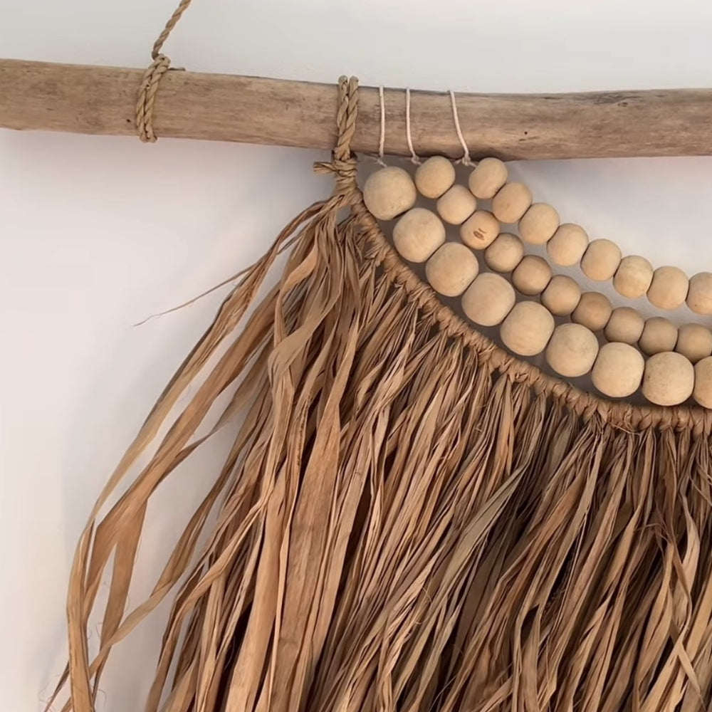 Tenture murale en bois et raphia