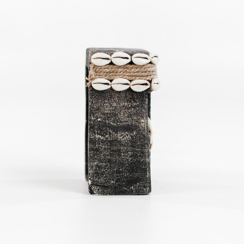 Statuette en pierre et coquillage, esprit Sumba, pièce d'art unique.