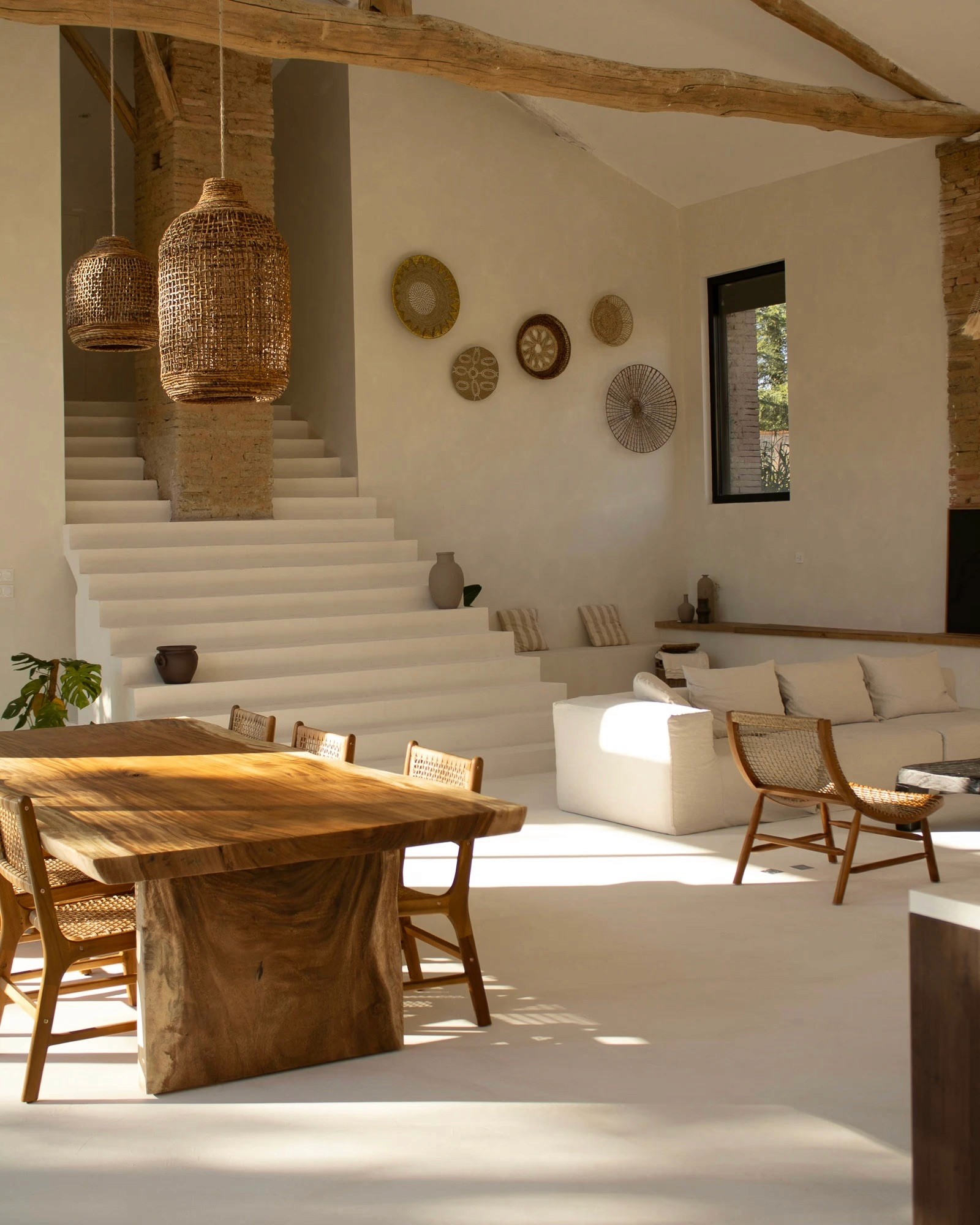 La suspension Lampion en corde blanche évoque ces intérieurs baignés de lumière, ouverts sur l’horizon, où l’air circule librement et où chaque matière capte la clarté avec douceur. Son tressage clair laisse la lumière glisser et se diffuser naturellement, dessinant des ombres fines et mouvantes qui allègent l’espace. Suspendue au-dessus d’une table, dans un salon ou une chambre, elle apporte une sensation d’équilibre et de calme, comme une lumière posée là sans effort. Un luminaire artisanal à la présence discrète, pensé pour accompagner l’espace et lui offrir cette impression précieuse de clarté sereine et d’évasion tranquille.