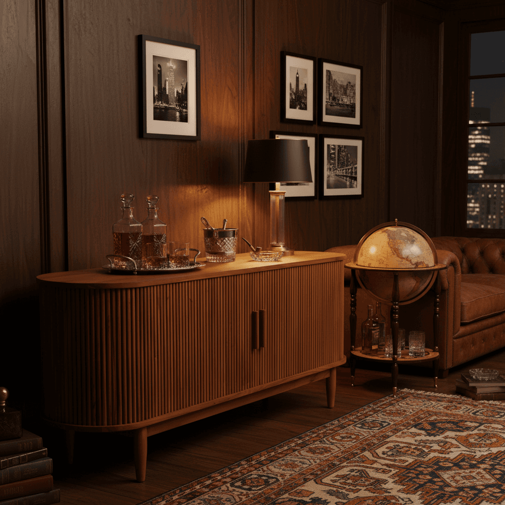 Le petit buffet Rupa apporte instantanément du caractère à l’espace grâce à sa silhouette compacte et à ses portes sculptées de motifs arrondis qui captent la lumière comme un relief architectural. Sa teinte tabac nuancée de miel diffuse une chaleur naturelle, parfaite pour une entrée, un salon ou une chambre. Ce format maîtrisé en fait une pièce forte qui structure l’intérieur sans l’alourdir, offrant un plateau idéal pour accueillir un vase, une lampe ou quelques objets décoratifs. Façonné artisanalement, chaque buffet présente des variations subtiles dans le motif et la matière, rendant chaque modèle unique, avec sa propre personnalité.