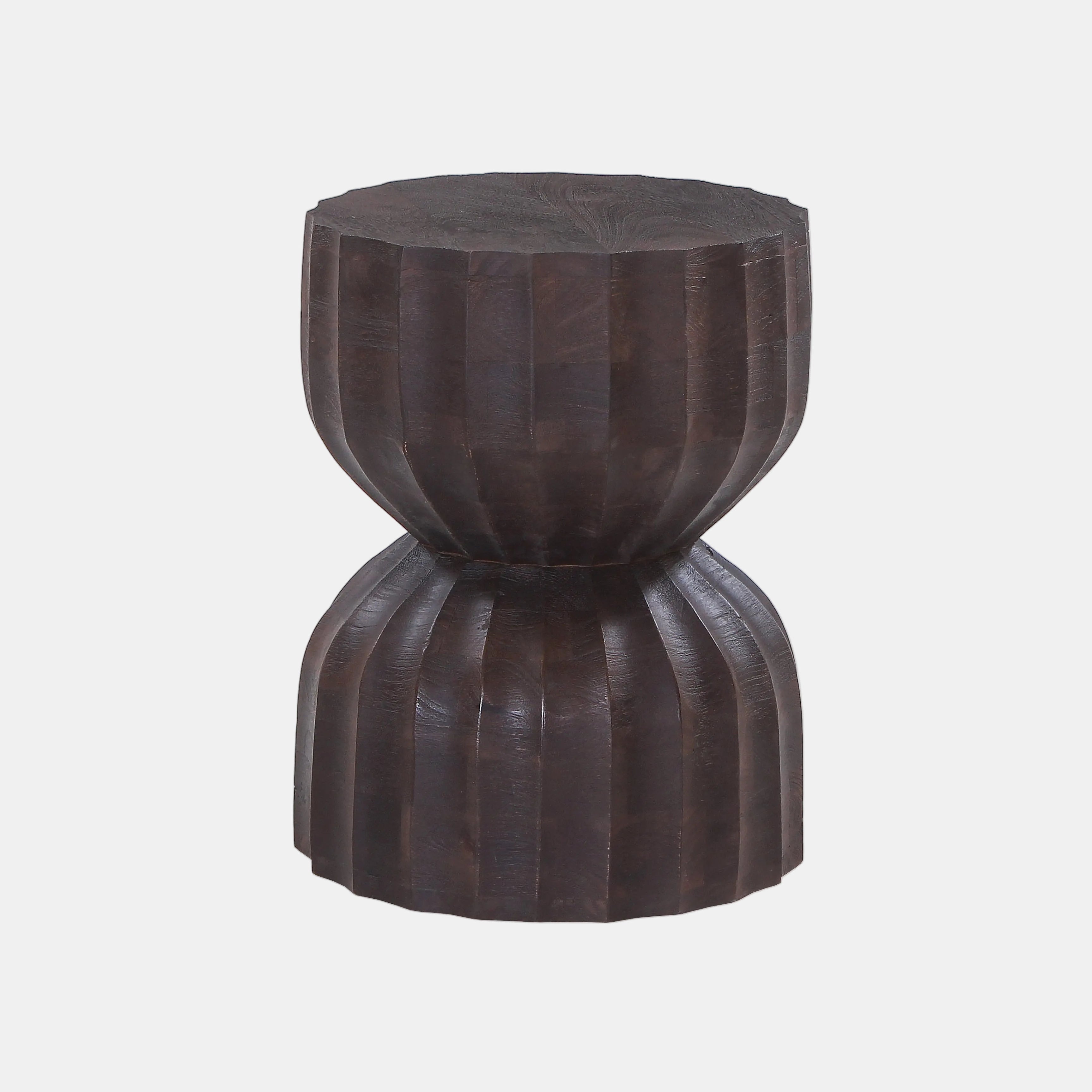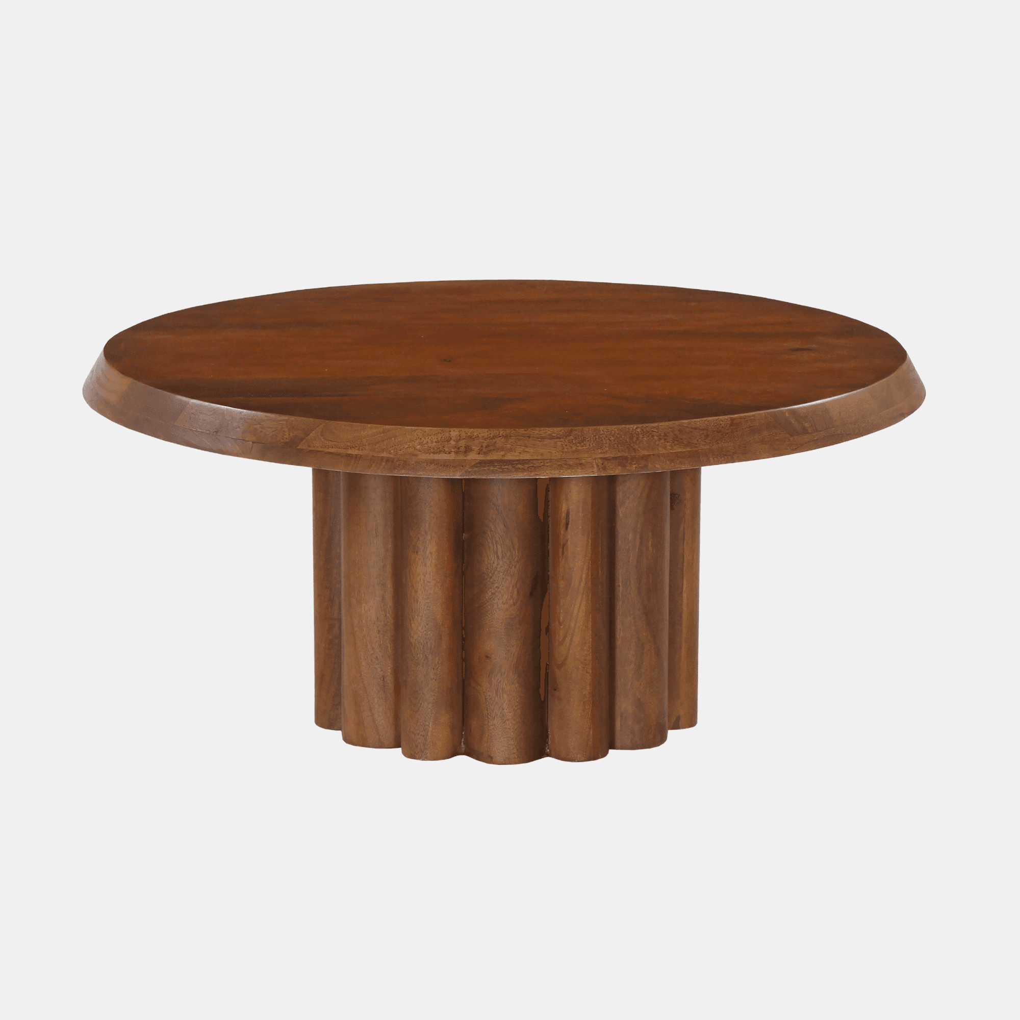 La table basse Loha se révèle comme un objet de pure matière, une pièce où le bois de manguier dévoile une douceur satinée qui accroche la lumière avec une délicatesse presque veloutée. Son plateau rond, lissé avec soin, offre une surface chaleureuse qui appelle naturellement le geste, tandis que son pied sculptural composé de colonnes arrondies lui donne une présence forte et apaisée à la fois. On y sent le travail minutieux de l’artisan, les nuances du bois qui se répondent, la densité tranquille de la pièce. Dans un salon, Loha devient ce centre silencieux autour duquel la vie s’organise, une table qui transforme l’ambiance par la seule beauté de sa matière et la douceur de ses courbes. Chaque exemplaire est unique, façonné lentement, avec intention.