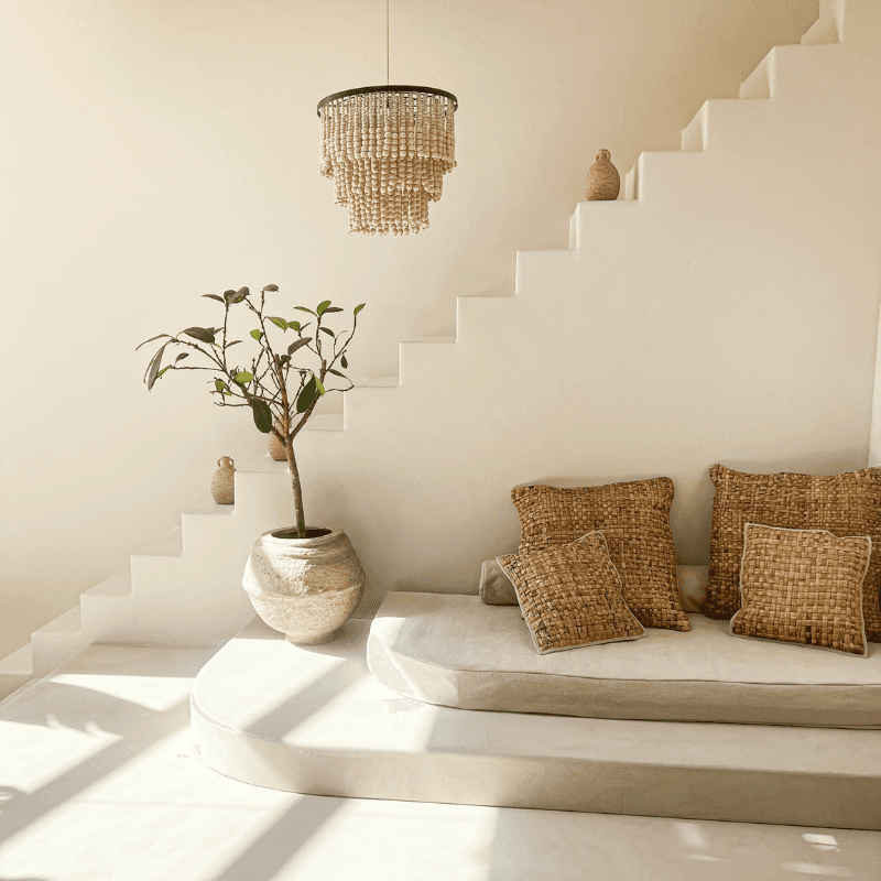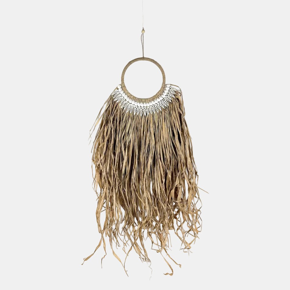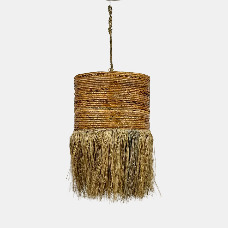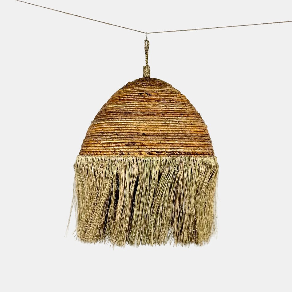 La suspension Aurora en feuilles de bananier apporte à l’intérieur une sensation immédiate de douceur naturelle, comme une parenthèse végétale suspendue dans l’espace. Son tressage artisanal et ses franges délicates créent un jeu de matières vivant, où la lumière se diffuse avec subtilité pour installer une atmosphère chaleureuse et enveloppante. Entre esprit bohème et élégance naturelle, Aurora trouve sa place aussi bien dans un salon que dans une chambre ou une salle à manger, transformant l’éclairage en véritable élément de décor. Plus qu’un simple luminaire, elle devient une présence décorative qui invite à ralentir et à savourer l’instant, portée par la poésie des fibres naturelles et le geste de l’artisan.
