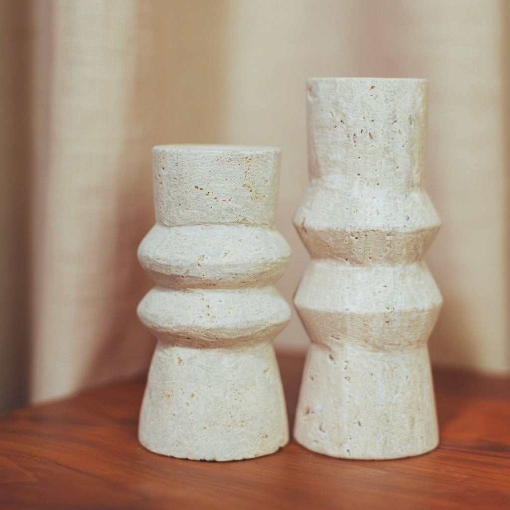 Des créations en travertin qui allient élégance minérale et design contemporain.
