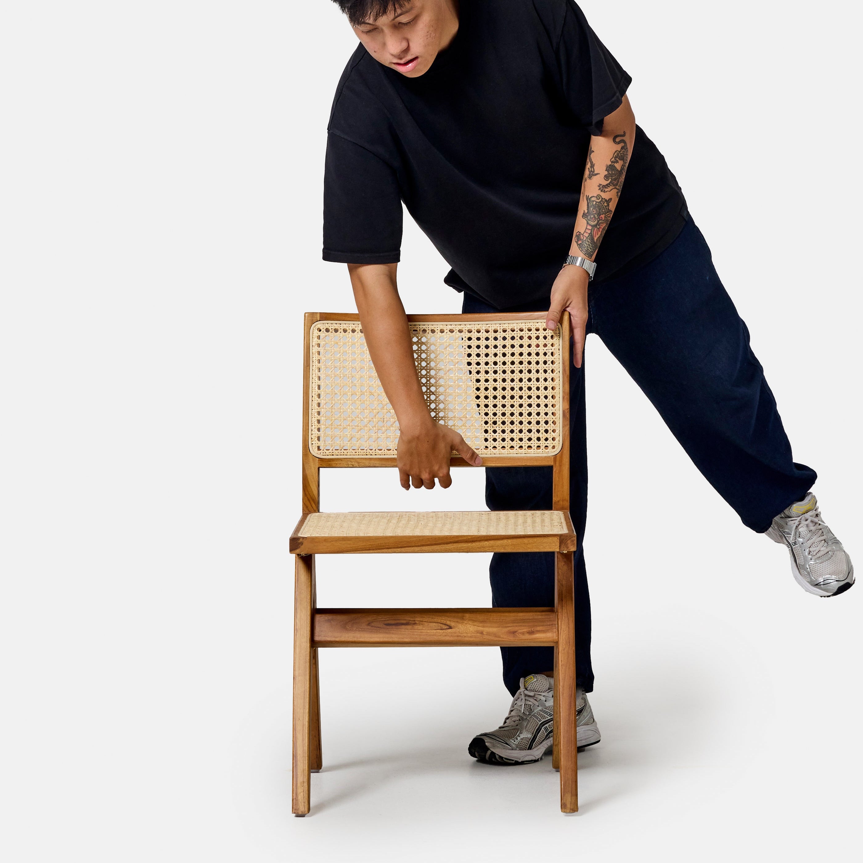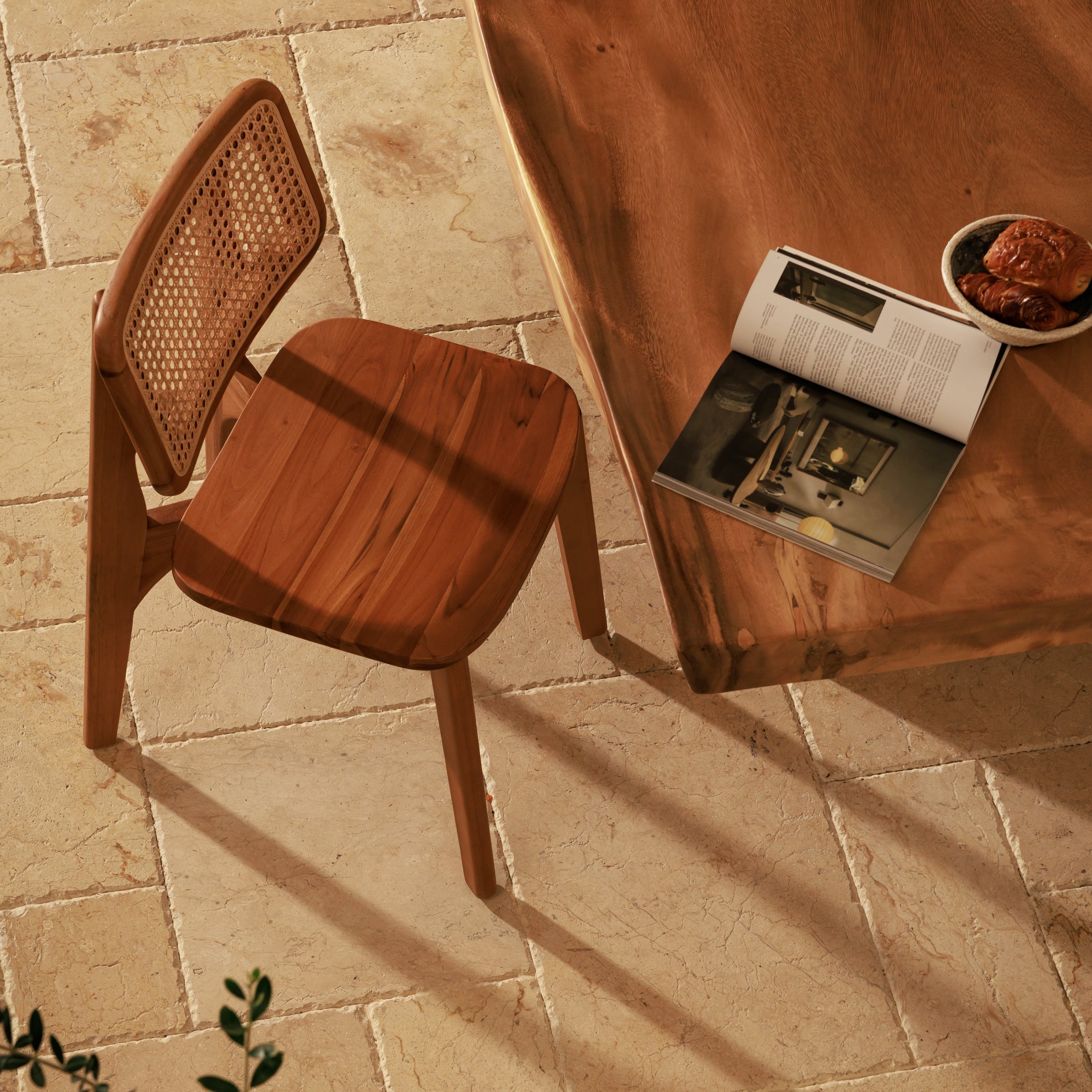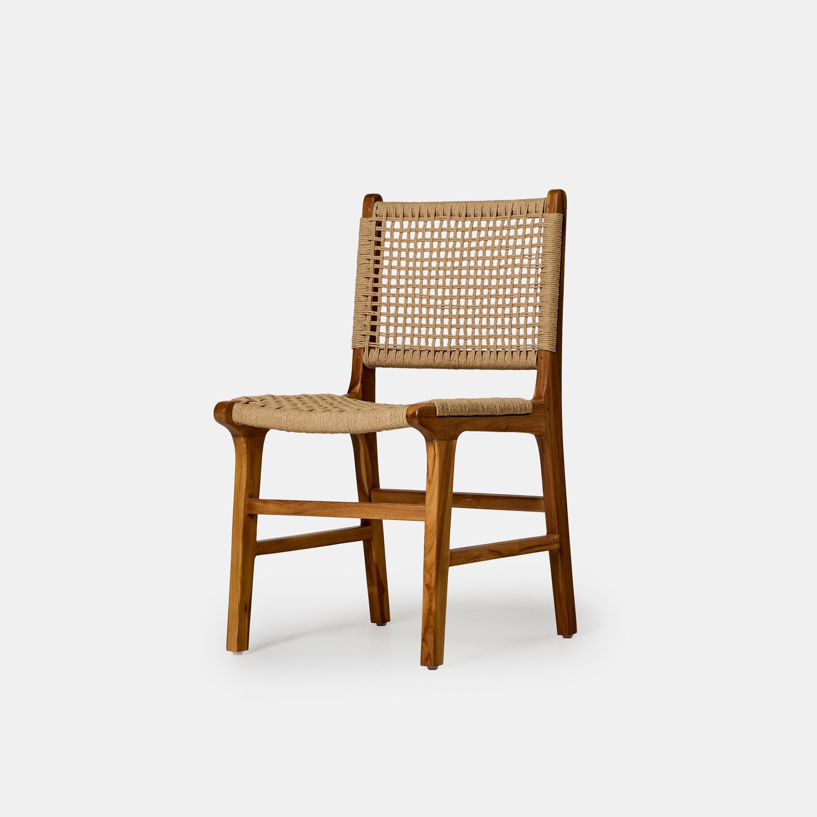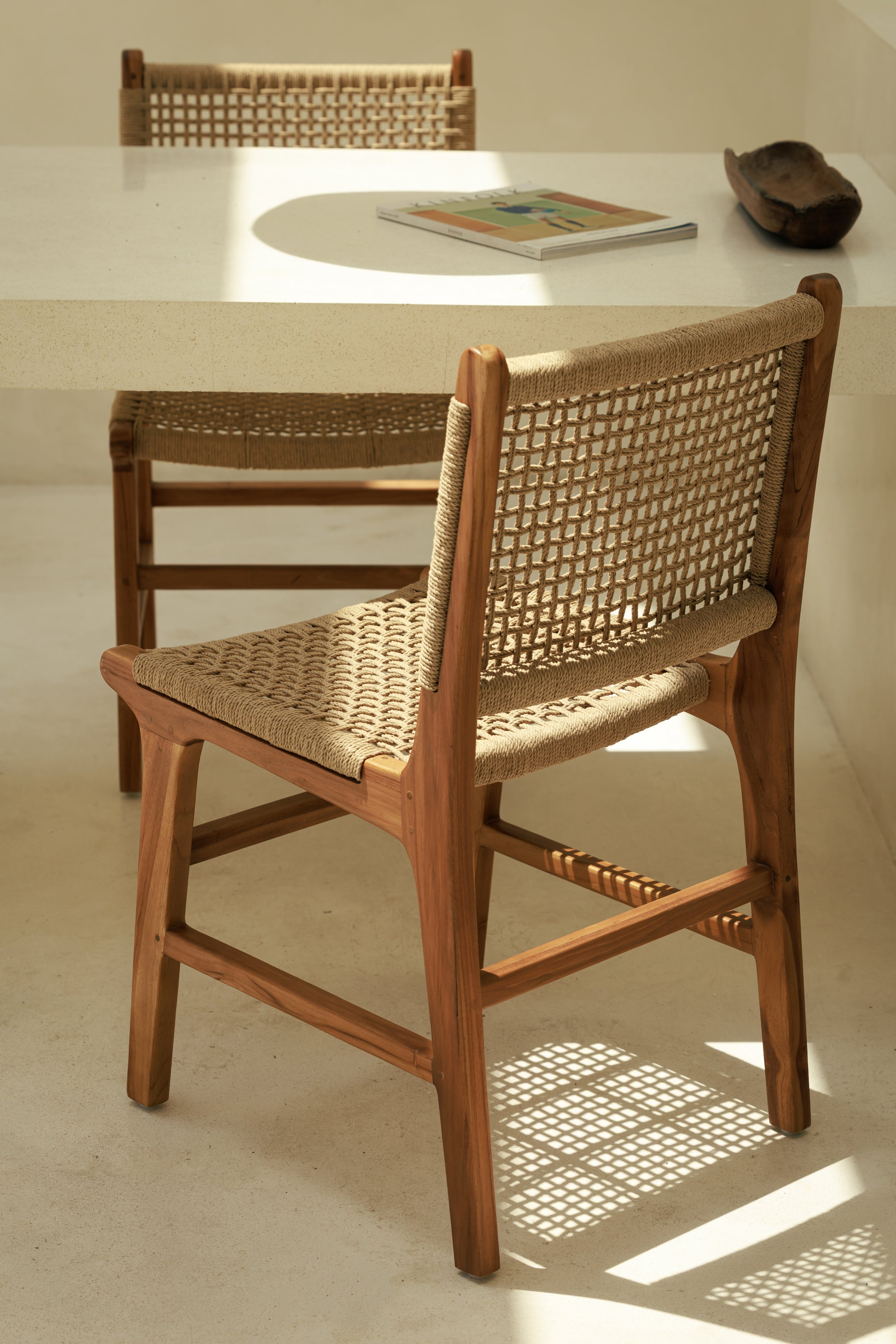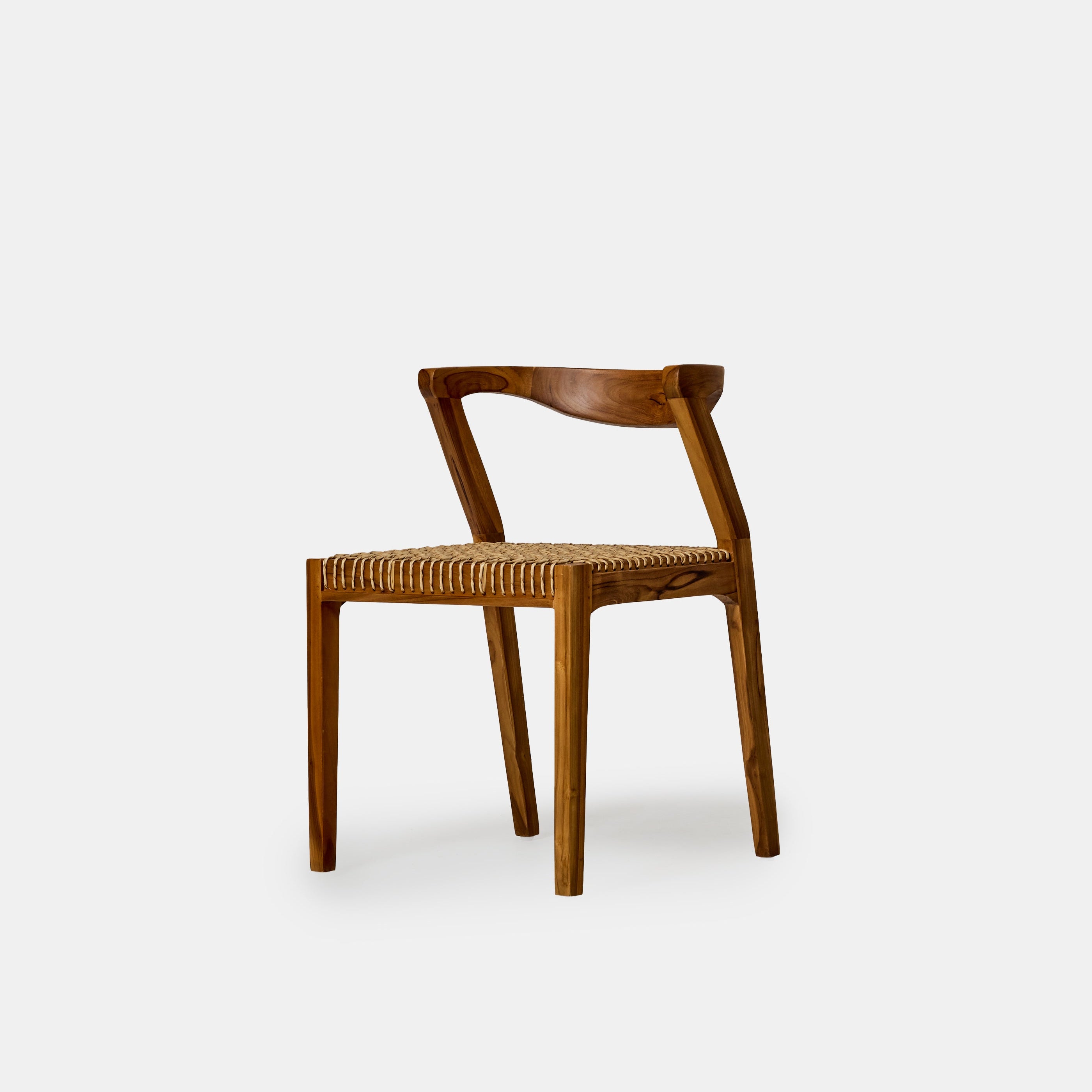 La chaise DWI TANPA allie élégance et authenticité dans un design à la fois intemporel et contemporain. Réalisée en bois de teck naturel et cannage tressé, elle célèbre la beauté des matières nobles et le savoir-faire des artisans. Ses lignes épurées et son dossier en rotin tressé offrent une assise à la fois confortable et légère visuellement. Avec sa hauteur de 77 cm, la DWI TANPA trouve naturellement sa place autour d’une table de repas, dans un bureau ou un espace de réception. Chaque pièce est façonnée à la main, rendant chaque chaise unique. Le teck naturel, riche en nuances, révèle une patine subtile au fil du temps, gage d’un mobilier durable, pensé pour accompagner les intérieurs les plus raffinés.
