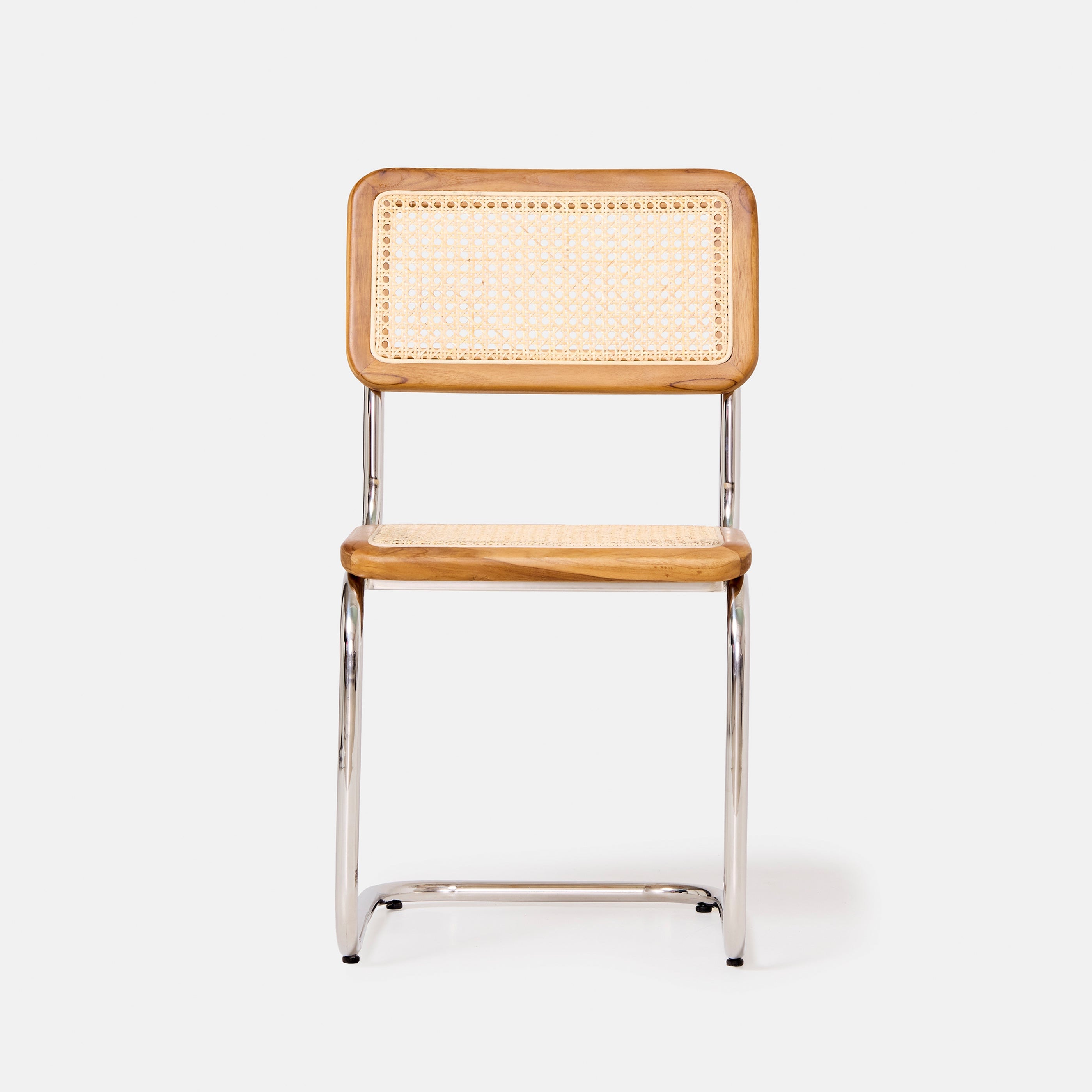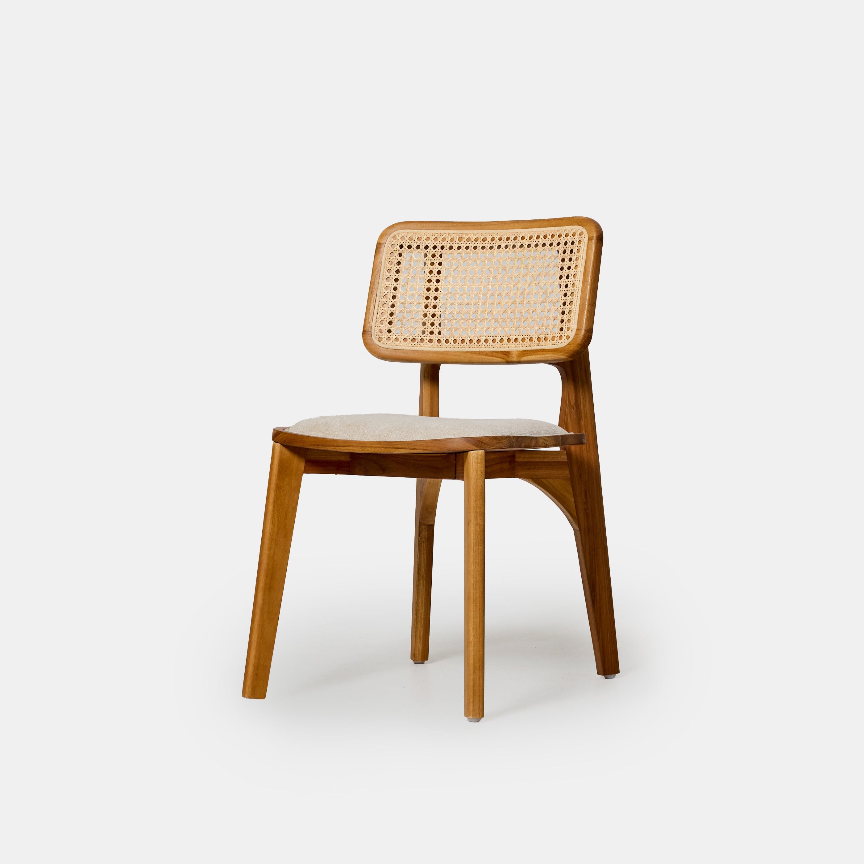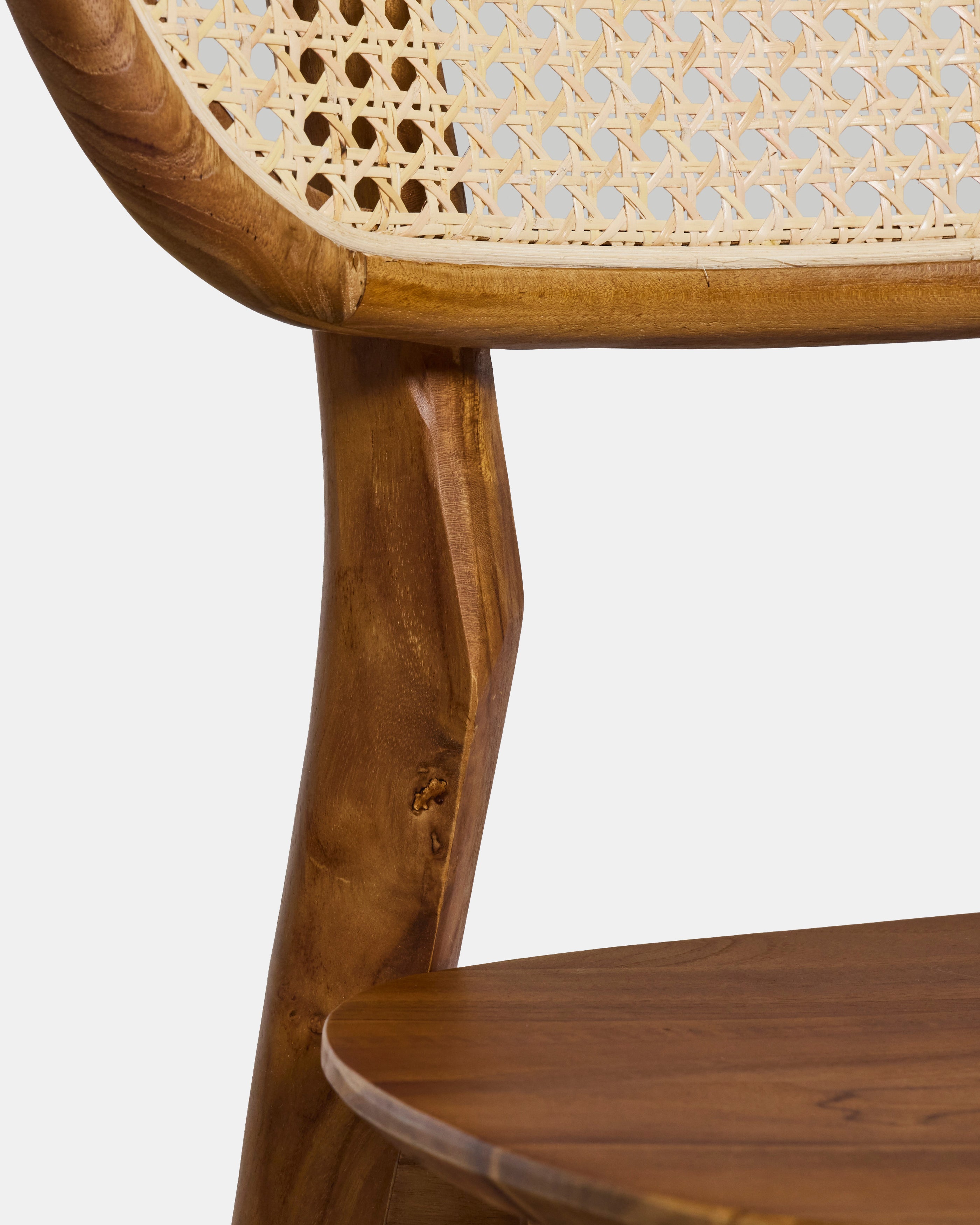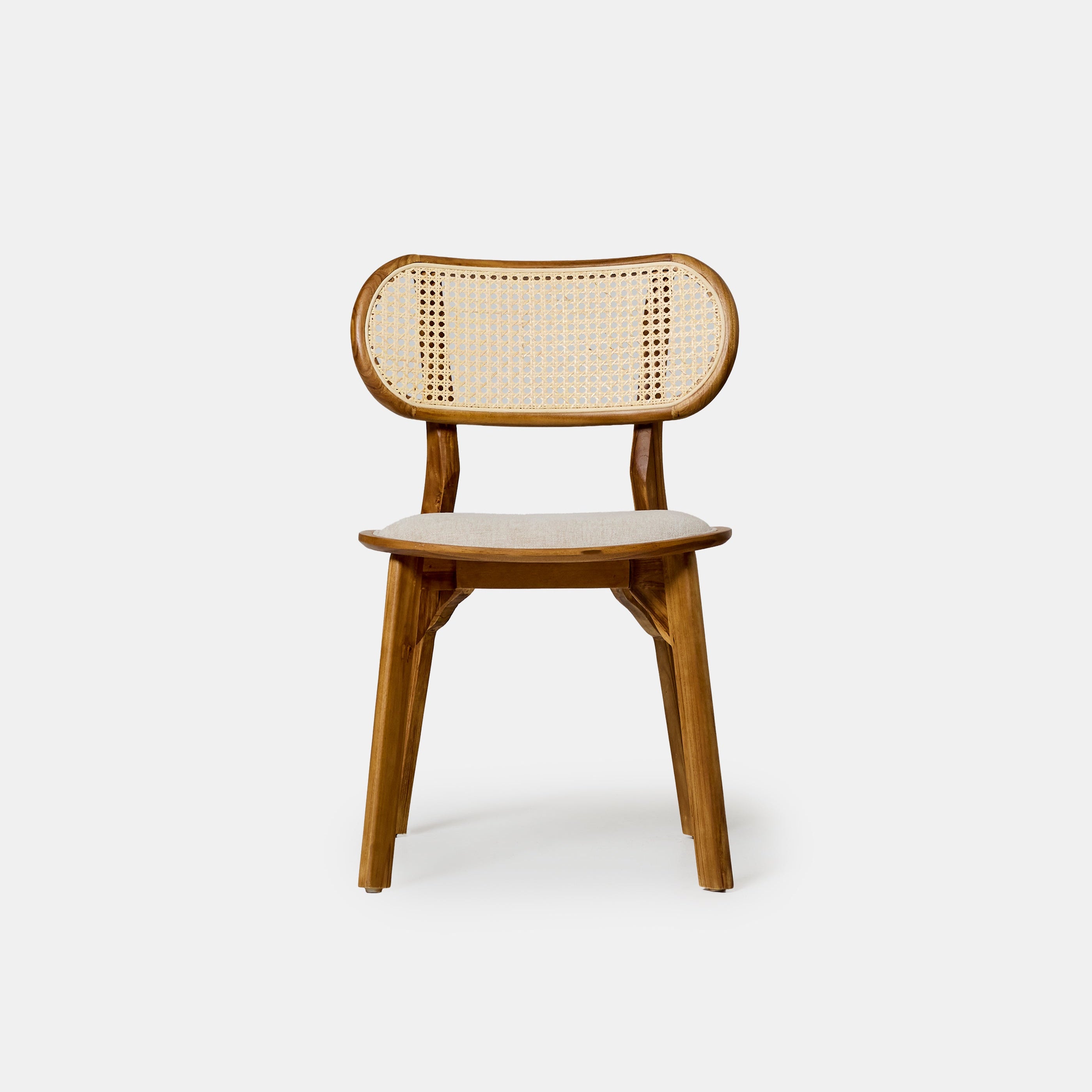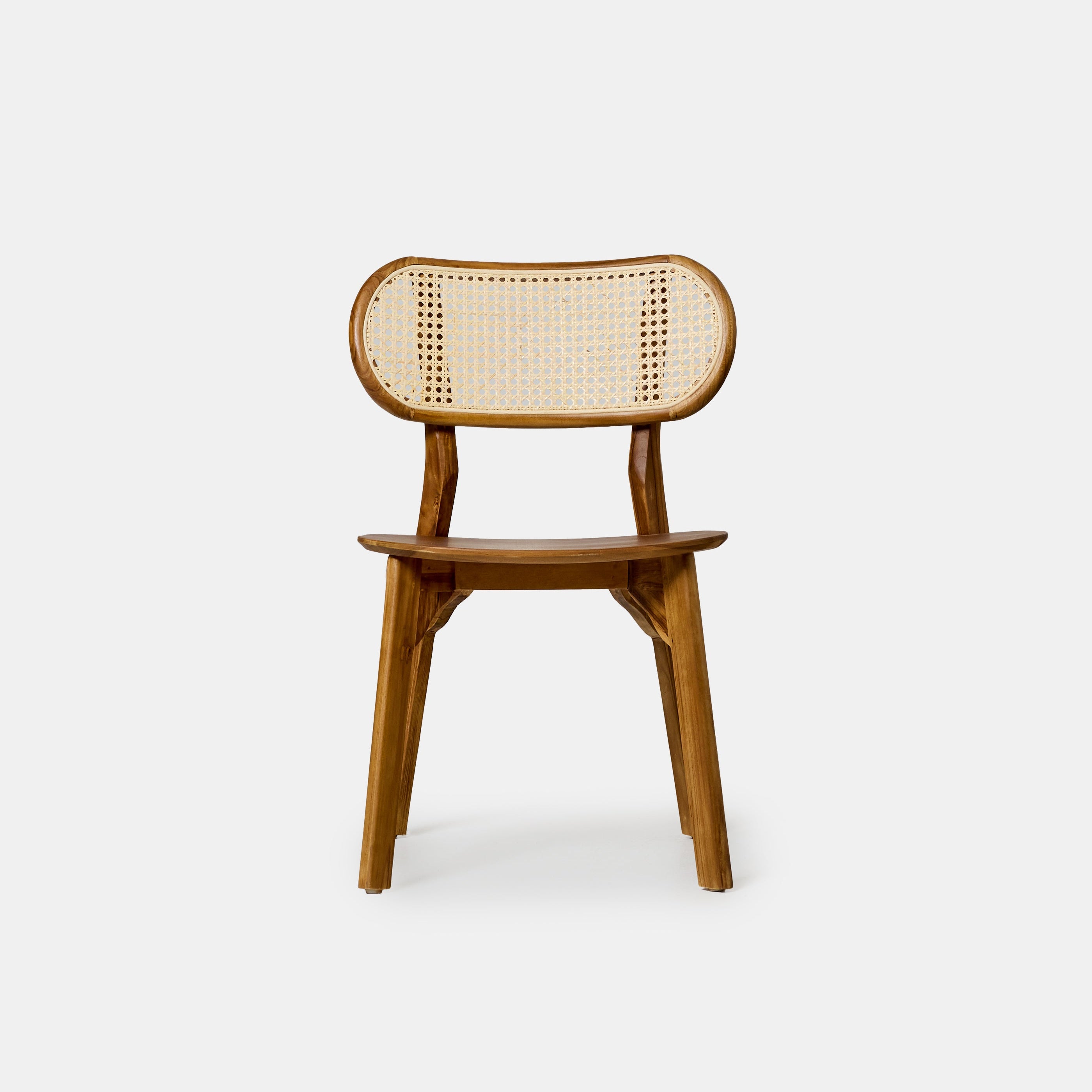 La chaise DWI TANPA allie élégance et authenticité dans un design à la fois intemporel et contemporain. Réalisée en bois de teck naturel et cannage tressé, elle célèbre la beauté des matières nobles et le savoir-faire des artisans. Ses lignes épurées et son dossier en rotin tressé offrent une assise à la fois confortable et légère visuellement. Avec sa hauteur de 77 cm, la DWI TANPA trouve naturellement sa place autour d’une table de repas, dans un bureau ou un espace de réception. Chaque pièce est façonnée à la main, rendant chaque chaise unique. Le teck naturel, riche en nuances, révèle une patine subtile au fil du temps, gage d’un mobilier durable, pensé pour accompagner les intérieurs les plus raffinés.