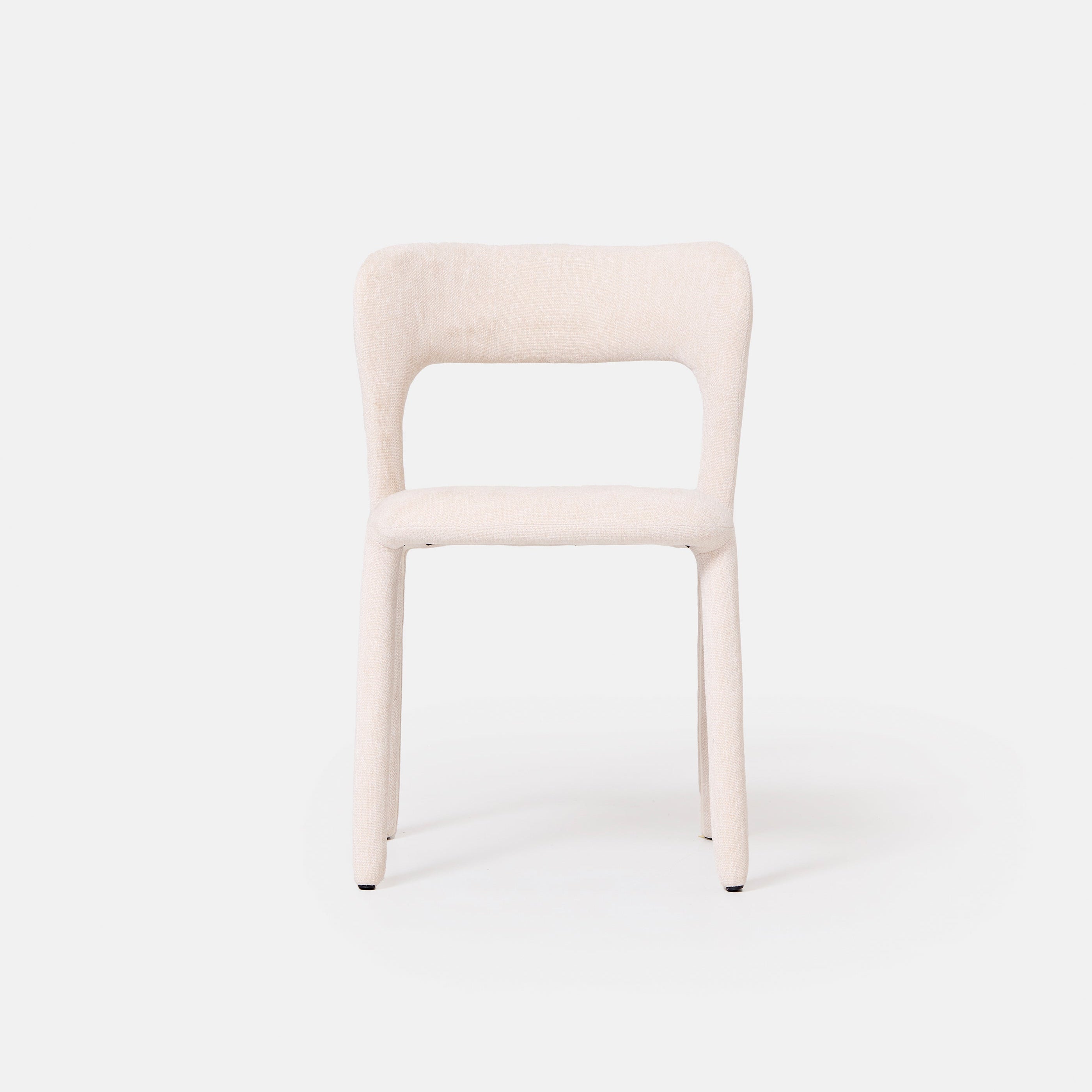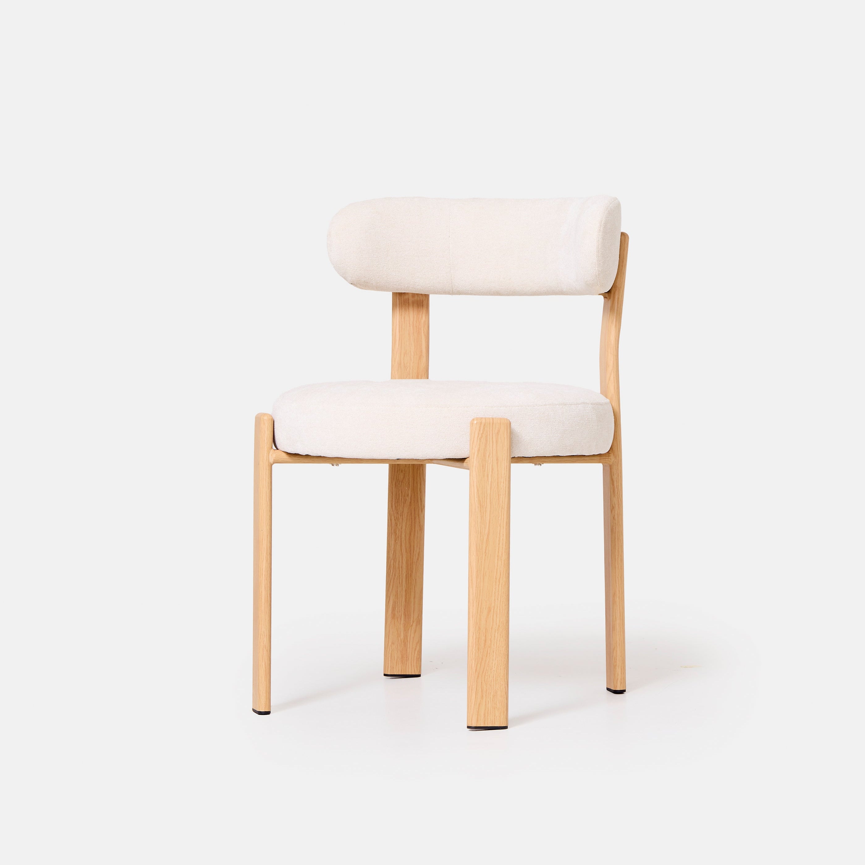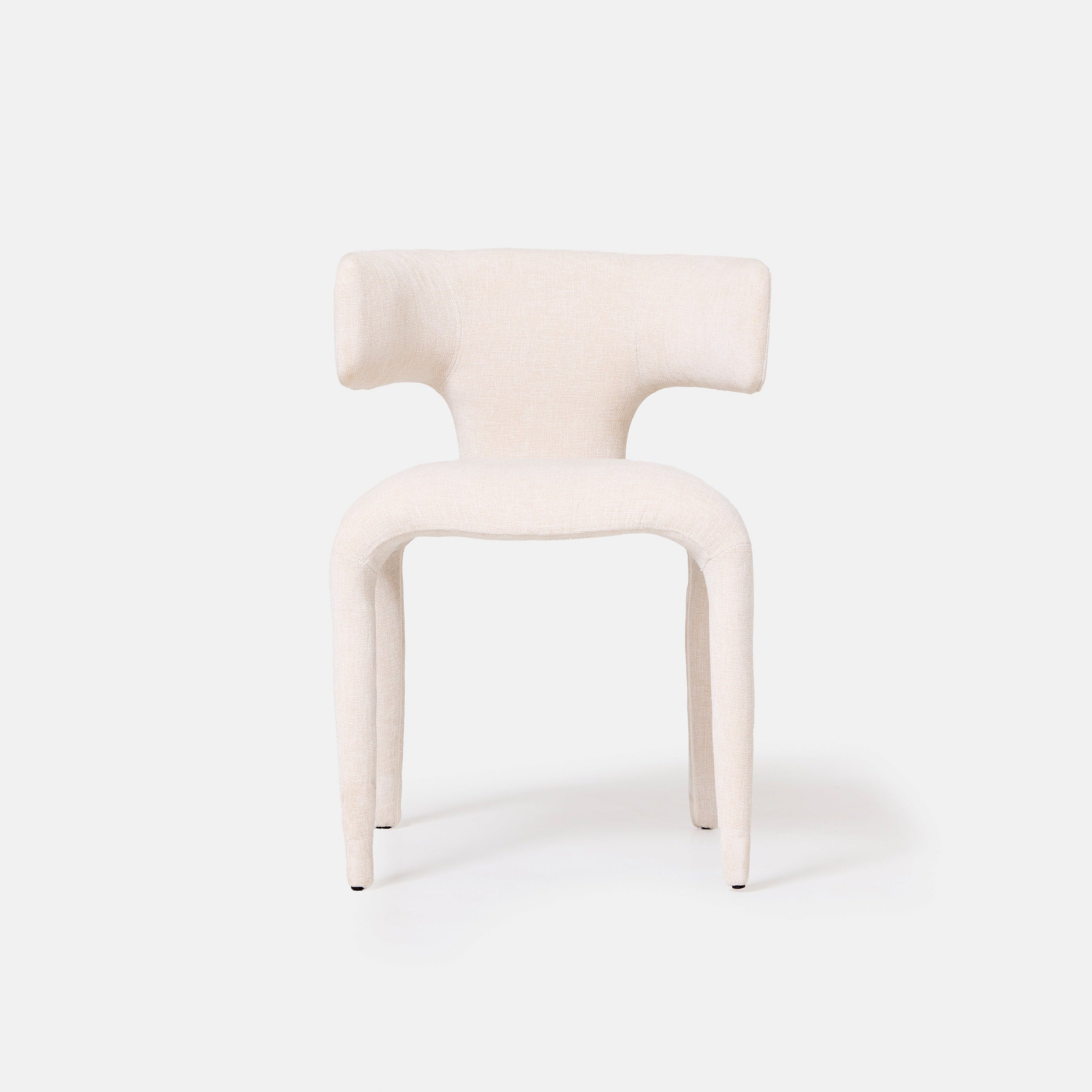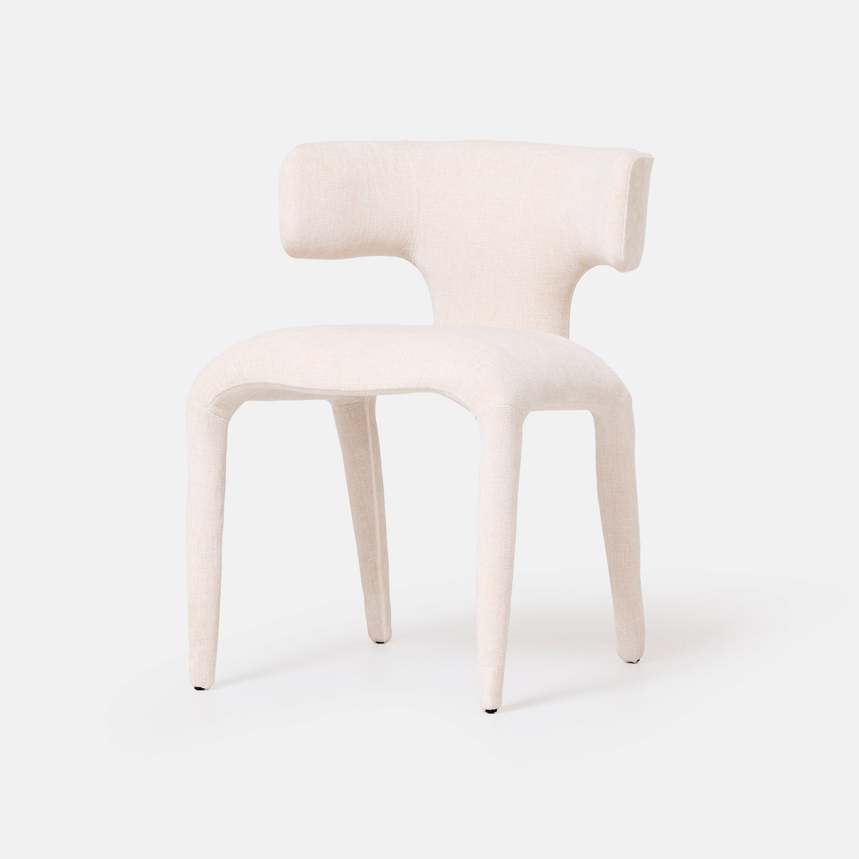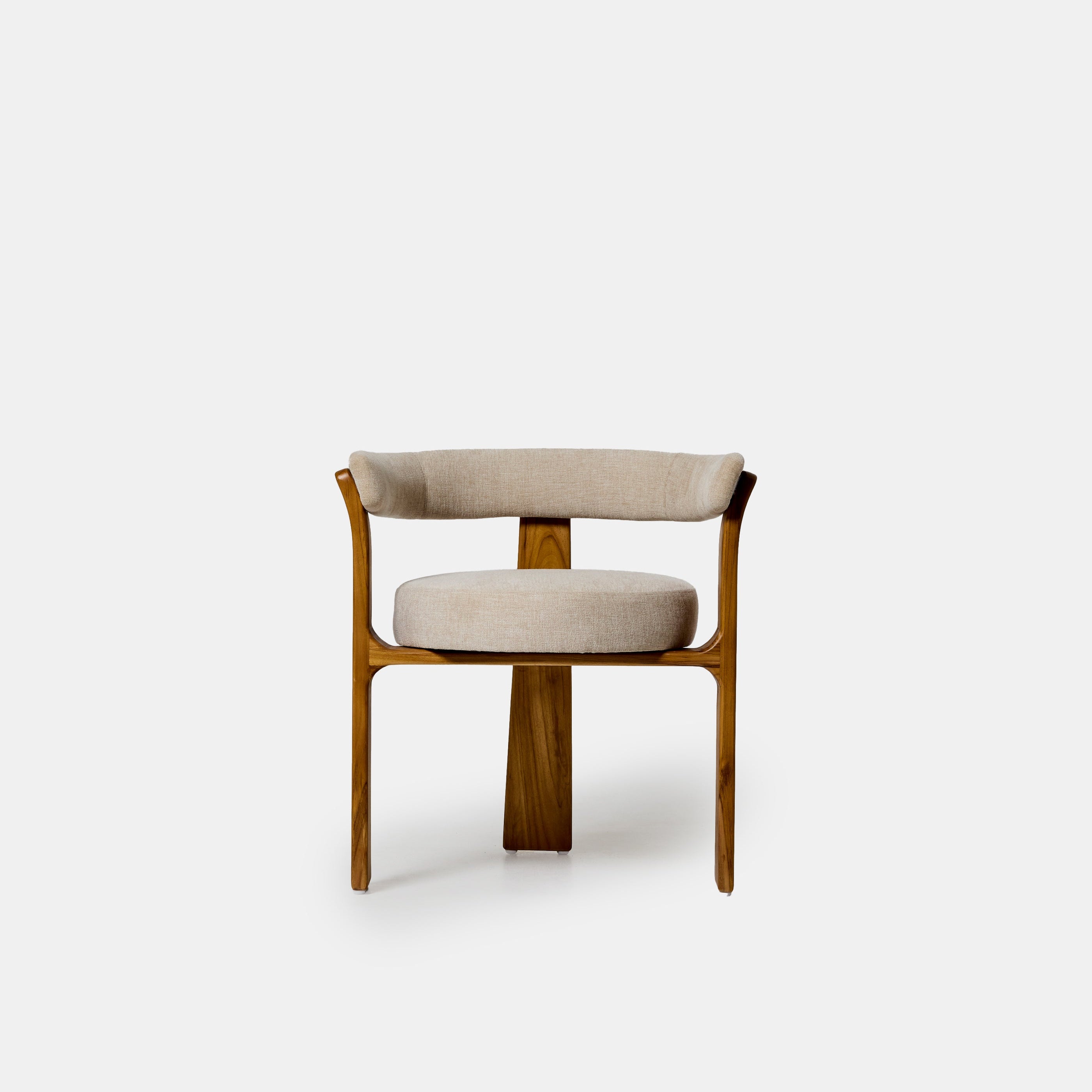 La chaise Subur blanche crée dans l’espace une impression de douceur sculpturale, portée par le contraste entre la rigueur presque architecturale de son piètement taillé et la générosité de son assise tapissée d’un textile clair au toucher feutré, une pièce où le bois révèle ses reliefs comme une matière vivante et où la lumière vient se poser avec délicatesse, composant une atmosphère à la fois graphique, chaleureuse et subtilement enveloppante, pensée pour accompagner aussi bien une table de repas qu’un espace plus intime avec la même élégance silencieuse.