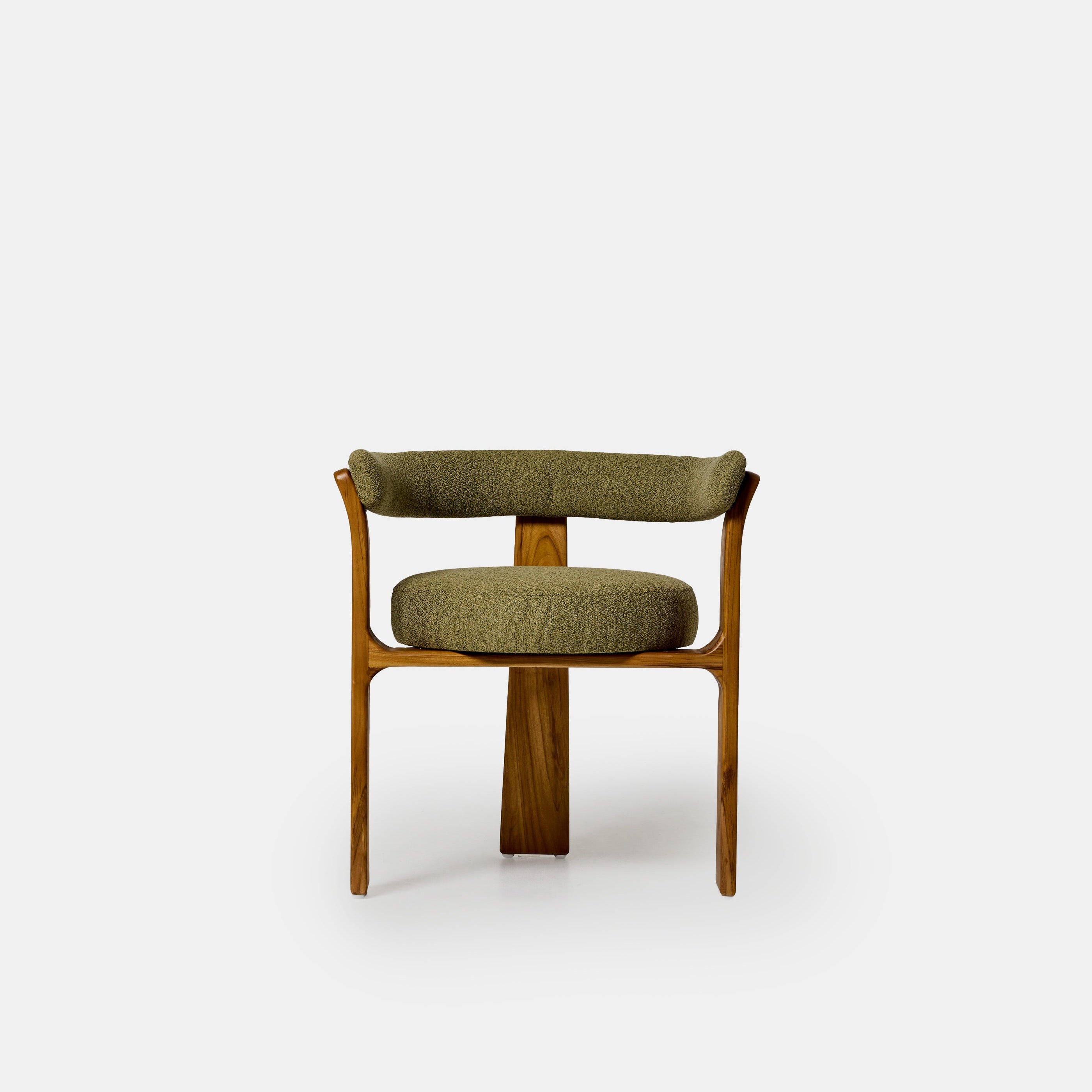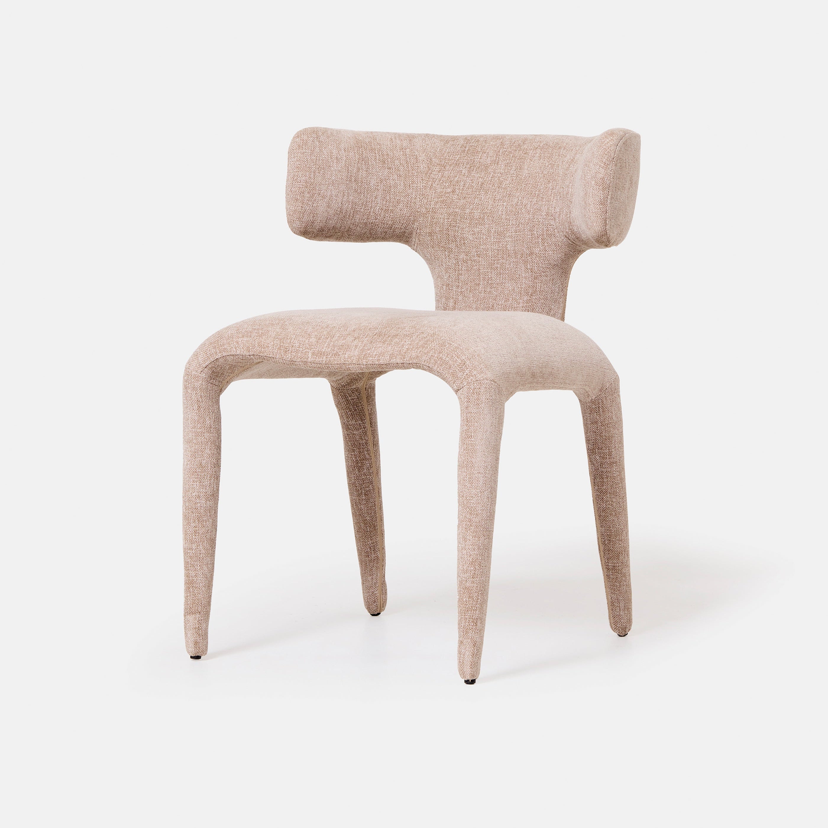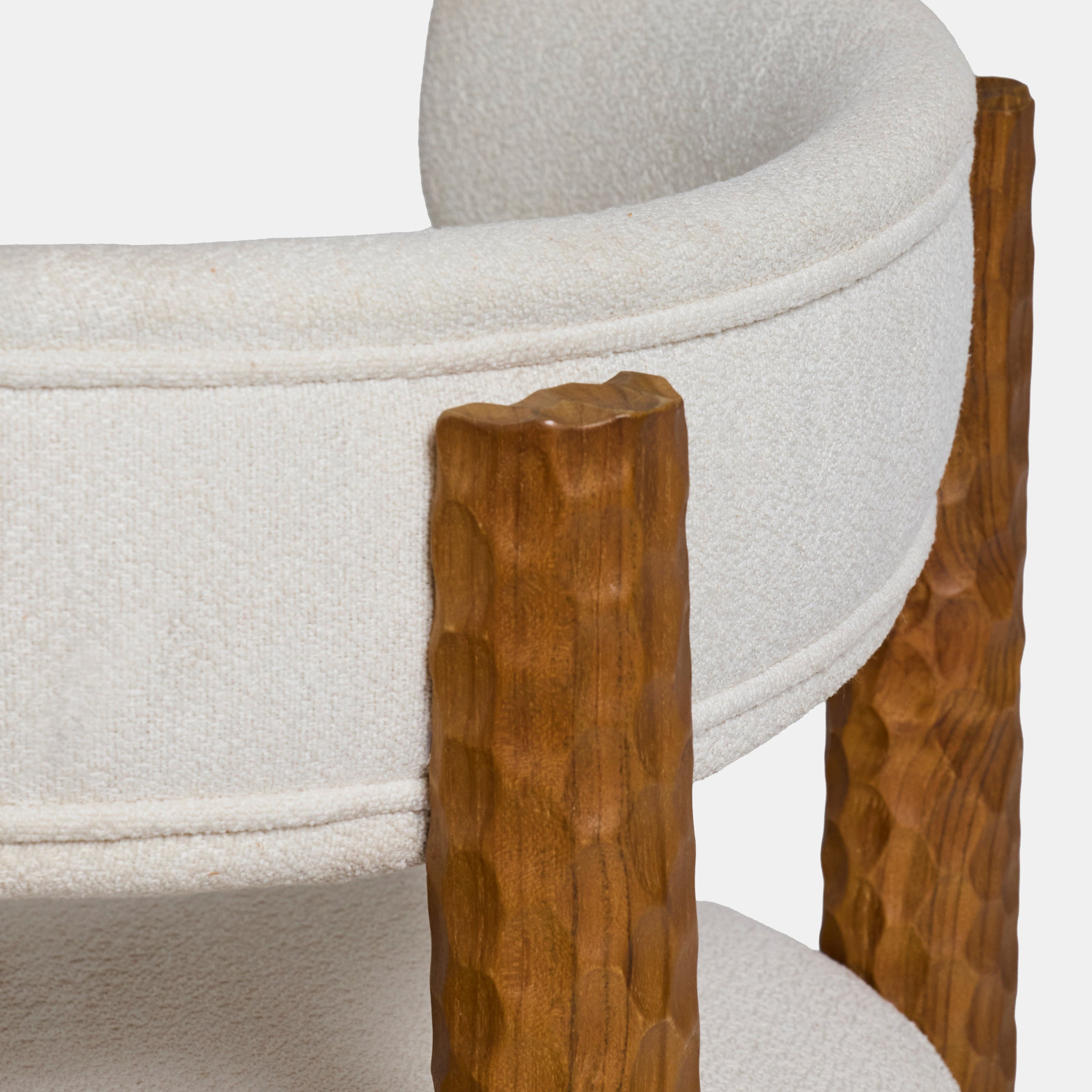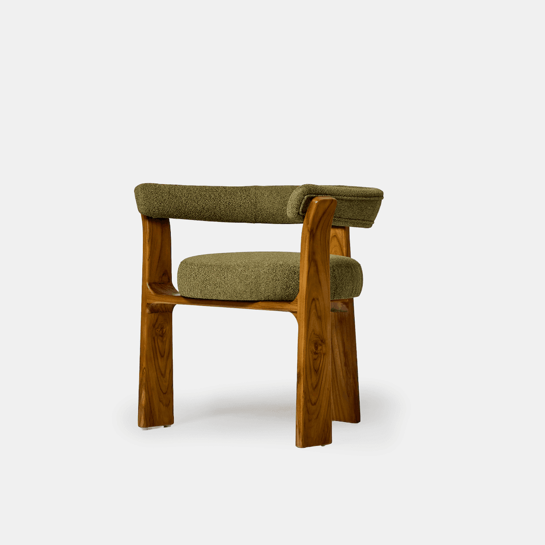 La chaise Subur blanche crée dans l’espace une impression de douceur sculpturale, portée par le contraste entre la rigueur presque architecturale de son piètement taillé et la générosité de son assise tapissée d’un textile clair au toucher feutré, une pièce où le bois révèle ses reliefs comme une matière vivante et où la lumière vient se poser avec délicatesse, composant une atmosphère à la fois graphique, chaleureuse et subtilement enveloppante, pensée pour accompagner aussi bien une table de repas qu’un espace plus intime avec la même élégance silencieuse.