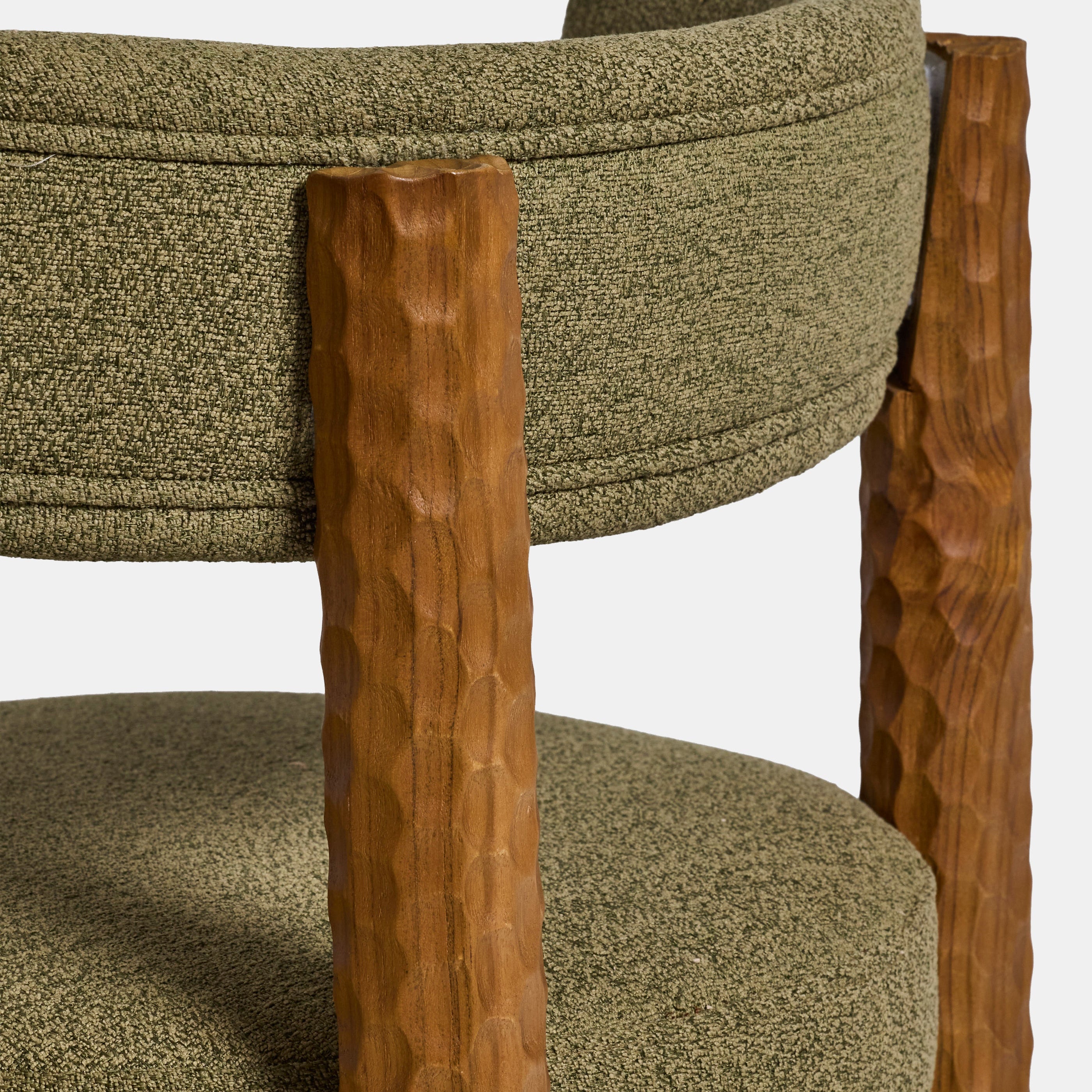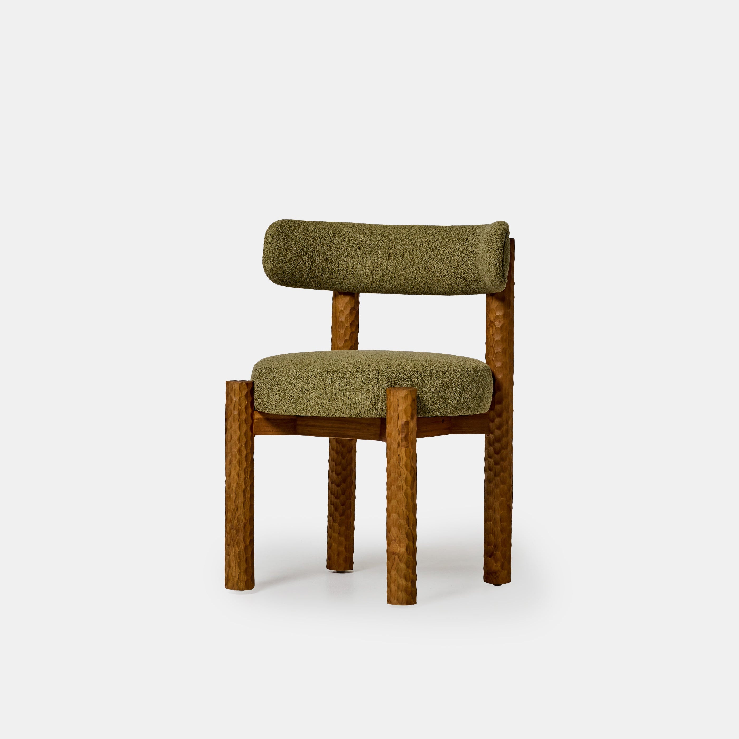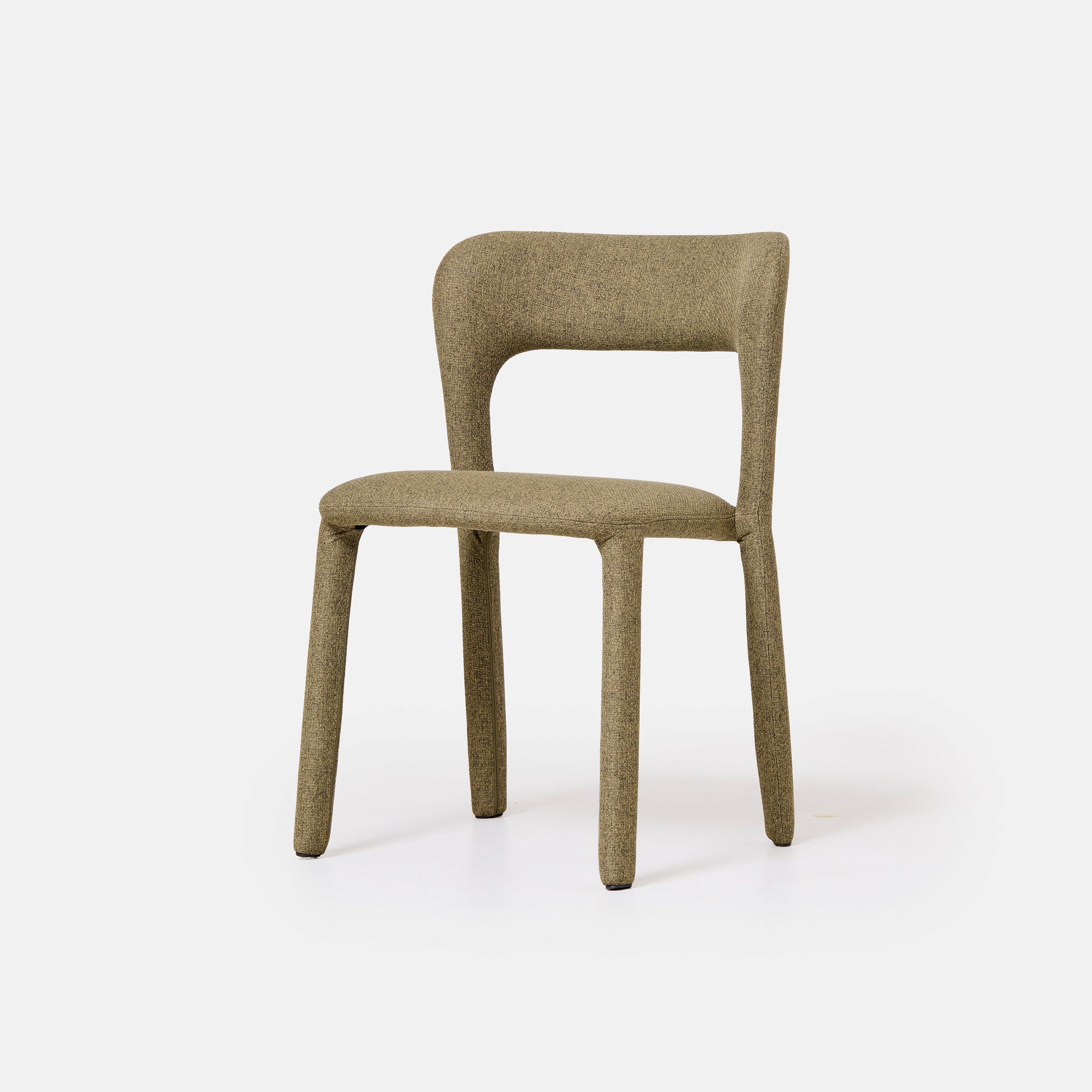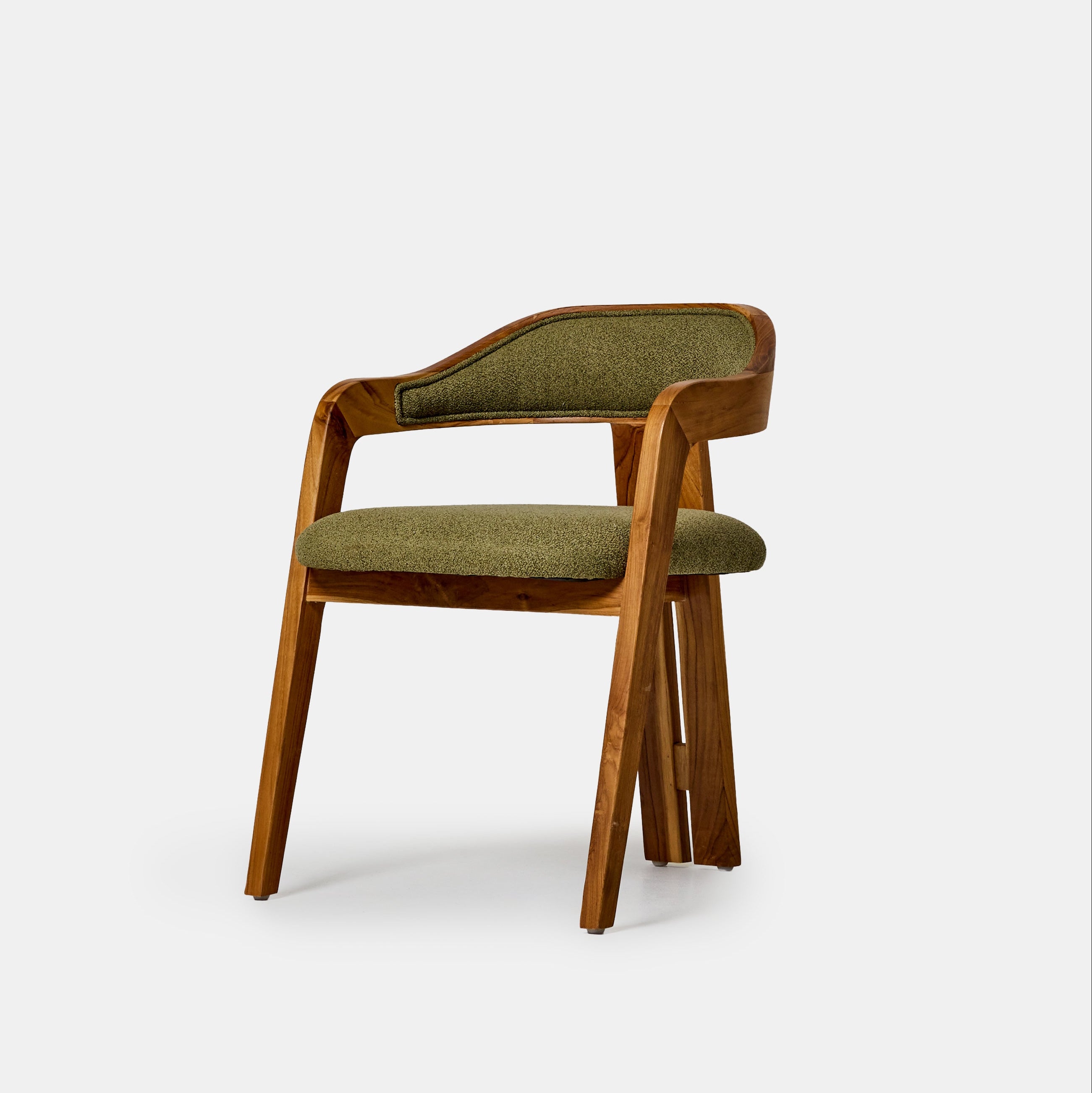 La chaise Subur blanche crée dans l’espace une impression de douceur sculpturale, portée par le contraste entre la rigueur presque architecturale de son piètement taillé et la générosité de son assise tapissée d’un textile clair au toucher feutré, une pièce où le bois révèle ses reliefs comme une matière vivante et où la lumière vient se poser avec délicatesse, composant une atmosphère à la fois graphique, chaleureuse et subtilement enveloppante, pensée pour accompagner aussi bien une table de repas qu’un espace plus intime avec la même élégance silencieuse.