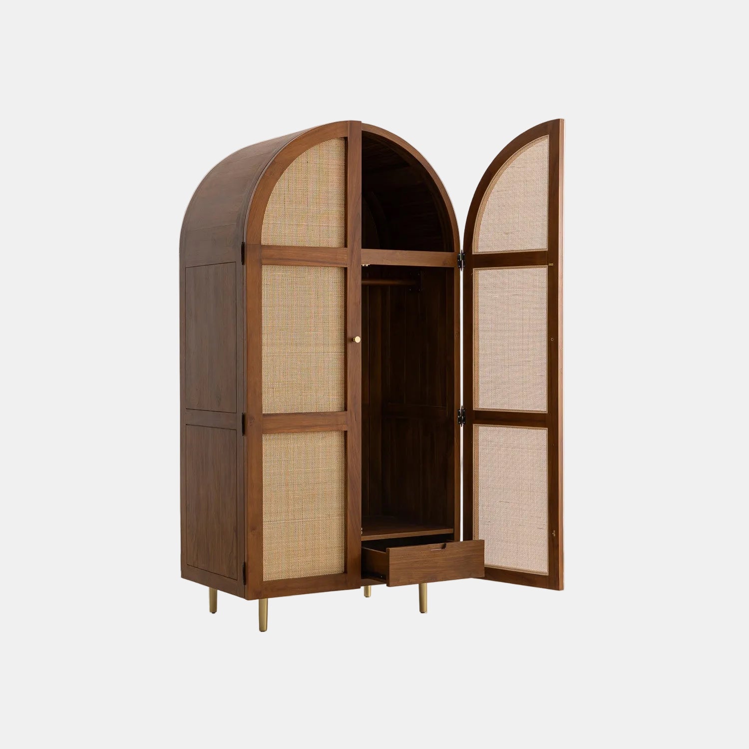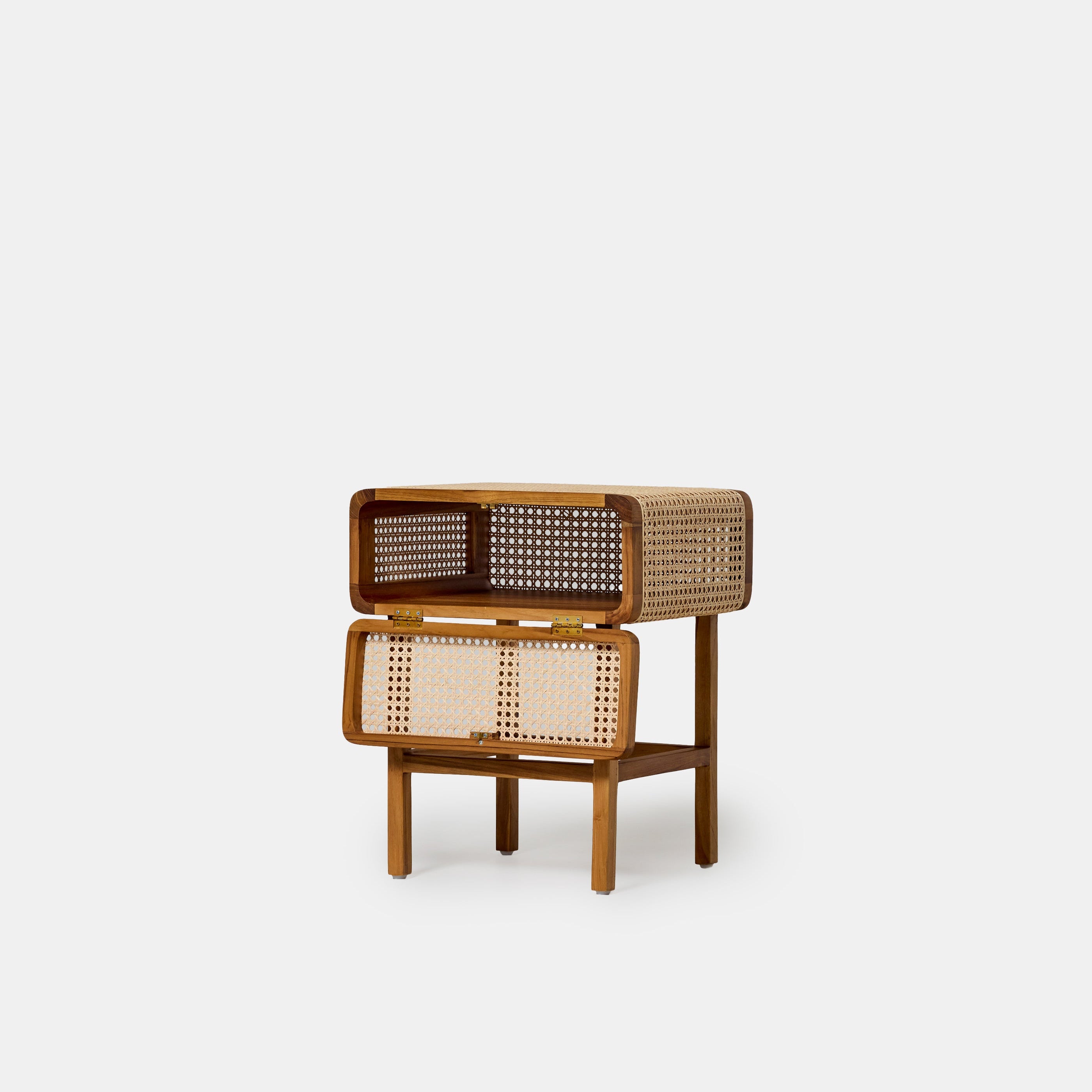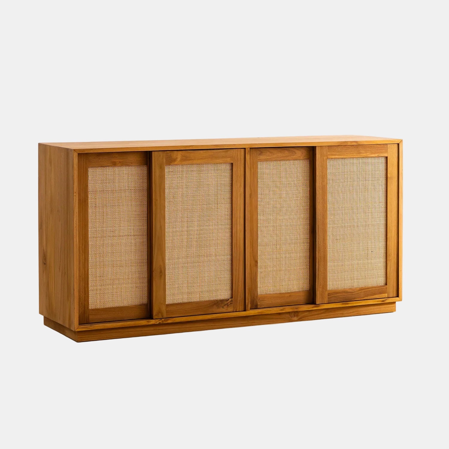 Le petit buffet Rupa apporte instantanément du caractère à l’espace grâce à sa silhouette compacte et à ses portes sculptées de motifs arrondis qui captent la lumière comme un relief architectural. Sa teinte tabac nuancée de miel diffuse une chaleur naturelle, parfaite pour une entrée, un salon ou une chambre. Ce format maîtrisé en fait une pièce forte qui structure l’intérieur sans l’alourdir, offrant un plateau idéal pour accueillir un vase, une lampe ou quelques objets décoratifs. Façonné artisanalement, chaque buffet présente des variations subtiles dans le motif et la matière, rendant chaque modèle unique, avec sa propre personnalité.