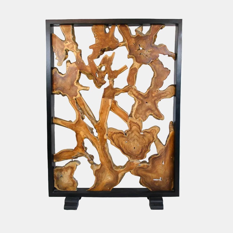 Cette bibliothèque en bois brûlé est une pièce unique de mobilier artisanal, entièrement fabriquée à la main en Indonésie. Son design sculptural s’inspire de la nature et évoque des branches d’arbre, offrant un rendu moderne, brut et raffiné. Chaque étagère met en valeur vos objets de décoration, livres ou collections tout en apportant une touche artistique à votre intérieur. Le bois de teck est travaillé selon un procédé de brûlage qui sublime les veines naturelles, renforce la solidité et offre une teinte noire profonde au rendu unique. Idéale pour un salon, un bureau ou une bibliothèque design, cette pièce deviendra le point focal de votre décoration intérieure.