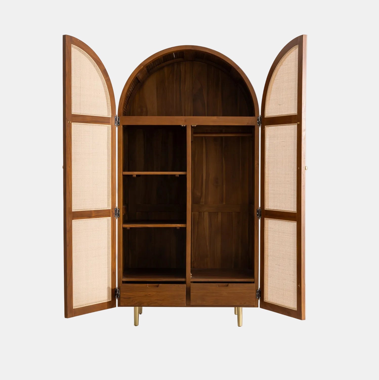 Armoire en Bois de Teck et Cannage - 200x100x63 cm