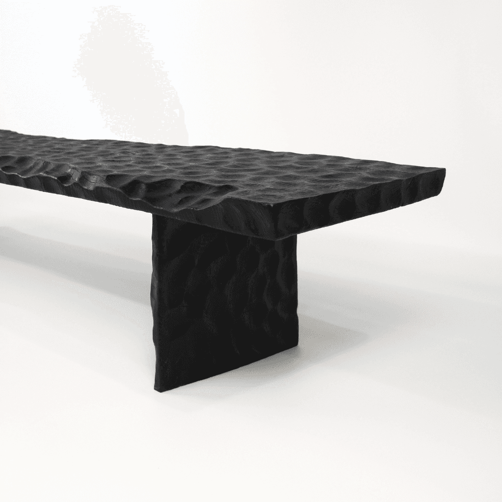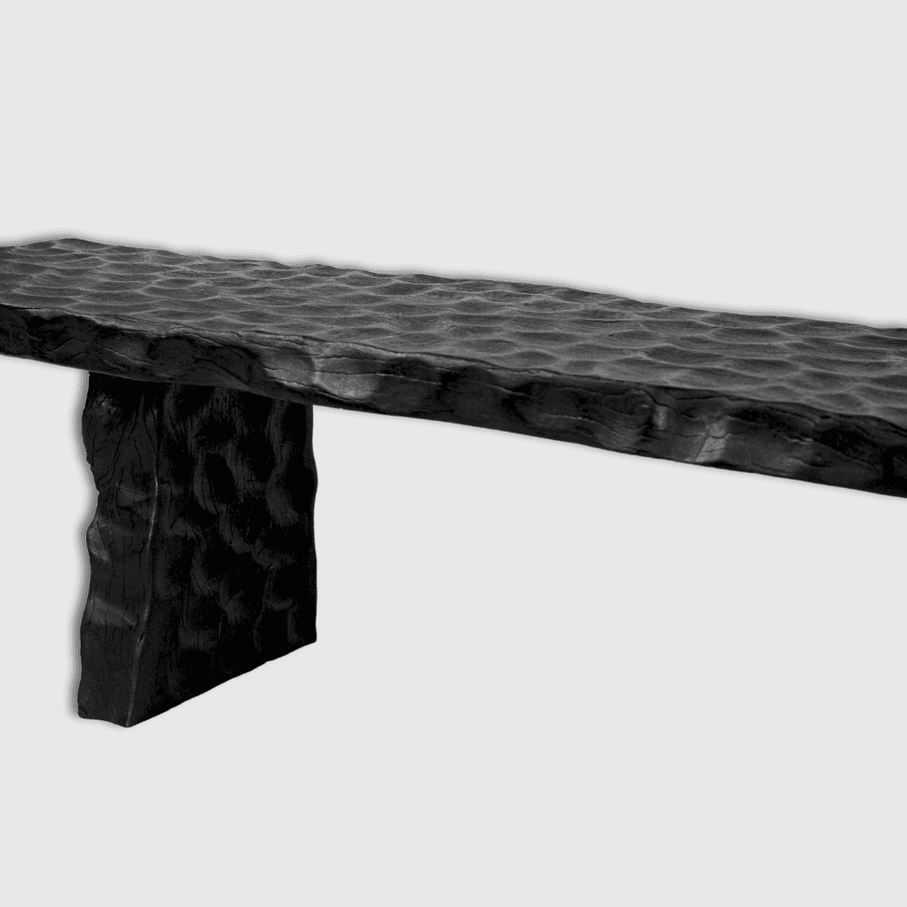 Dans une entrée, au bout d’un lit ou face à une table basse, ce banc en litchi martelé installe immédiatement un point d’appui visuel net. Le bois de litchi massif, travaillé à la main, compose une surface texturée dont les reliefs animent la finition noire et lui donnent une profondeur très actuelle. L’effet martelé apporte du caractère sans alourdir la ligne, ce qui permet au banc de s’intégrer aussi bien dans un décor épuré que dans un intérieur plus rustique chic. Utilisé comme assise d’appoint, comme banc décoratif ou simplement comme pièce forte dans le salon, il structure l’espace avec justesse. Son dessin allongé renforce cette impression d’équilibre, tandis que la teinte sombre souligne le travail artisanal et les nuances propres à la matière. En intérieur comme dans un extérieur couvert, il conserve cette allure sobre et dense qui fait la différence sans détour. Chaque exemplaire présente de légères variations de relief, de ton et de finition, signe d’une fabrication faite main et d’un travail du bois qui laisse à la pièce son caractère unique.