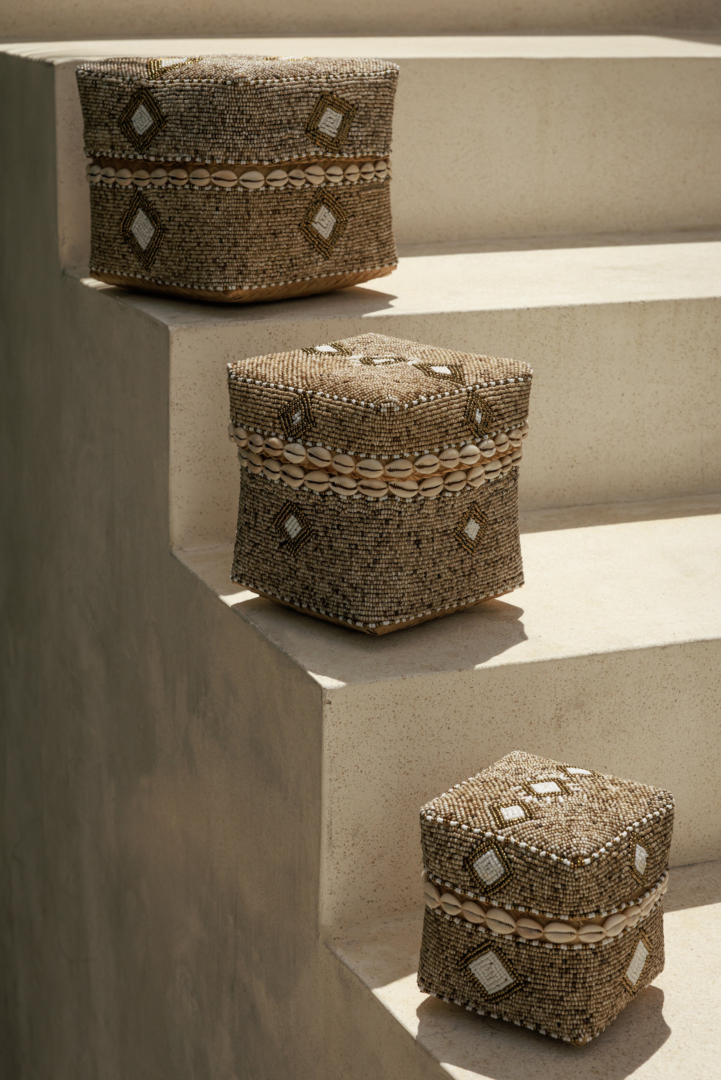 Tressées à la main sur l’île de Bali, les boîtes à offrande Beras portent en elles la délicatesse d’un geste répété avec patience et respect. Le bambou, séché puis travaillé fibre après fibre, compose une matière douce et vivante, rythmée par des motifs géométriques et des coquillages qui captent la lumière comme un bijou discret. Autrefois dédiées aux offrandes, elles conservent cette sensation de calme et de gratitude, cette beauté silencieuse qui apaise l’espace. Posées seules ou empilées, sur une console ou une table basse, les boîtes Beras apportent à l’intérieur une élégance naturelle, un souffle d’ailleurs, et ce luxe rare qui naît du temps, de la main et de la matière.