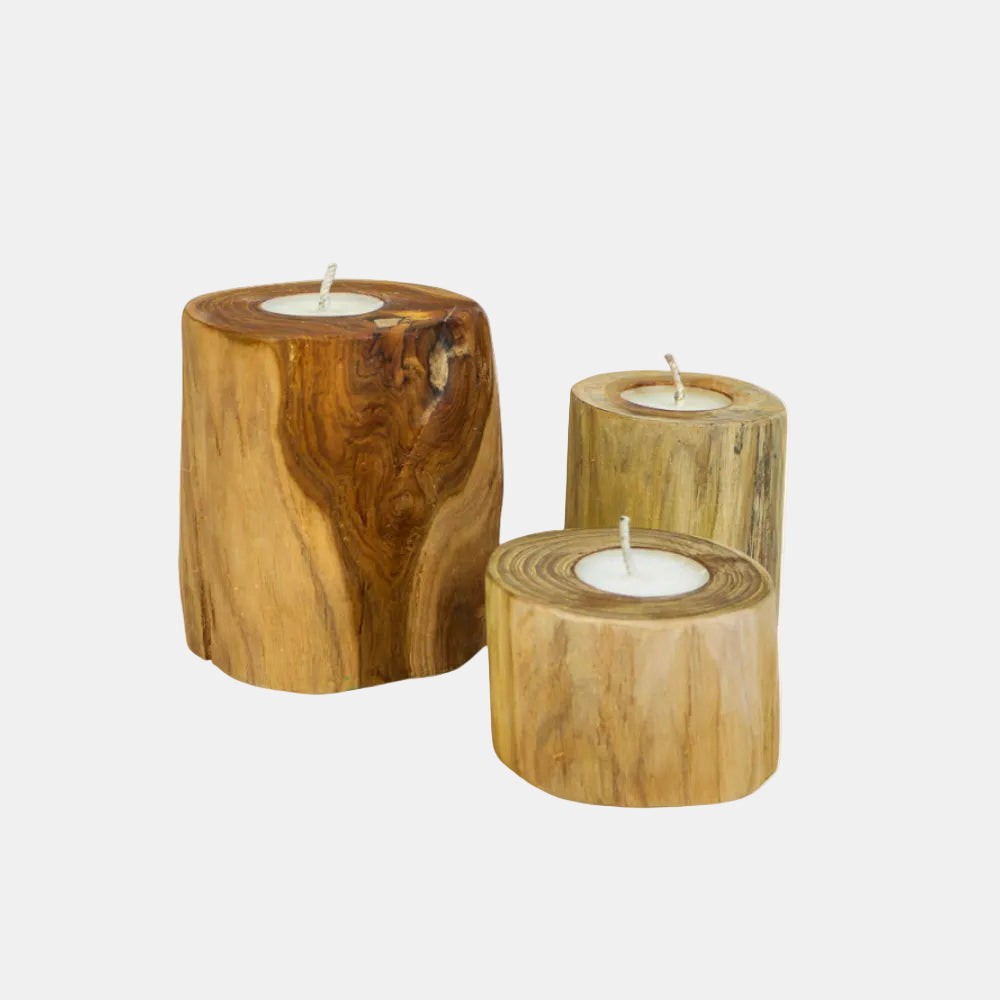 Bougie artisanale en bois de teck creusé, idéale pour créer une ambiance chaleureuse et naturelle dans un intérieur bohème, wabi-sabi ou contemporain. Disponible en plusieurs tailles, elle diffuse une lumière douce parfaite pour une table basse, une console ou une étagère.