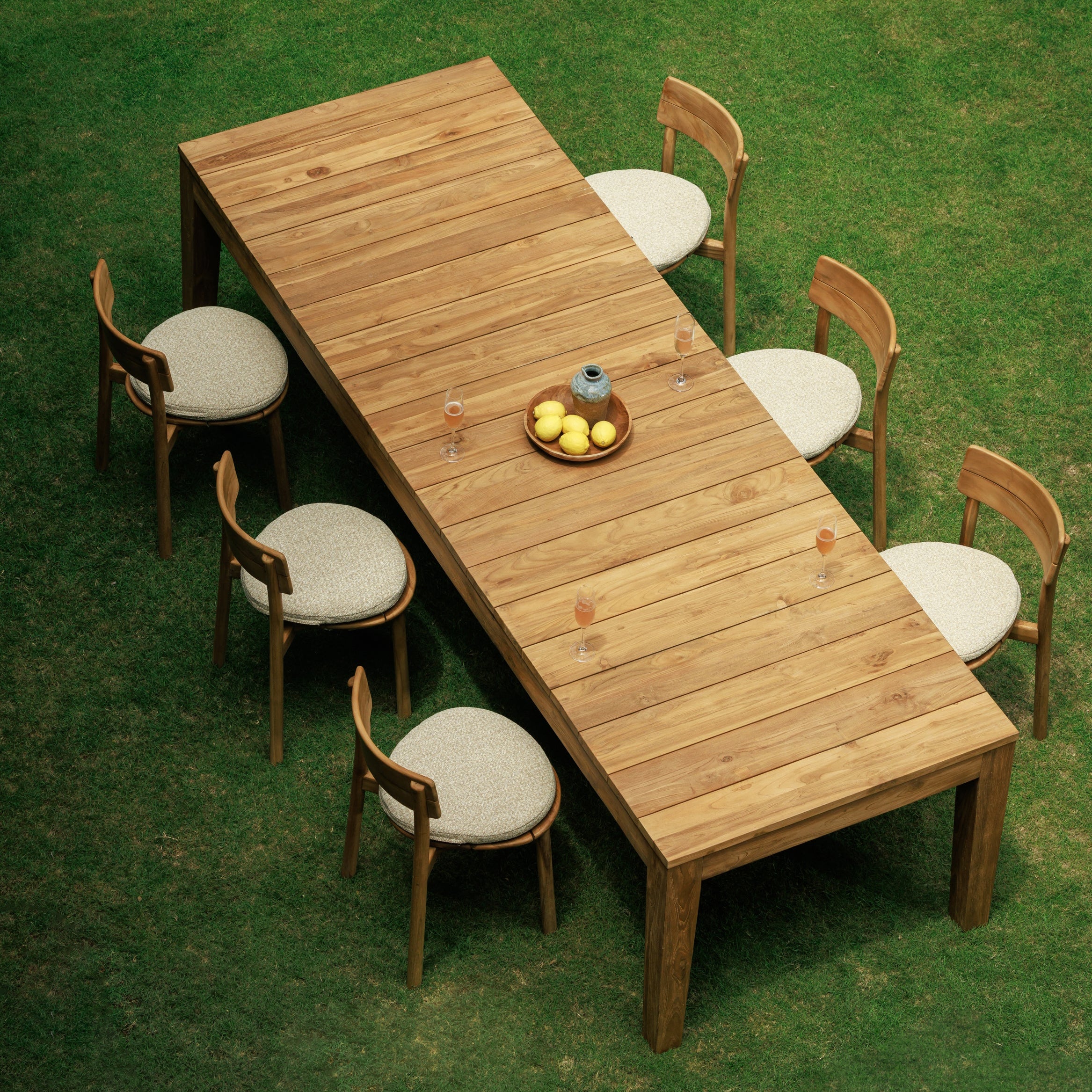 Table extérieure en teck massif recyclé, la Brone accueille de grandes tablées avec une présence chaleureuse et durable. Son plateau généreux et sa structure robuste en font une pièce centrale pour les repas en extérieur, pensée pour traverser les saisons avec élégance.