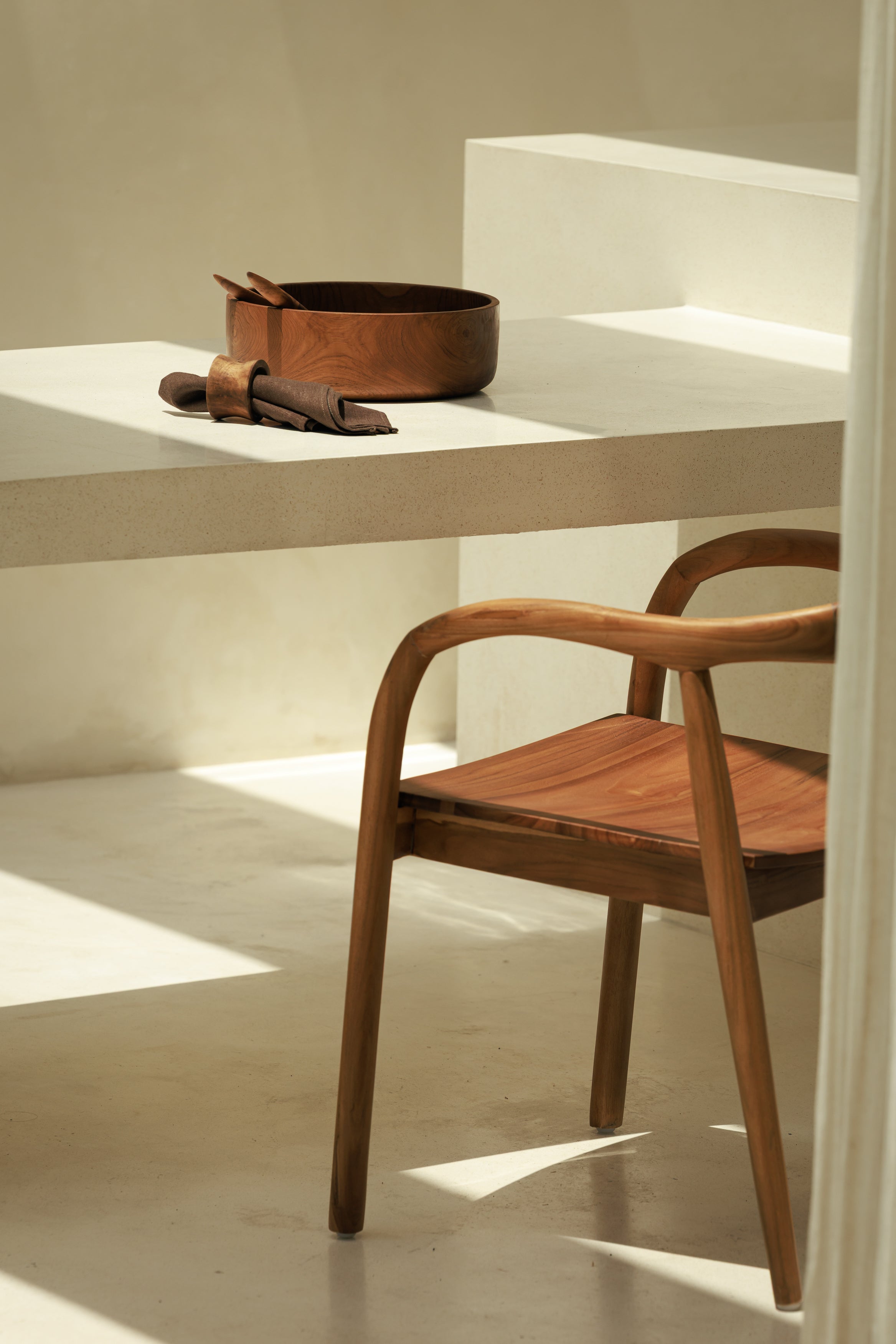 La chaise Bubut en bois de teck naturel déploie une silhouette douce et maîtrisée, née d’un dialogue subtil entre la main de l’artisan et l’élégance du design. Ses lignes courbes accompagnent naturellement le corps, offrant une assise qui se ressent avant même de s’expliquer. Le teck révèle ici toute sa richesse, avec un grain doré, une texture dense et des nuances qui captent la lumière et évoluent avec le temps. Dans une salle à manger, un bureau ou un espace lounge, Bubut installe une présence discrète mais affirmée, celle d’un mobilier pensé pour durer et pour accompagner les moments de vie avec justesse.
