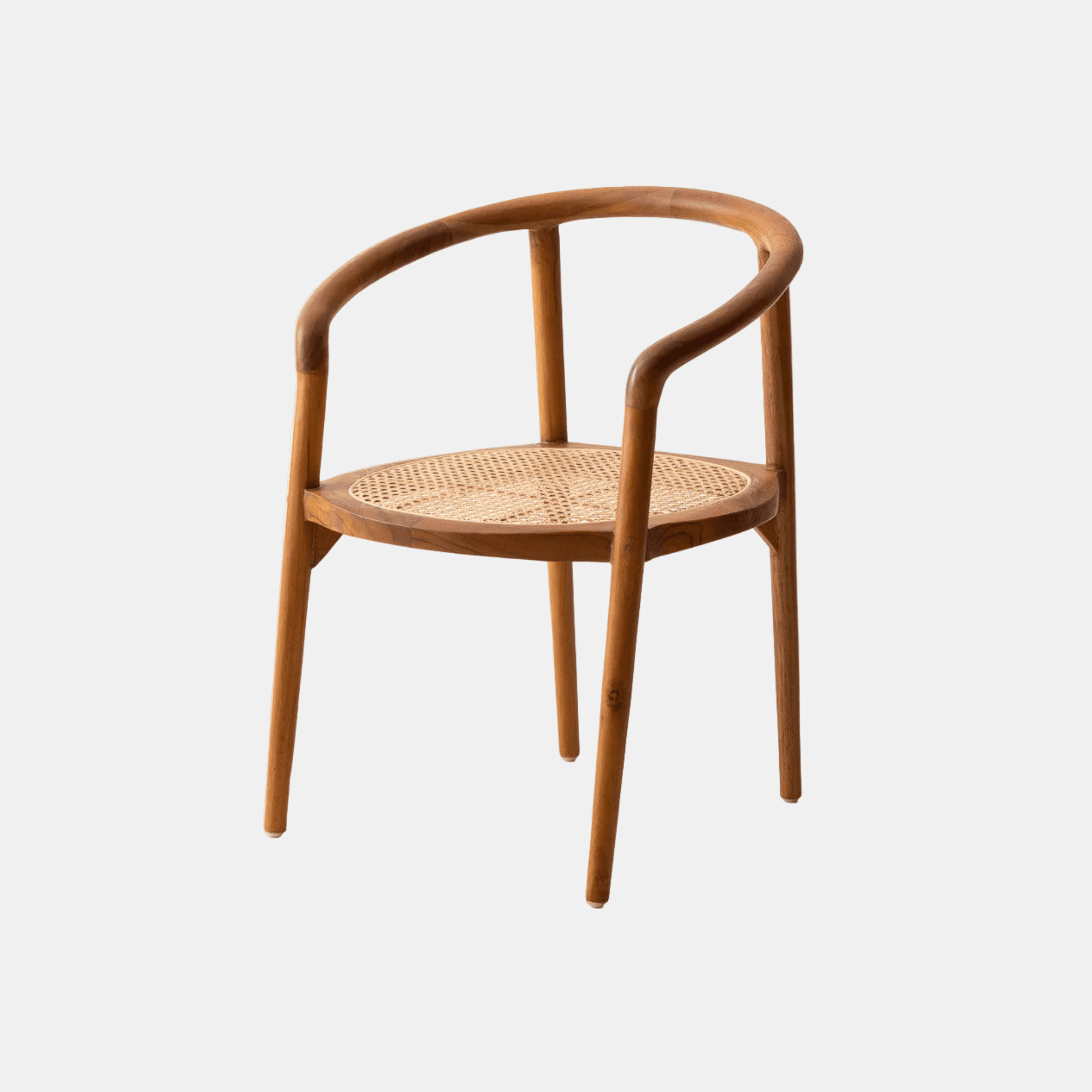 Dans une salle à manger soignée, la chaise Cinta apporte un dessin net et une lecture équilibrée des matières. Sa structure en teck massif de classe A, laissée dans une finition naturelle, met en valeur la sobriété de ses lignes tandis que l'assise et le dossier en cannage de rotin naturel allègent l'ensemble. L'association du bois et du cannage crée un contraste juste, entre densité visuelle et finesse du tissage, qui rappelle l'esprit des chaises de bistrot sans en figer le style. Autour d'une table, Cinta trouve facilement sa place dans un intérieur bohème, un décor d'inspiration scandinave ou une composition plus épurée. Son allure reste simple, mais suffisamment travaillée pour accompagner des ambiances variées, du coin repas quotidien à un espace plus soigné. La fabrication artisanale renforce ce caractère authentique, tout en conservant une ligne adaptée aux intérieurs contemporains. Le teck naturel donne de la tenue à la chaise, le cannage introduit une note plus légère, et l'ensemble compose une assise aussi décorative que facile à intégrer.