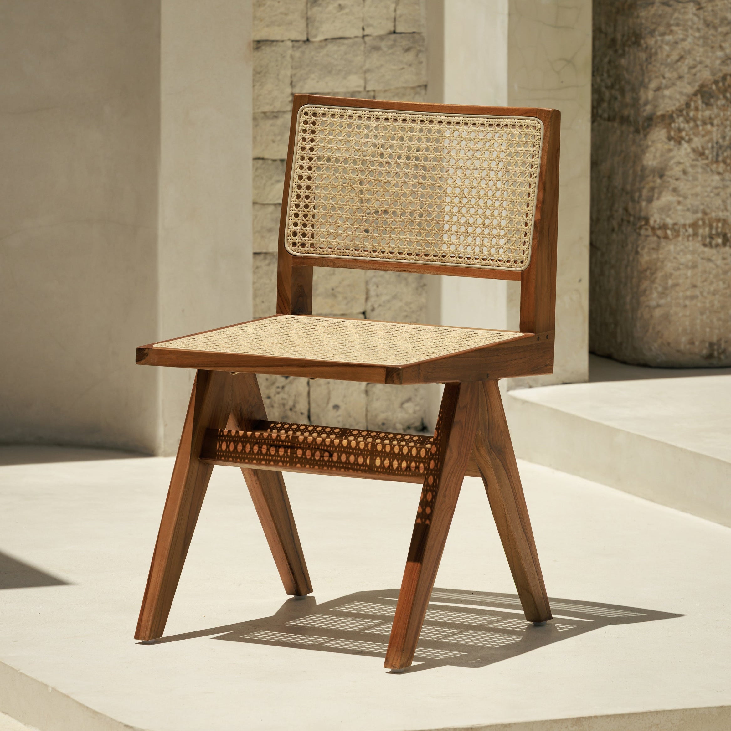 Chaise en bois de teck et cannage