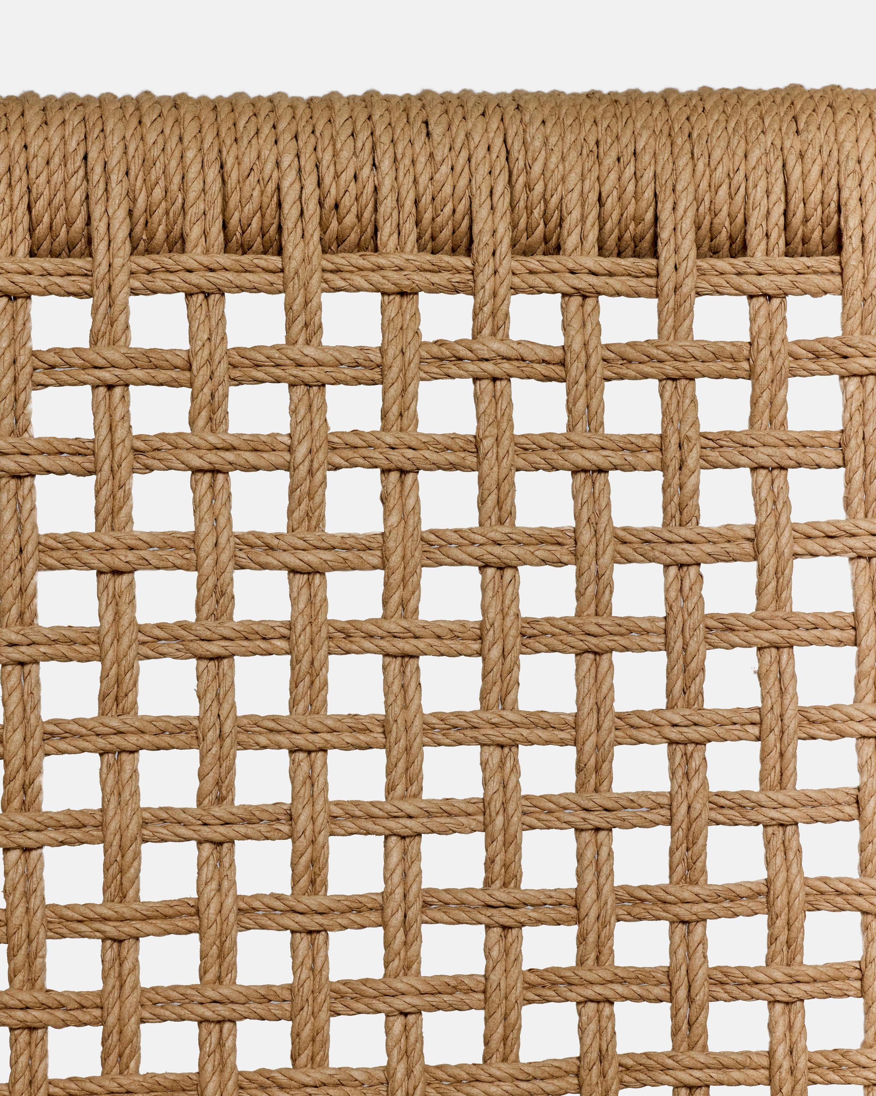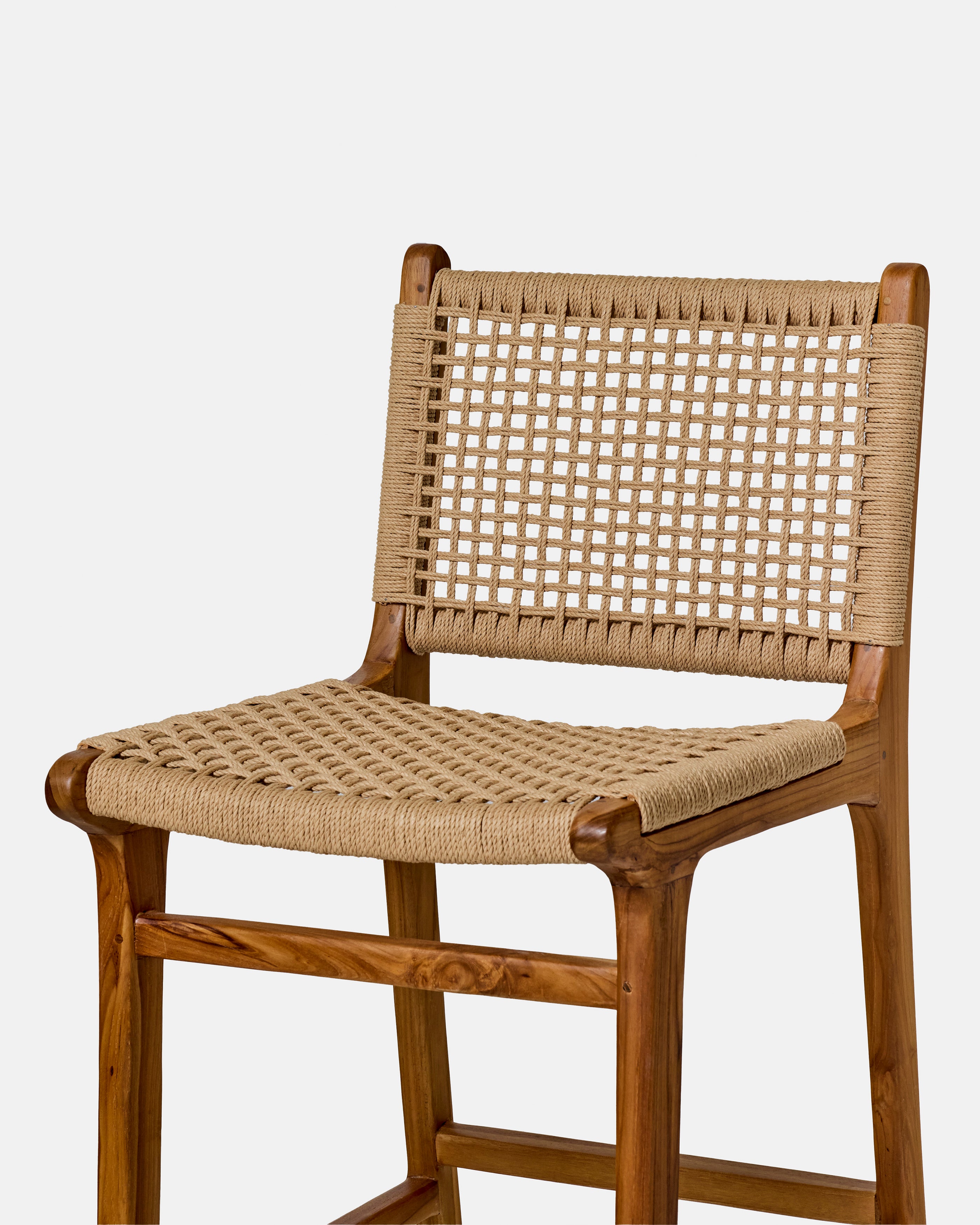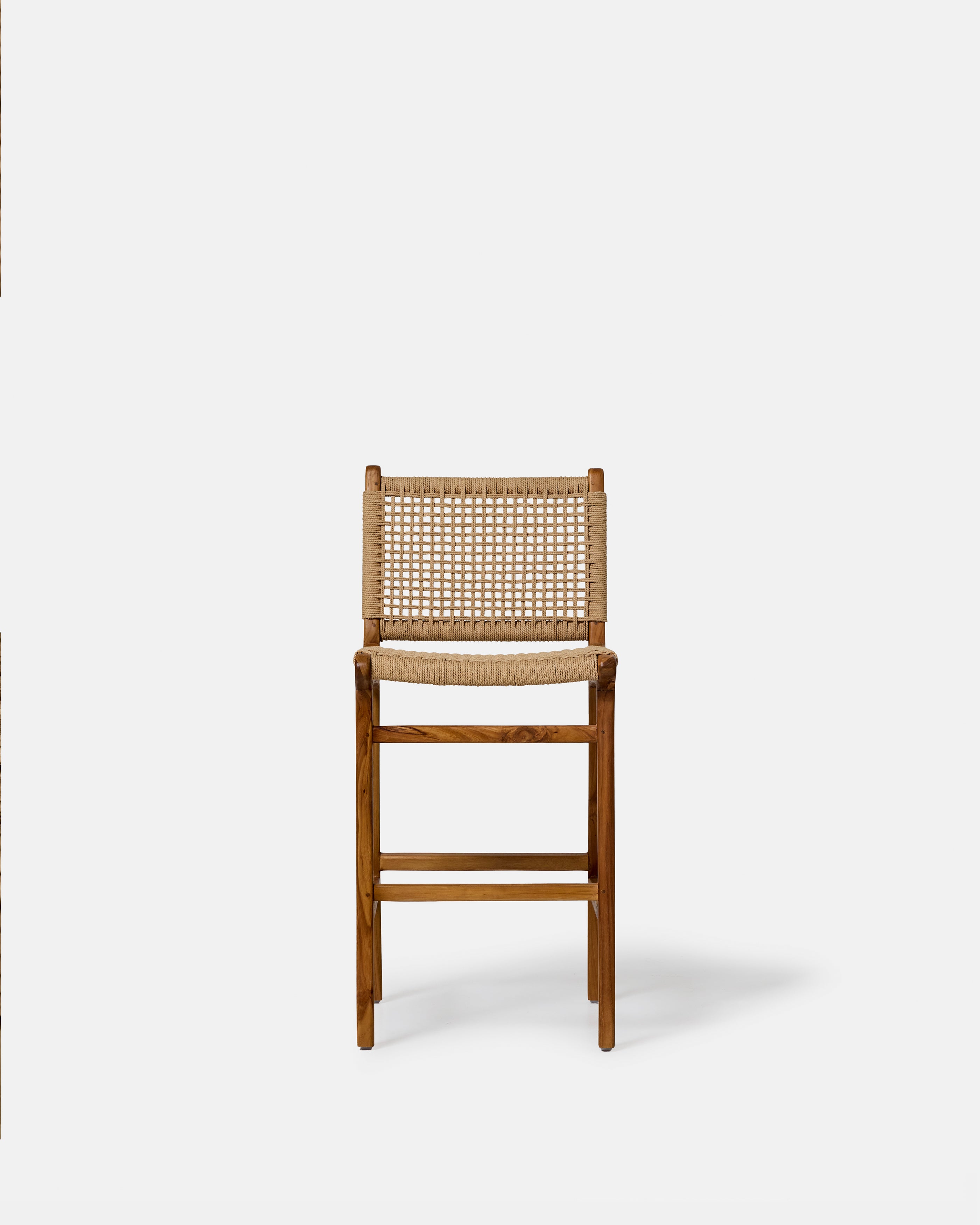 Le tabouret de bar Punta associe la puissance du teck massif à la souplesse d’une corde naturelle tressée à la main. Le bois révèle une texture dense et patinée qui apporte une sensation de solidité immédiate, tandis que l’assise en corde épouse le corps avec un confort souple et respirant. Le dossier tressé soutient naturellement le dos et crée un contact doux, idéal pour les moments passés autour d’un îlot ou d’un comptoir. Une pièce emblématique de la sélection Design Trip, où la matière brute et le geste artisanal se rencontrent pour créer un confort authentique et durable.